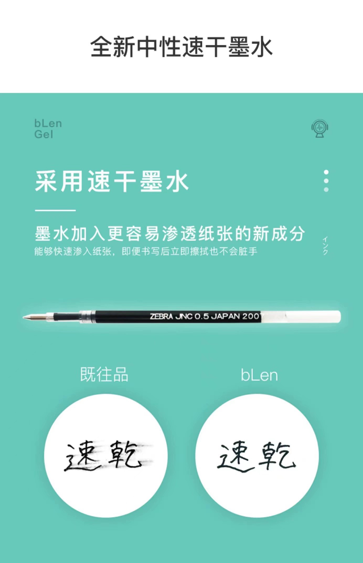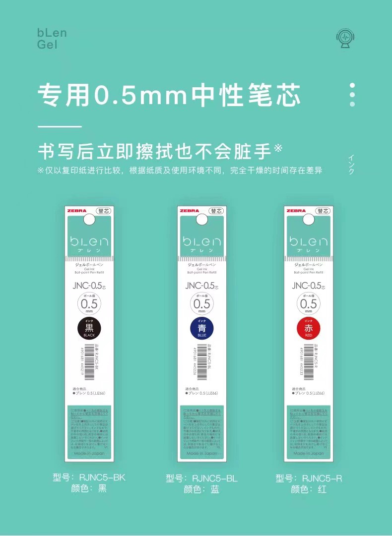 斑马RJJNC-BK blen减震中性笔芯0.5