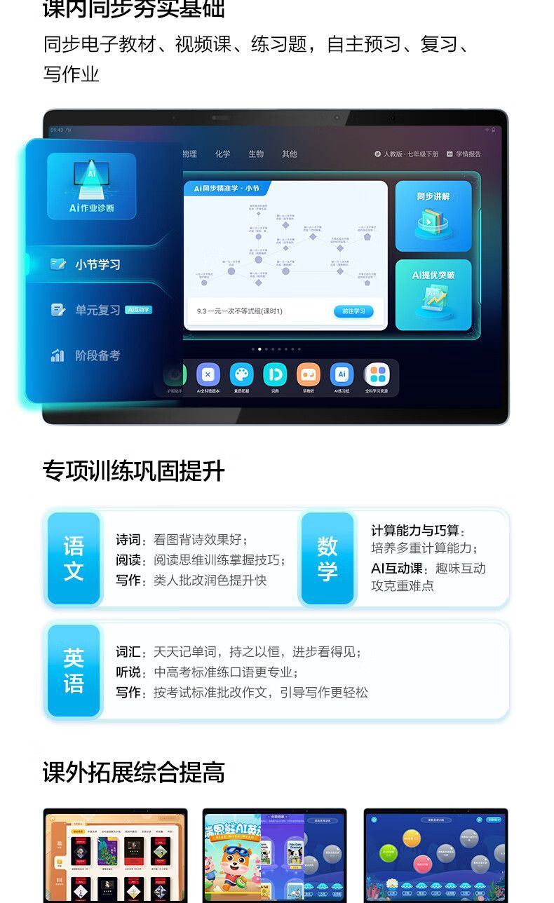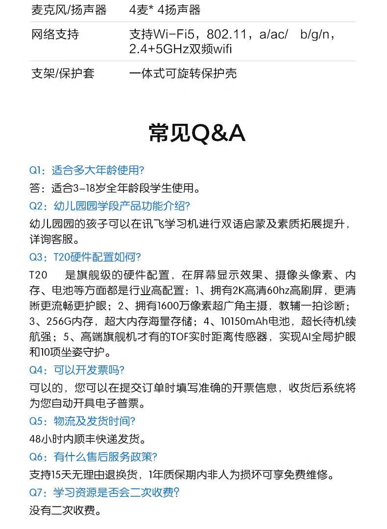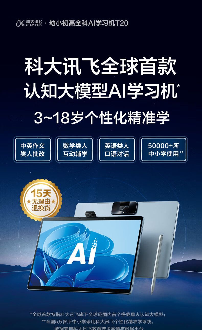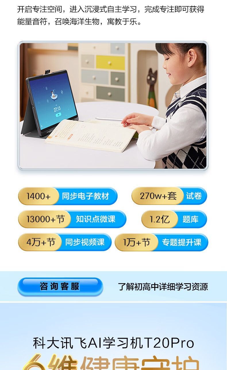 【赠倍轻松护眼仪】科大讯飞学习机T20只能学生平板电脑高中英语小学生