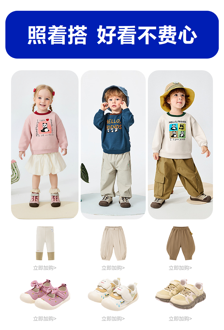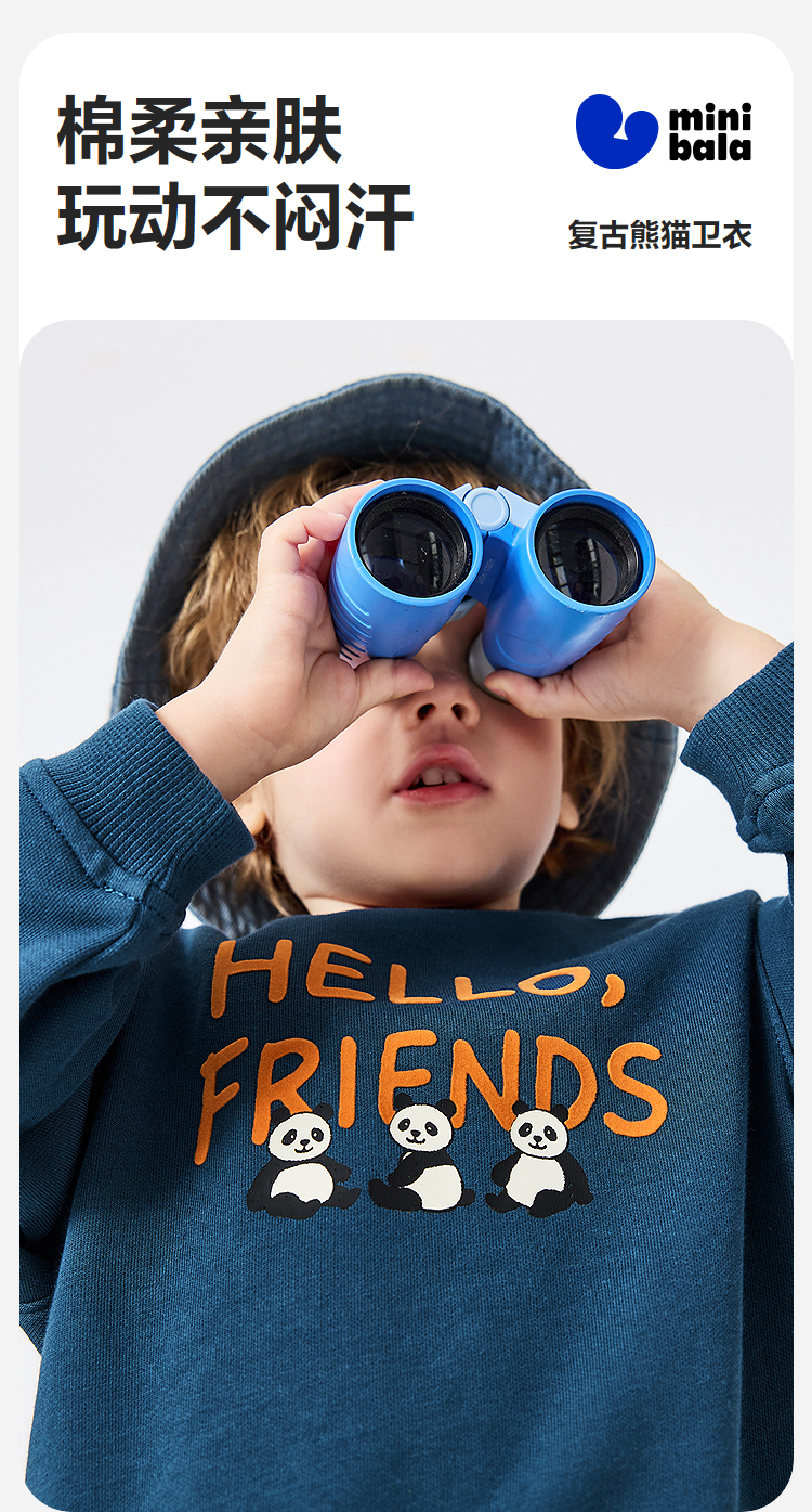 迷你巴拉巴拉男女童宝宝卫衣复古熊猫柔软亲肤舒适不易变形春新品★