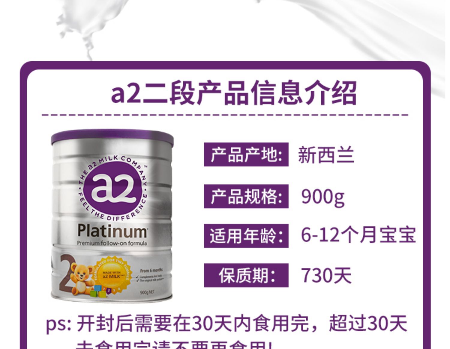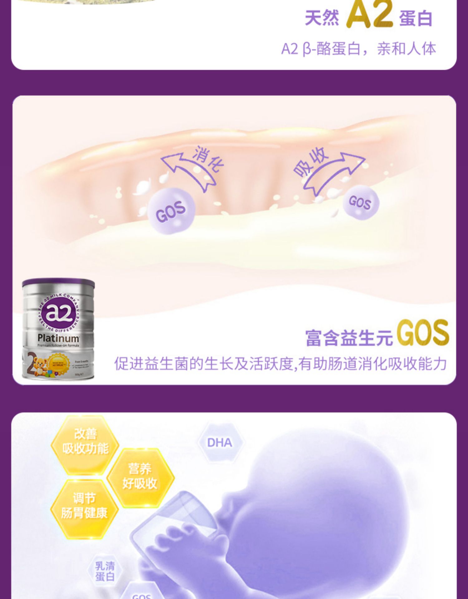 BSC|澳洲a2婴幼儿奶粉2段900g*3罐