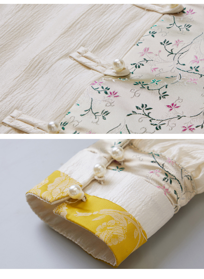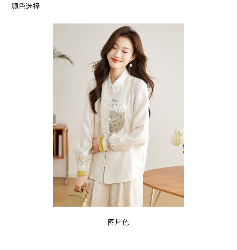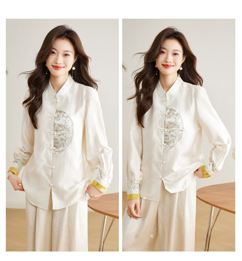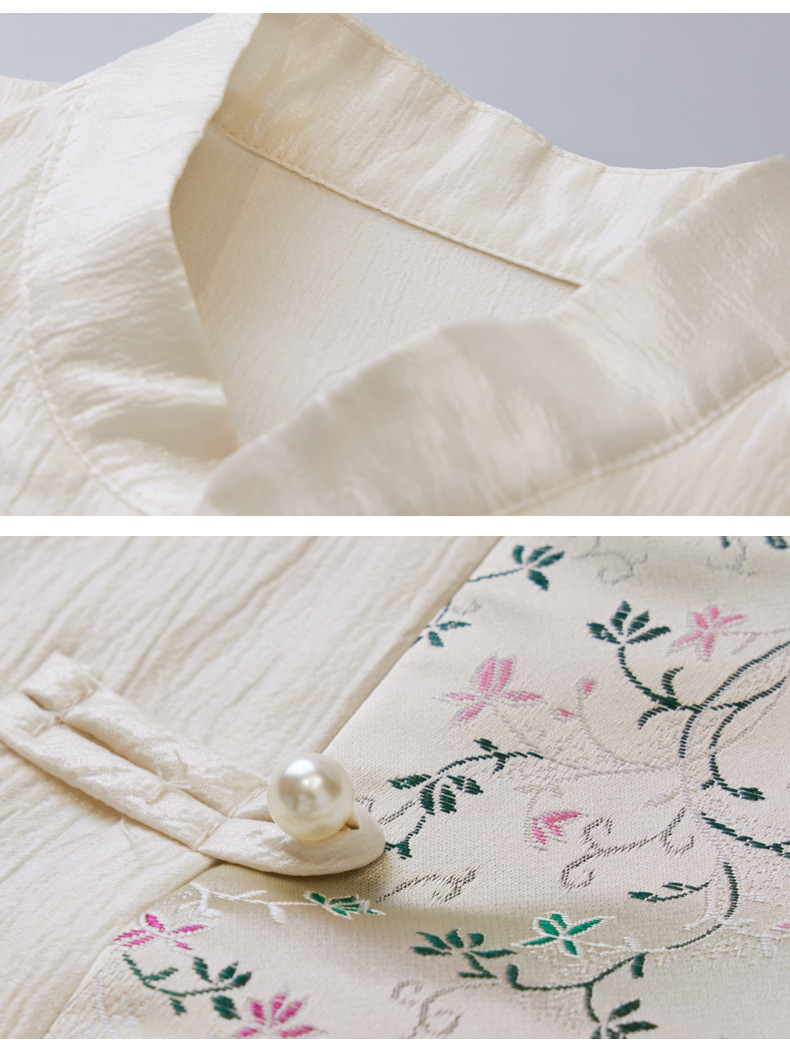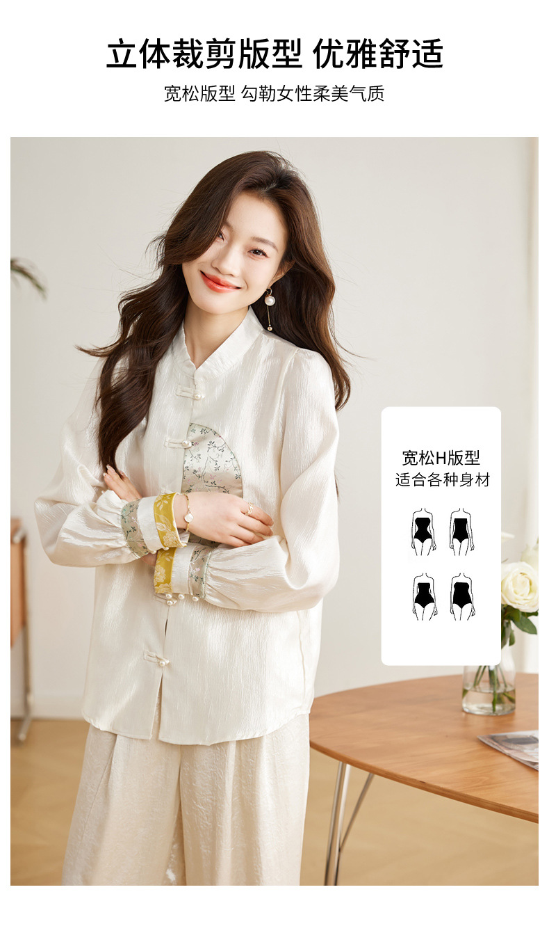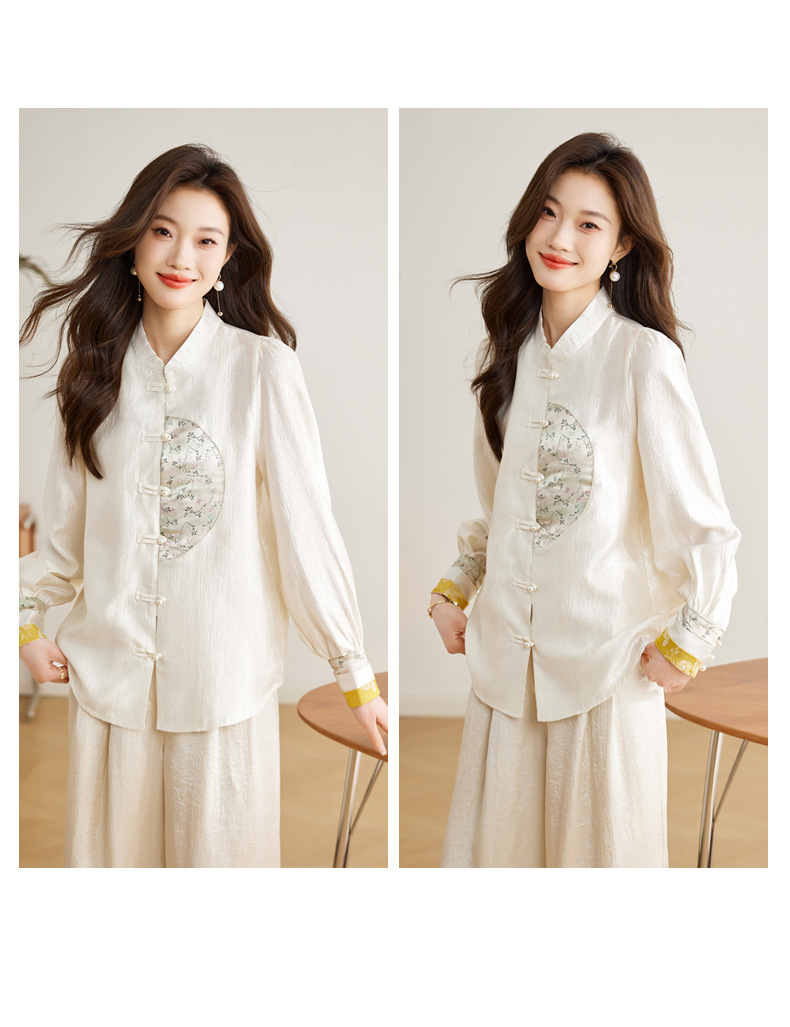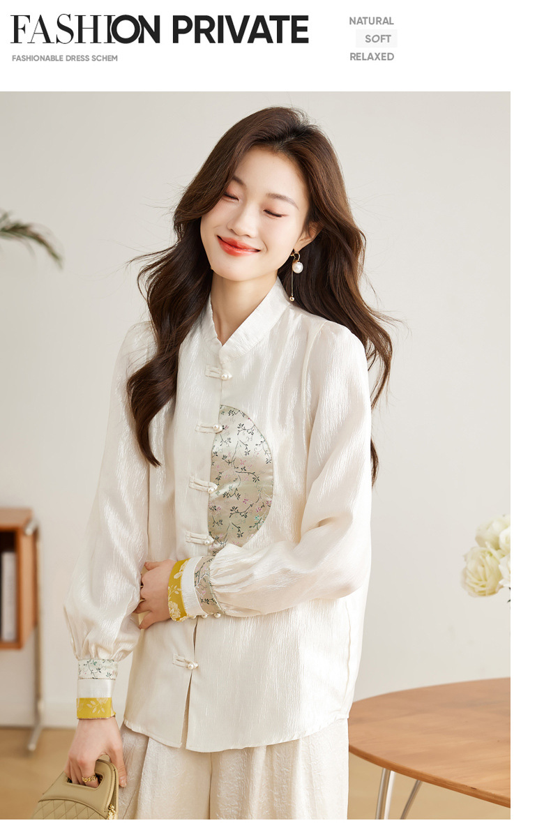 白色长袖新中式衬衫,立领国风复古刺绣提花盘扣上衣CC-QL-s6673