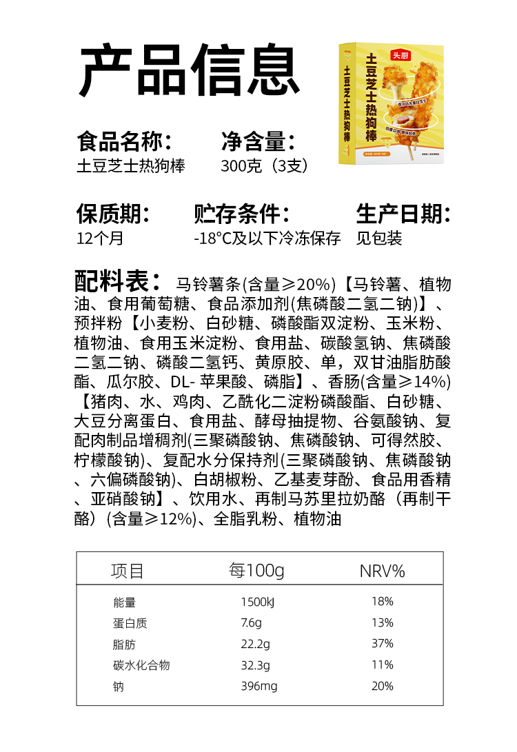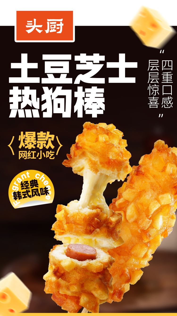 【头厨土豆芝士热狗棒】爆浆拉丝芝士棒火腿肠空气炸锅半成品食材零食
