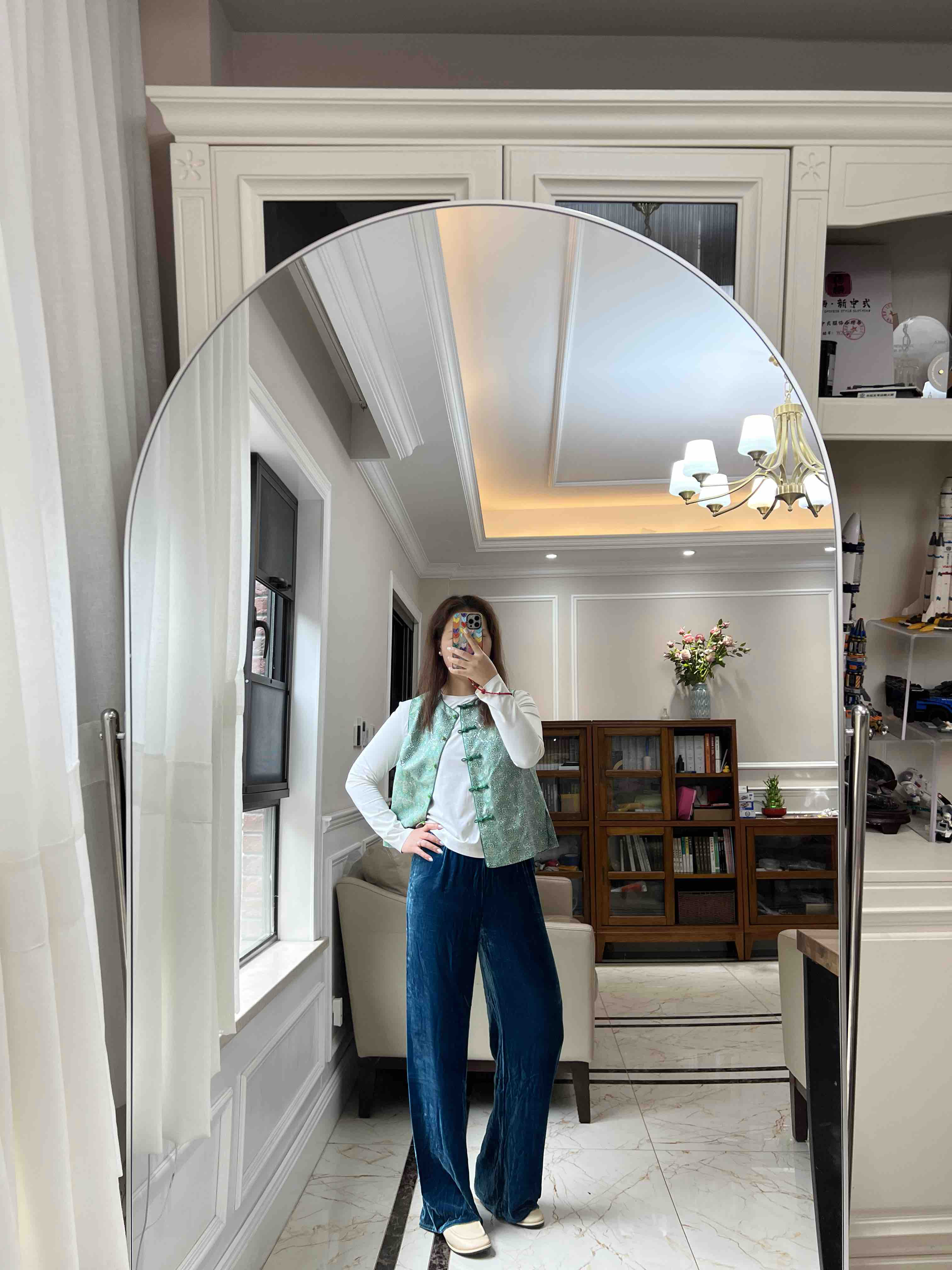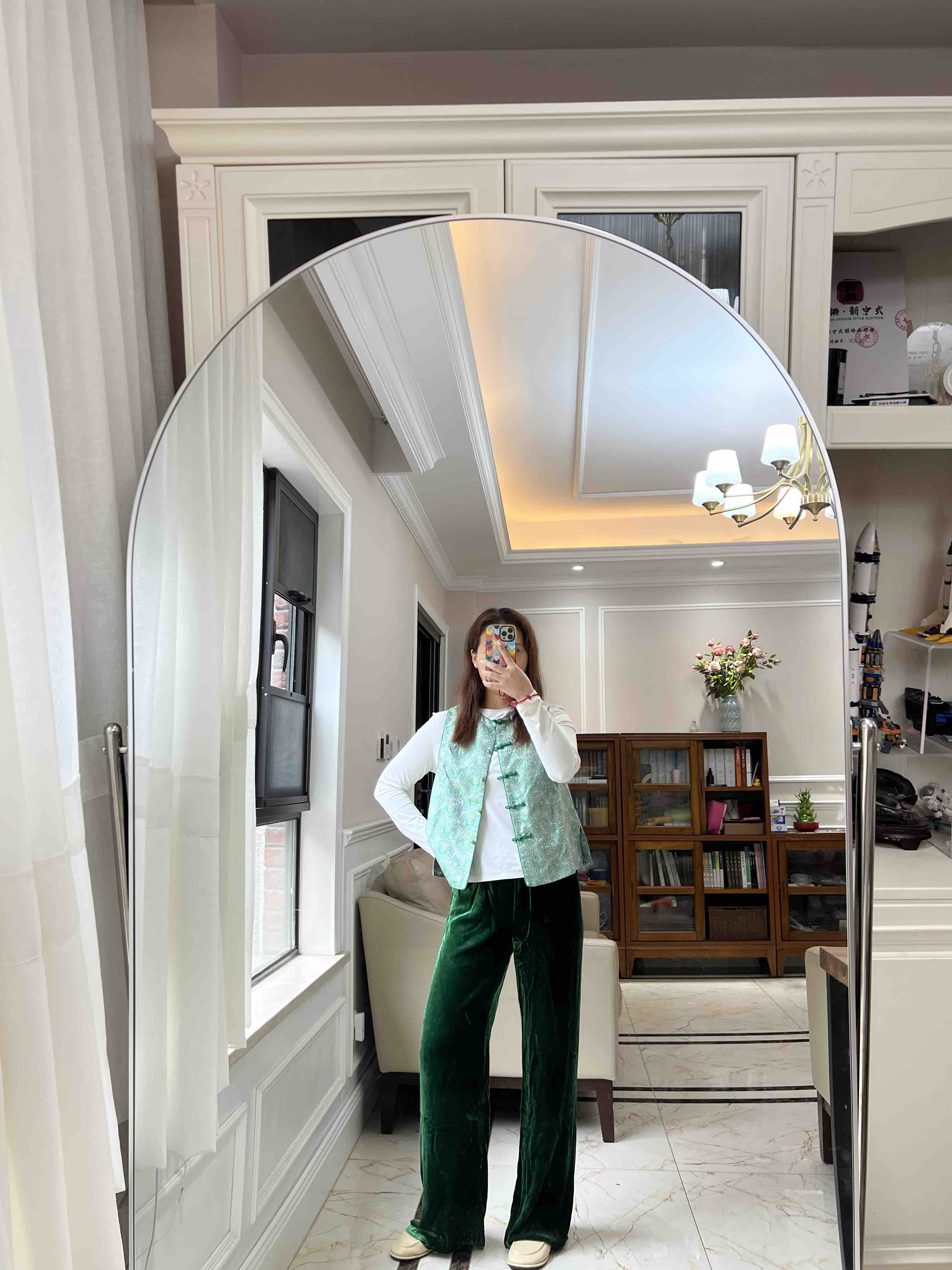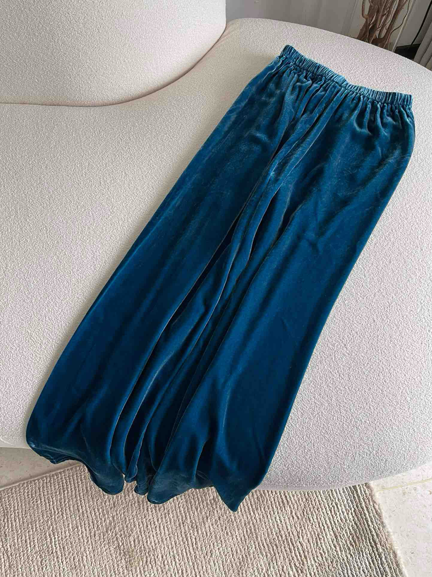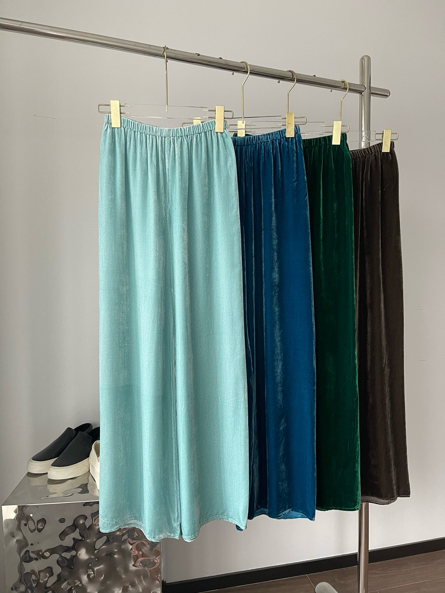 事情是这样的,我炒鸡喜欢的绿色丝绒阔腿裤,不知道什么时候开档了,我想了很多办法,也缝不好,然后就让工厂出了同样的真丝丝绒阔腿裤,高档的真丝丝绒阔腿裤啊,完全是温润凉快啊,夏天穿也是凉快的狠。