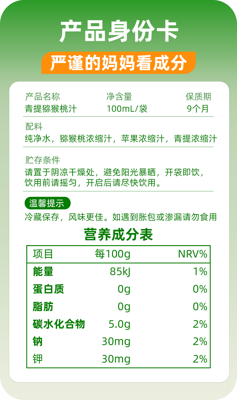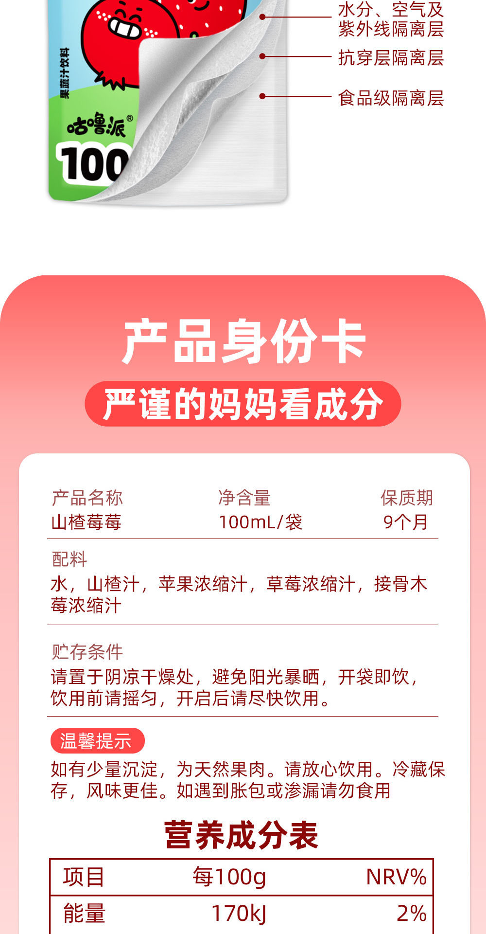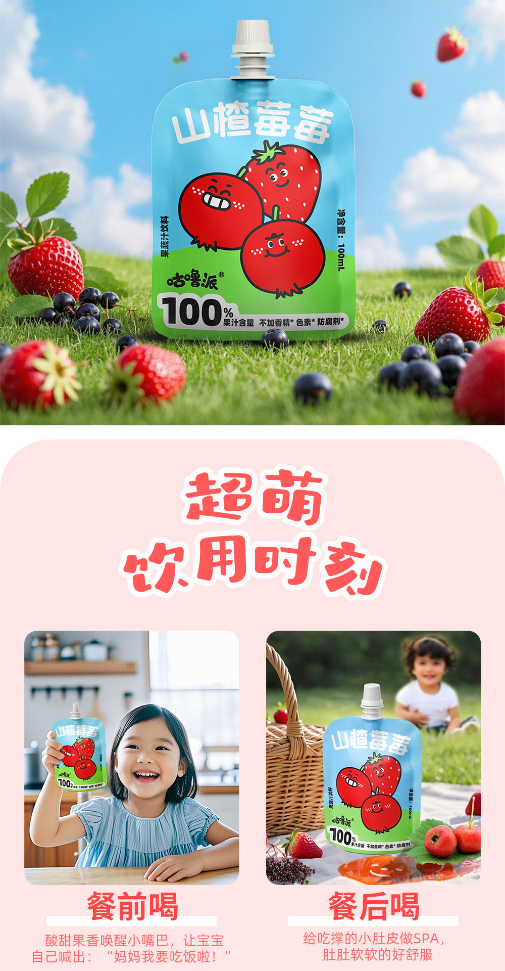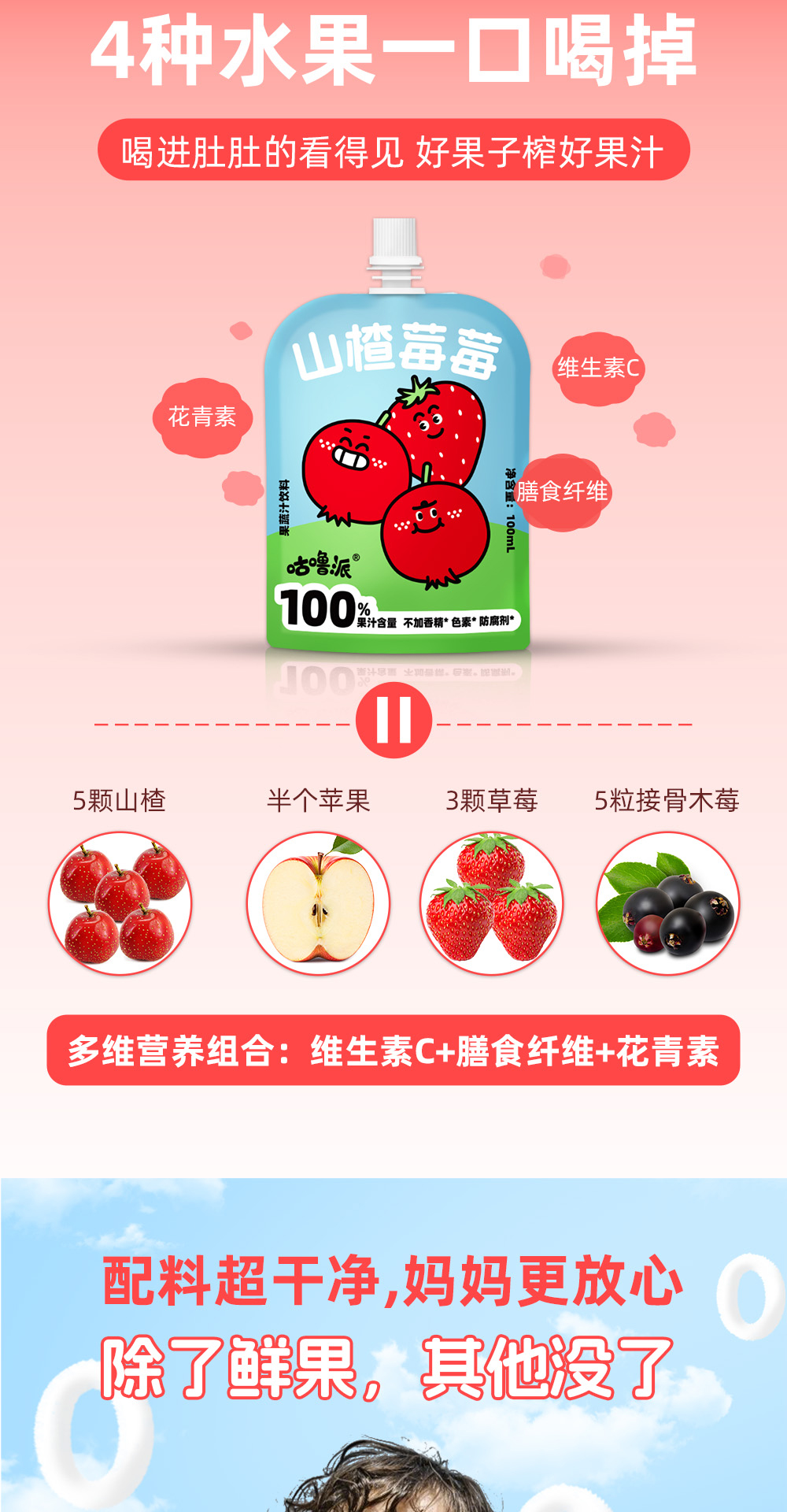 咕噜派山楂莓莓汁/青提猕猴桃汁100ml*10/20袋