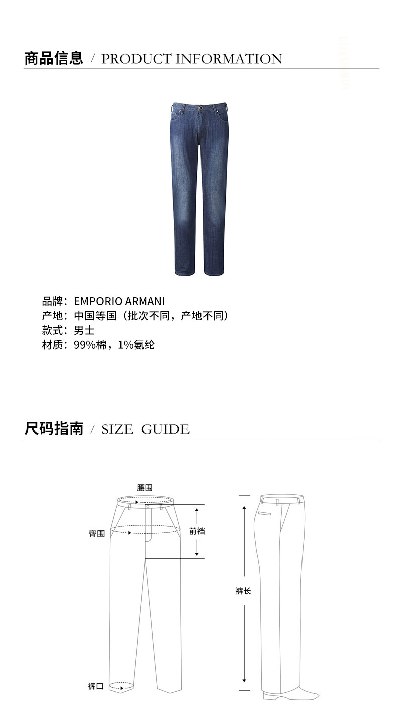Emporio Armani/安普里奥阿玛尼【21秋冬新款】 男士牛仔裤 男士棉质修身版牛仔裤 3K1J06 1DJCZ