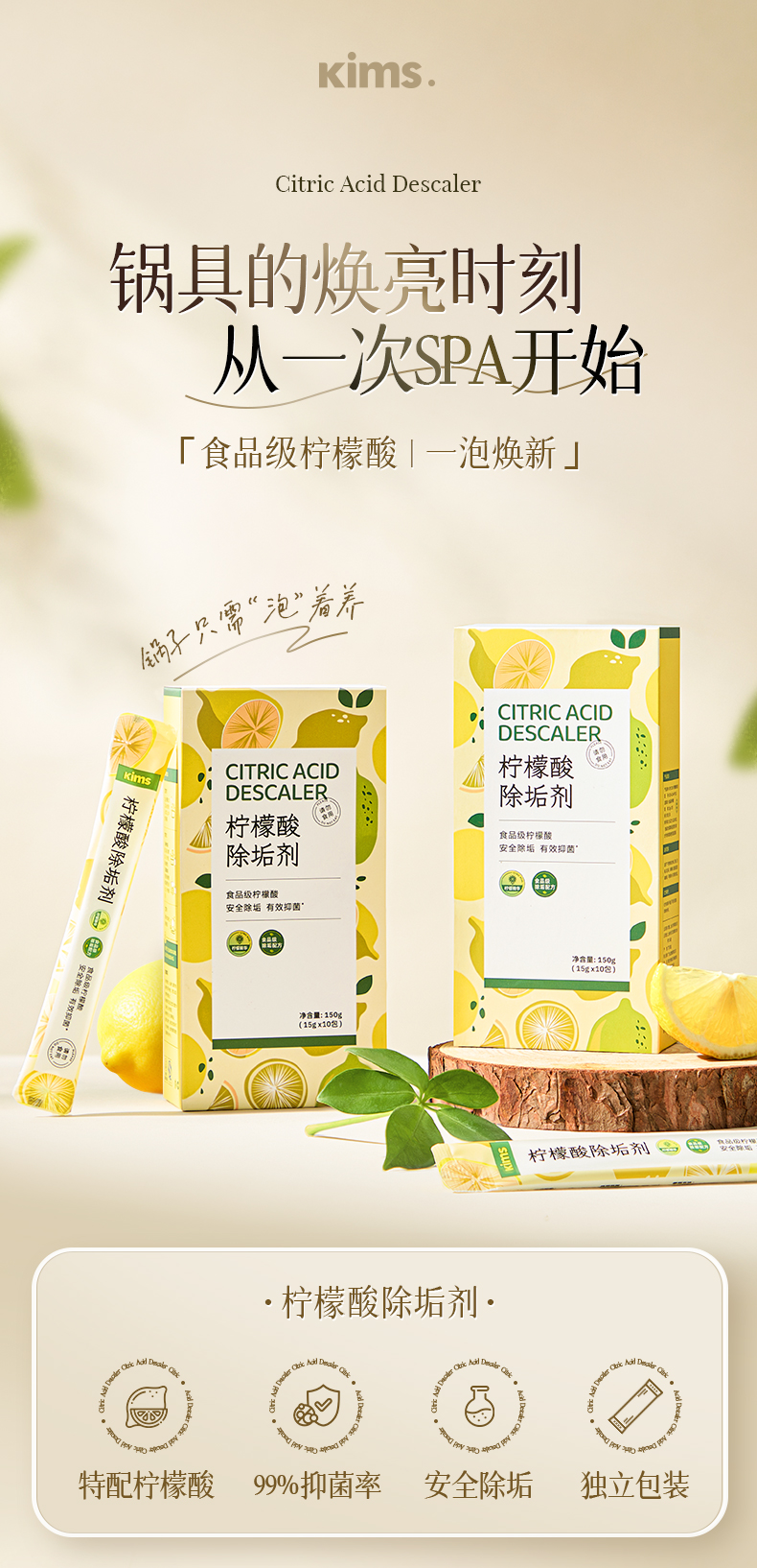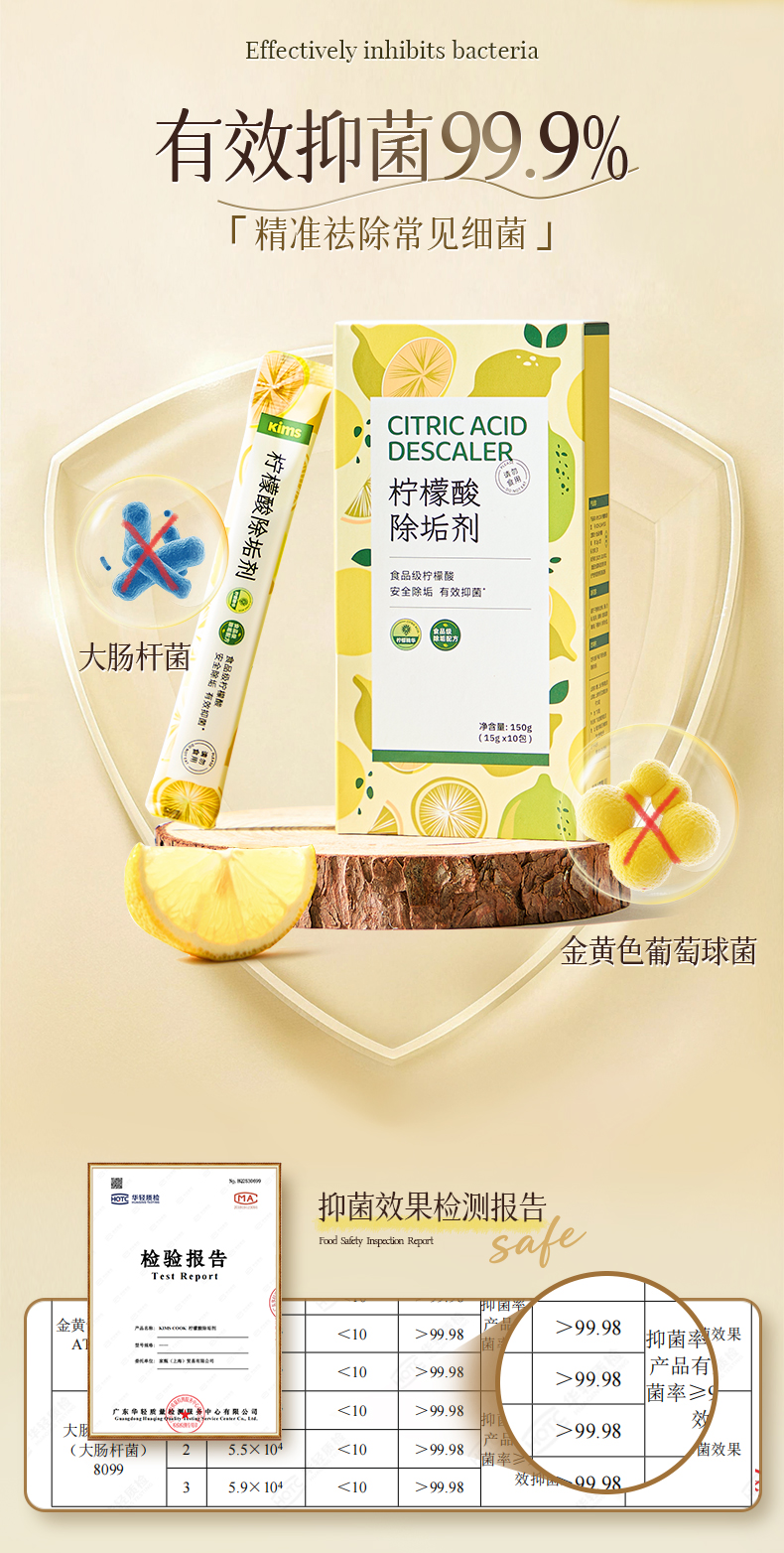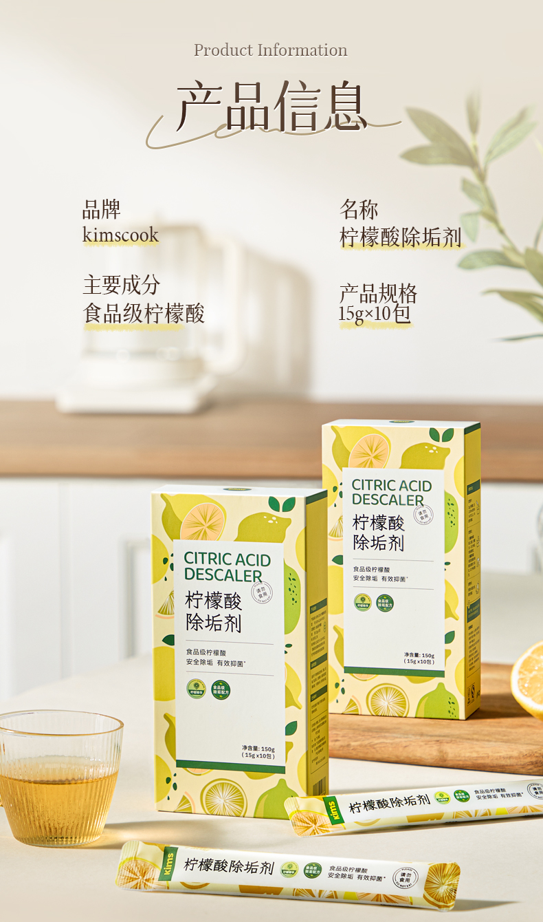 Kimscook柠檬酸除垢剂家用不锈钢电水壶除水垢清洁剂水垢清洗剂