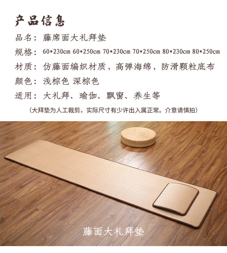 藤面拜忏垫大礼拜大拜垫顺滑藤席加厚家用拜忏垫磕大头拜佛垫四季款
