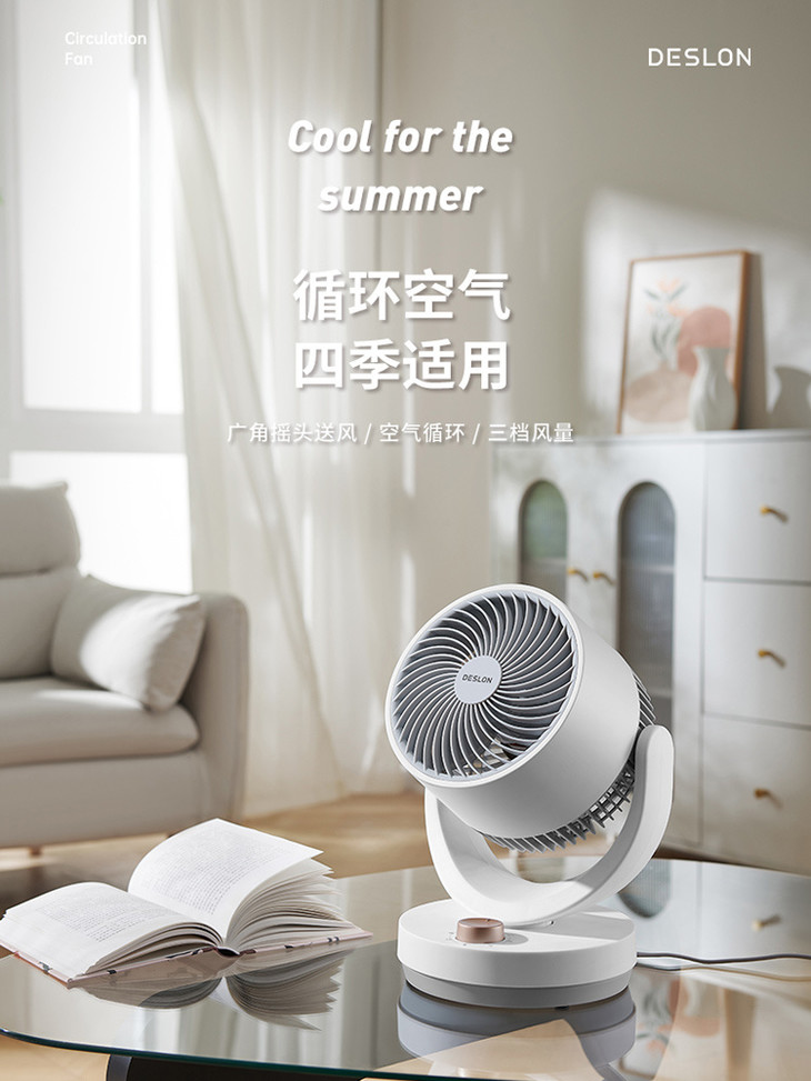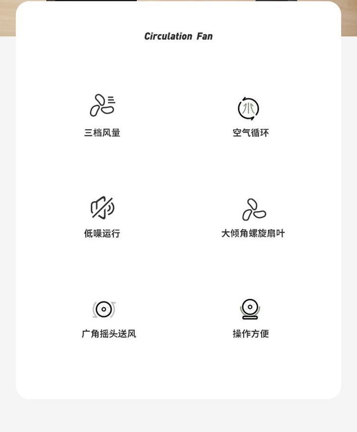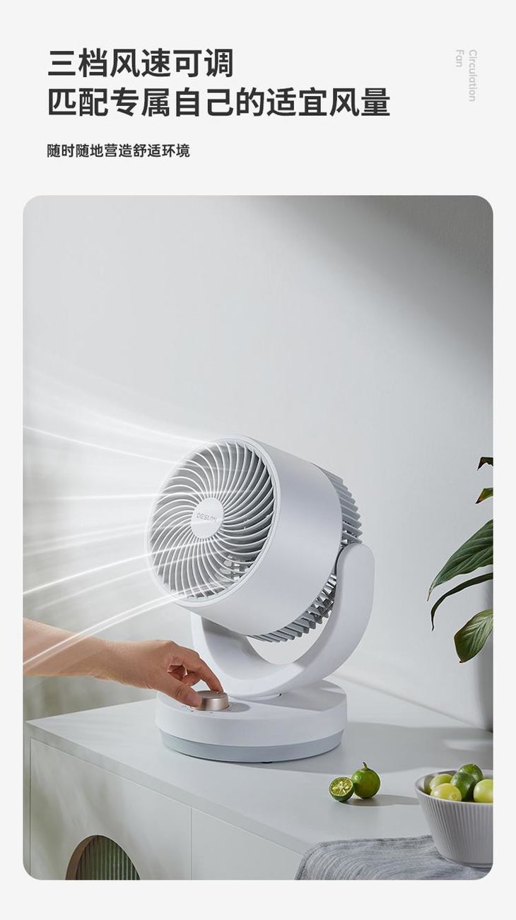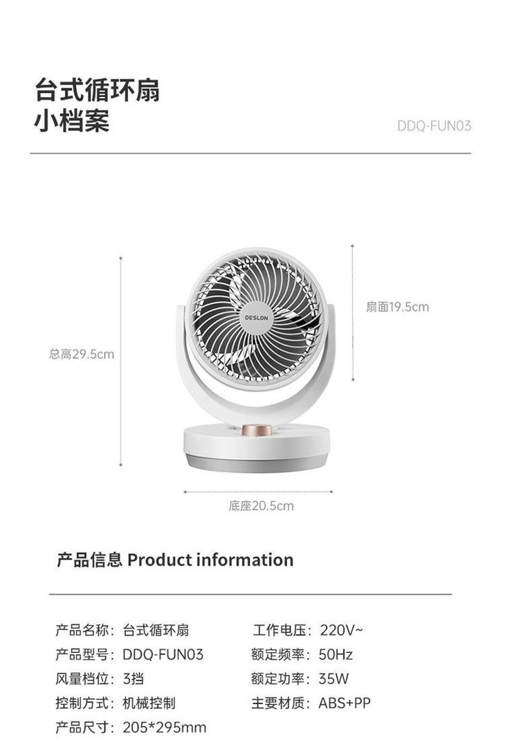 德世朗台式循环扇-六大功能 ✅机械控制,3档风,量可调,操作方便 ✅空气循环,大倾角螺旋扇叶 ✅底噪运行,静静的陪伴 ✅360度控制吹风