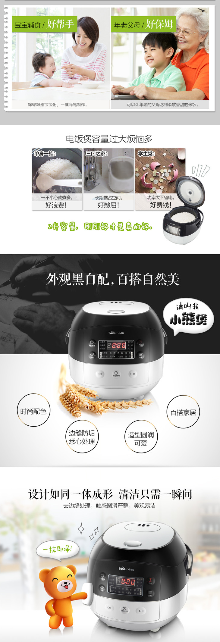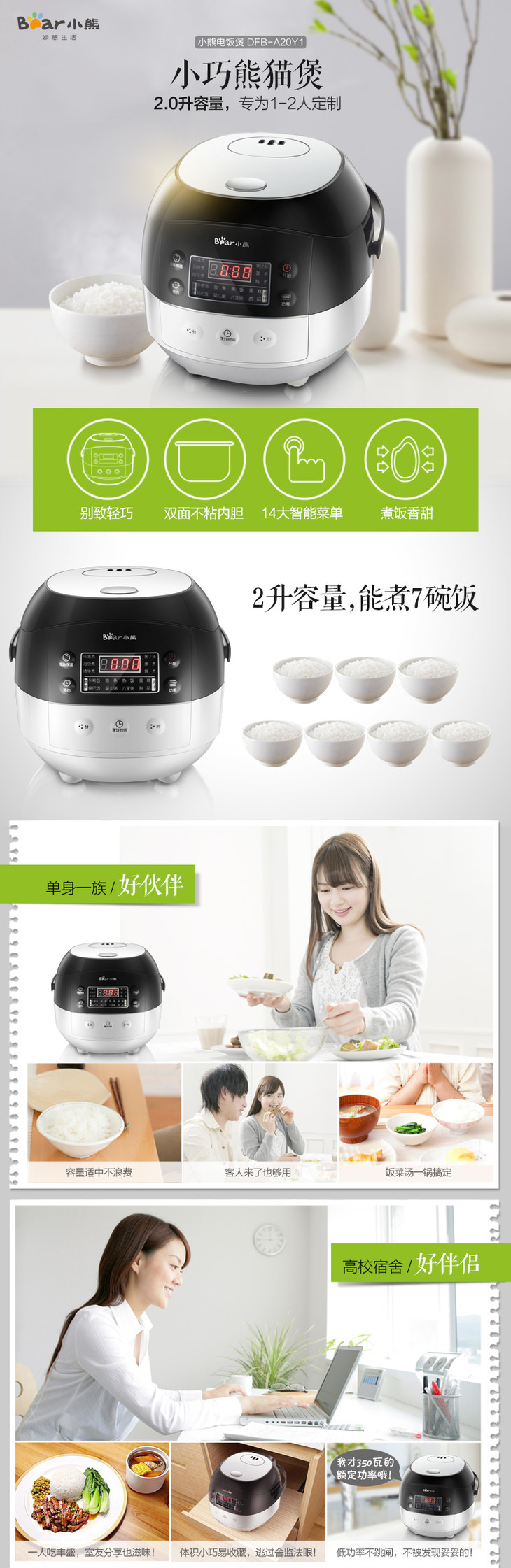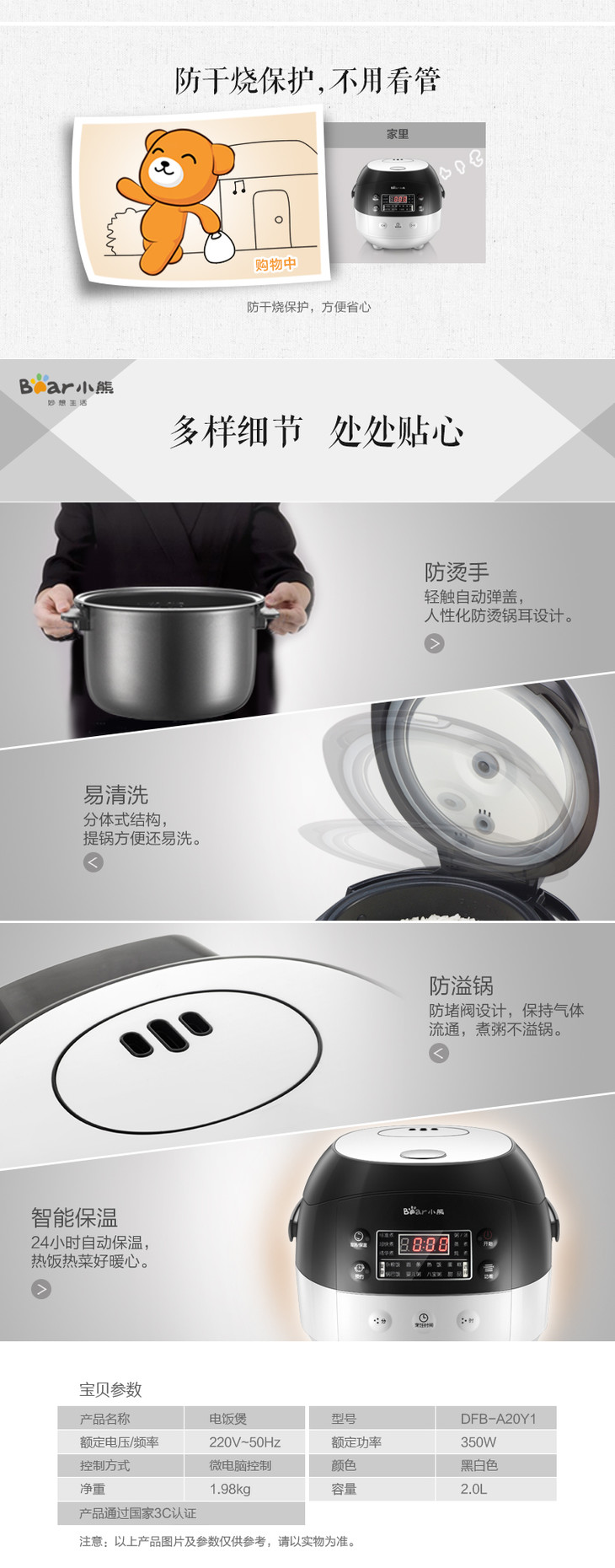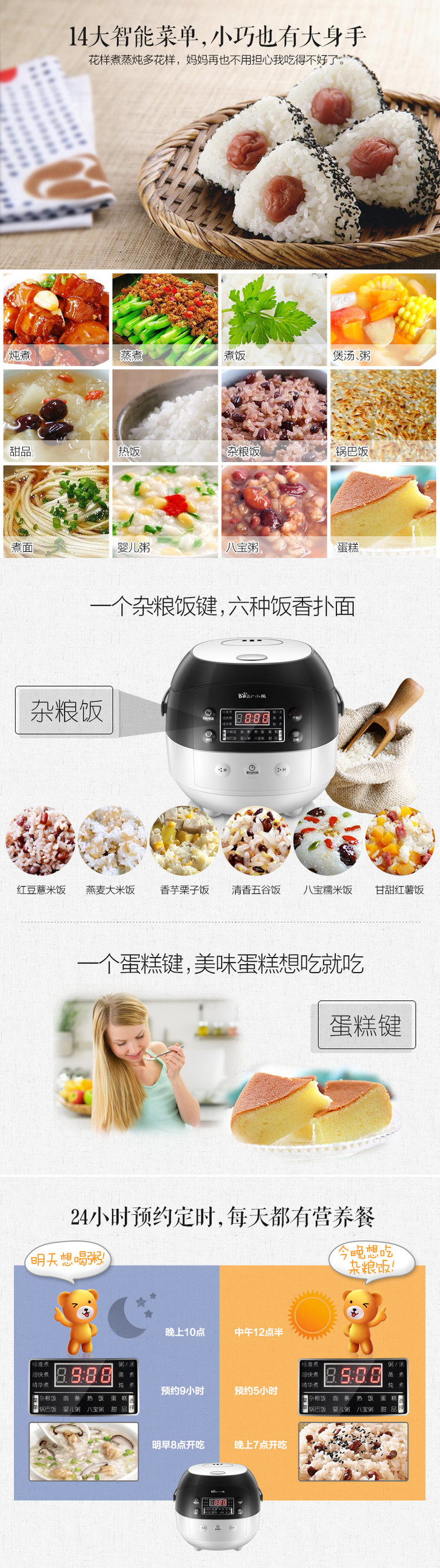 小熊(Bear)迷你电饭煲智能家用电饭锅小1-2人可预约2升容量煮粥锅DFB-A20Y1