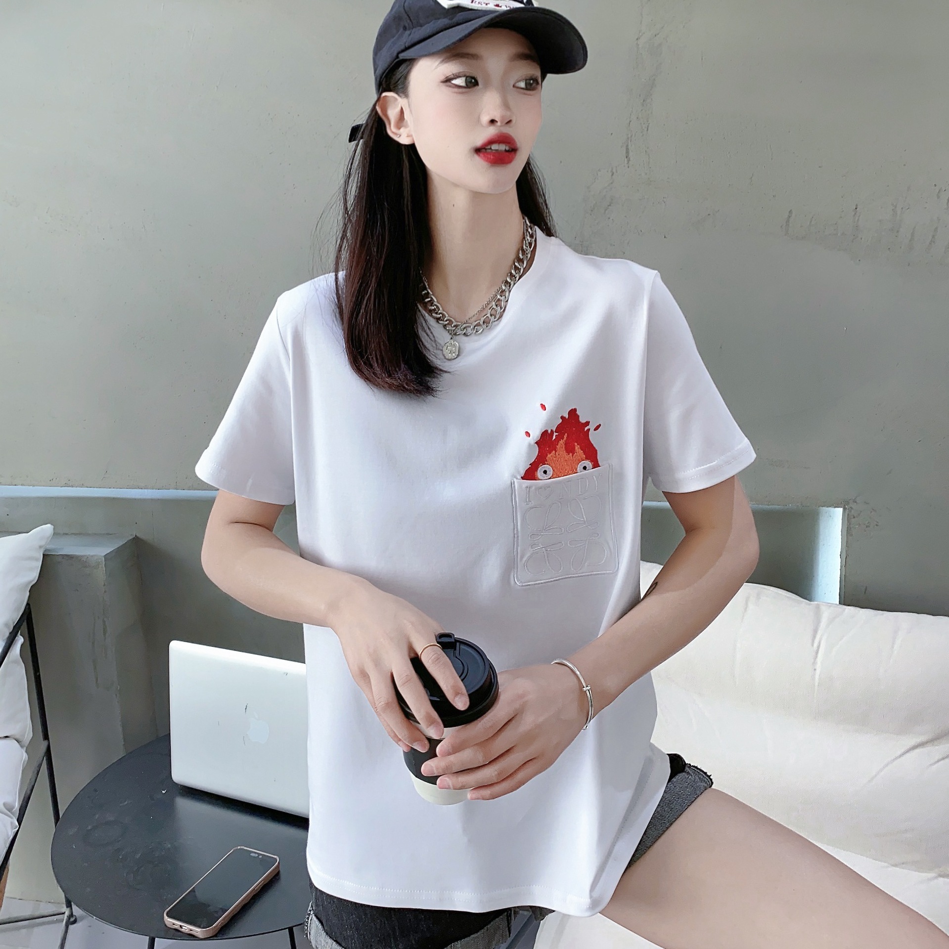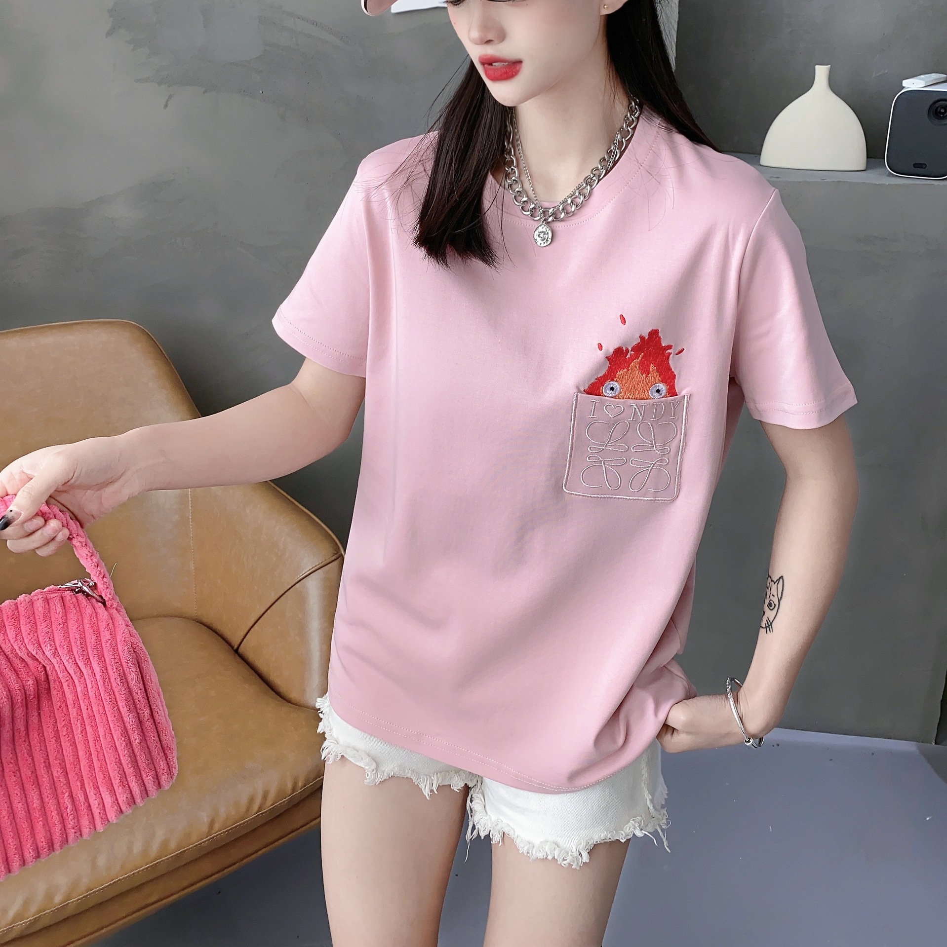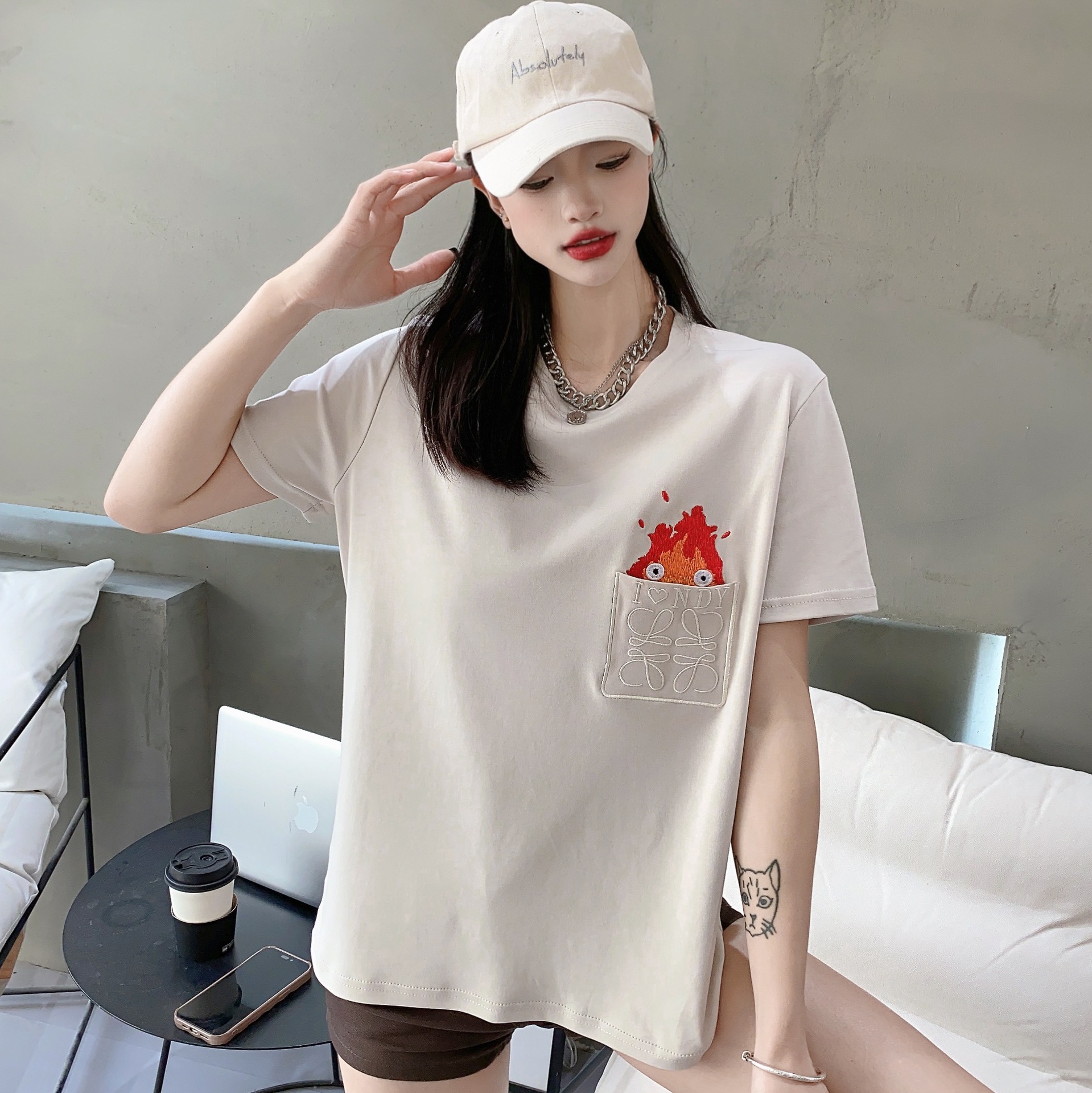 2023新宽松圆领刺绣上衣港风休闲体恤4.6版