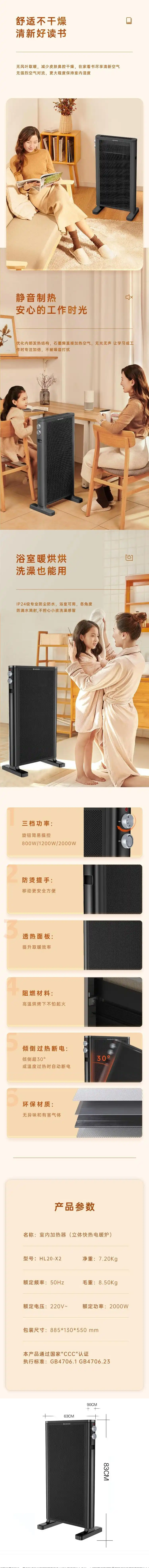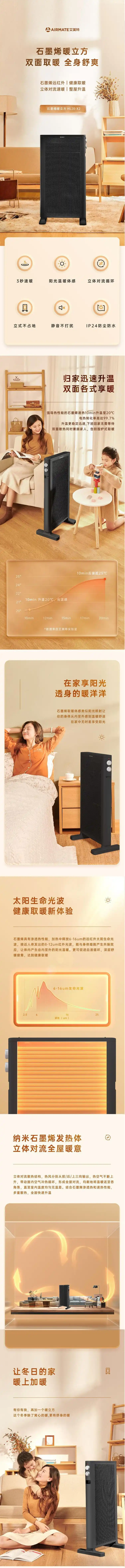 艾美特(509374) HL20-X2 取暖器家用节能省电暖气石墨烯双面电暖器烤火炉 艾美特 HL20-X2 取暖器家用节能省电暖气石墨烯双面电暖器烤火炉