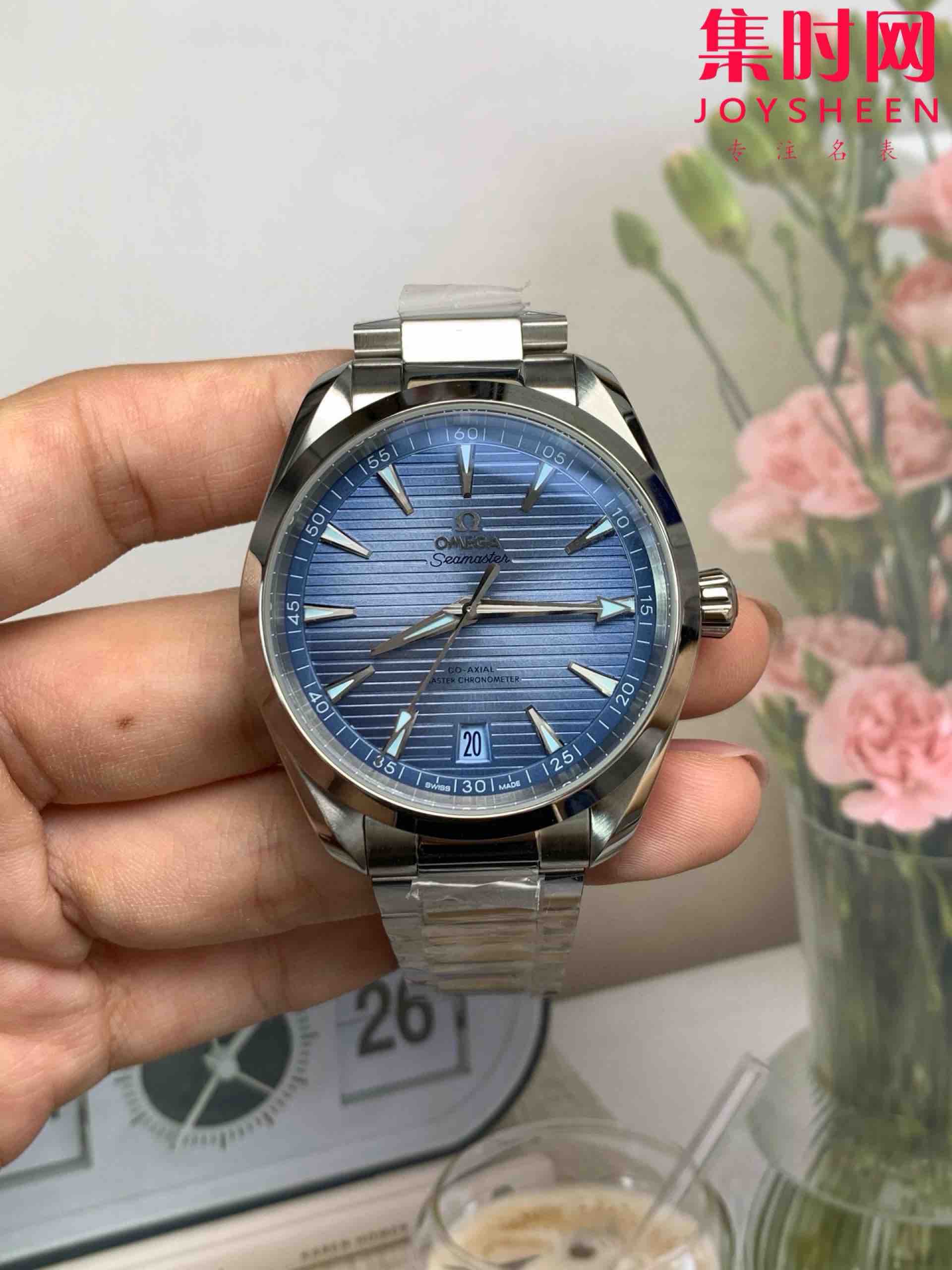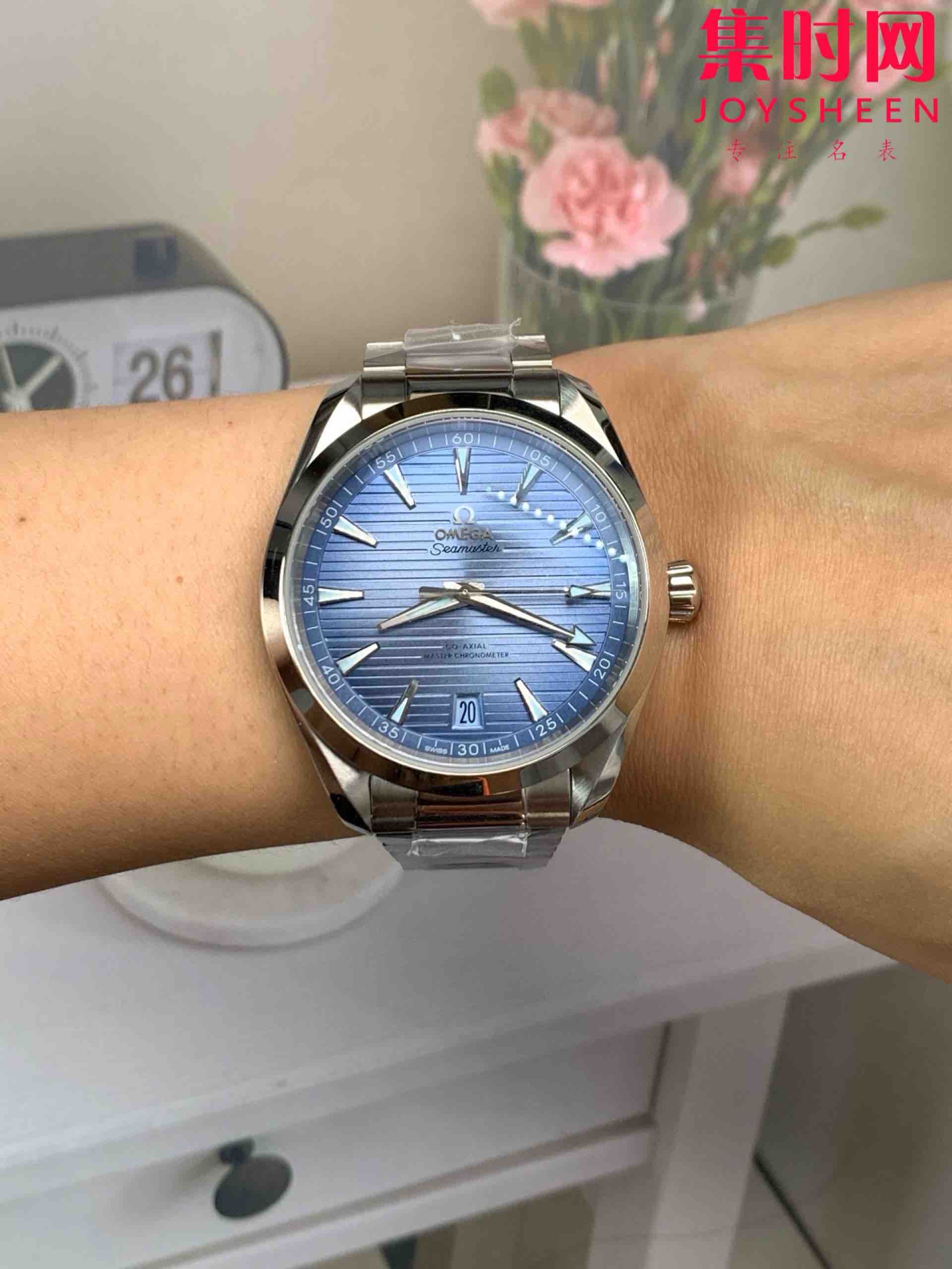 欧米茄VS海马150米系列 75周年纪念版 夏日蓝 湖蓝海马 密底海马 6点位日历 Aqua Terra 150米腕表 8900一体机 男士腕表 表径41mm 黄金尺寸,适配多数腕围,日常通勤与正式场合皆能hold住!
