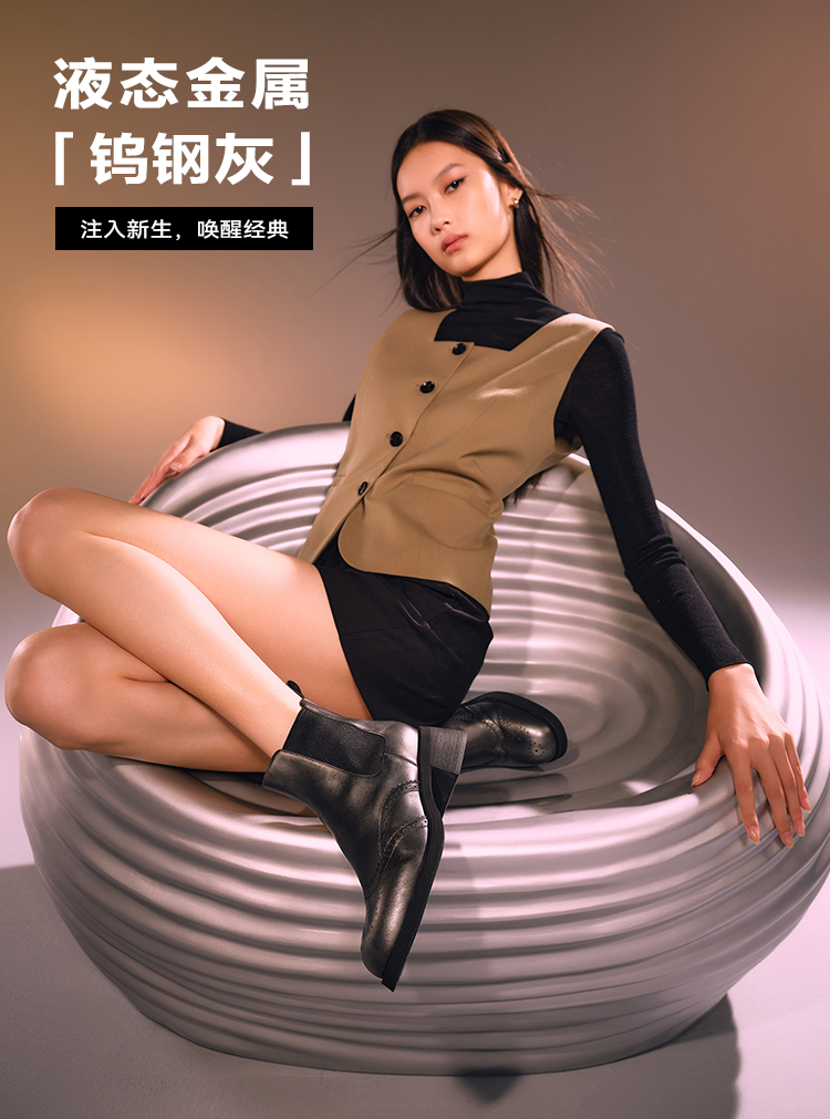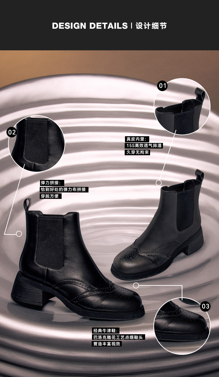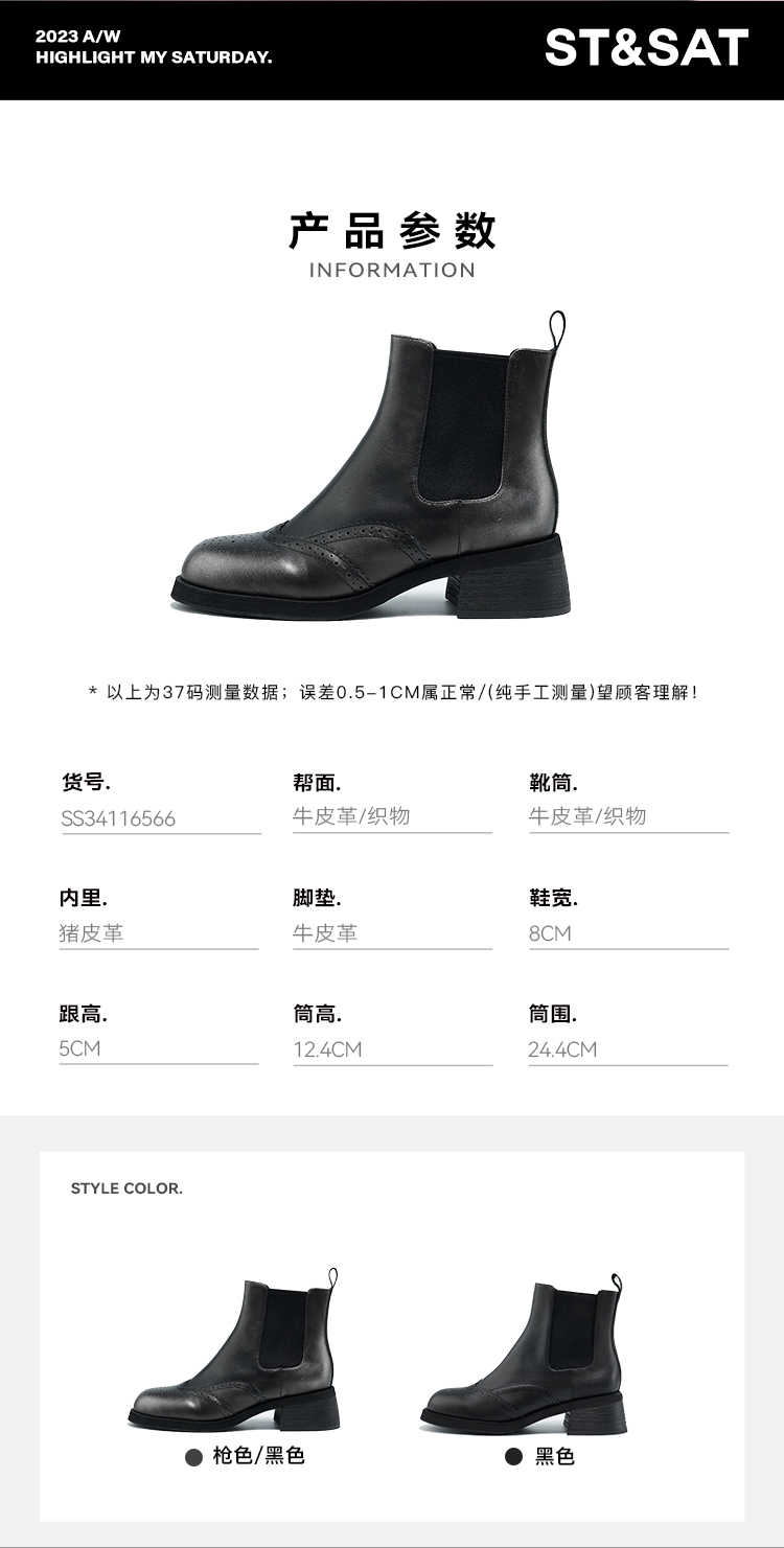 【绒里可选】星期六英伦风粗跟通勤切尔西短靴SS34116566/SS34118566