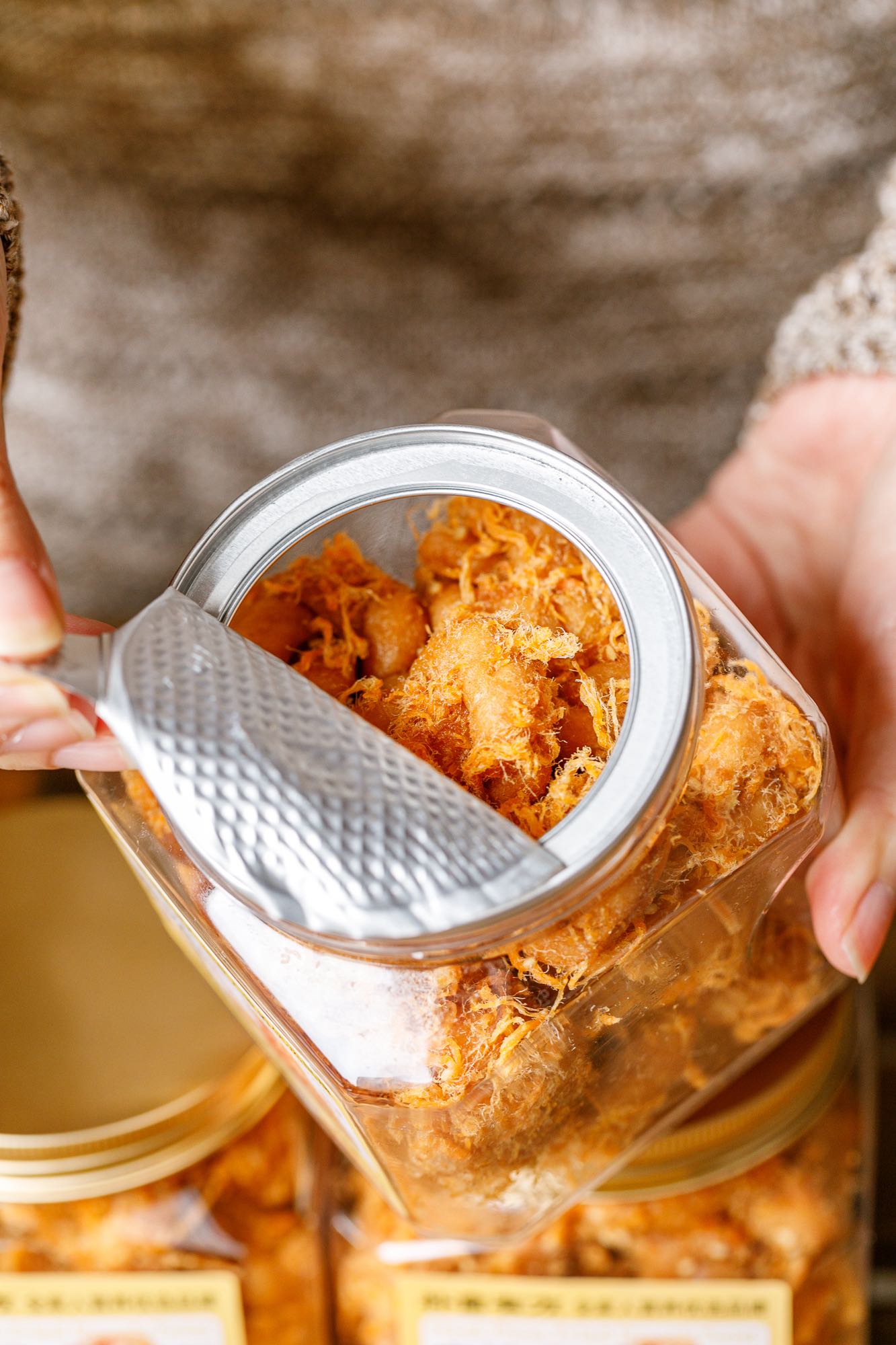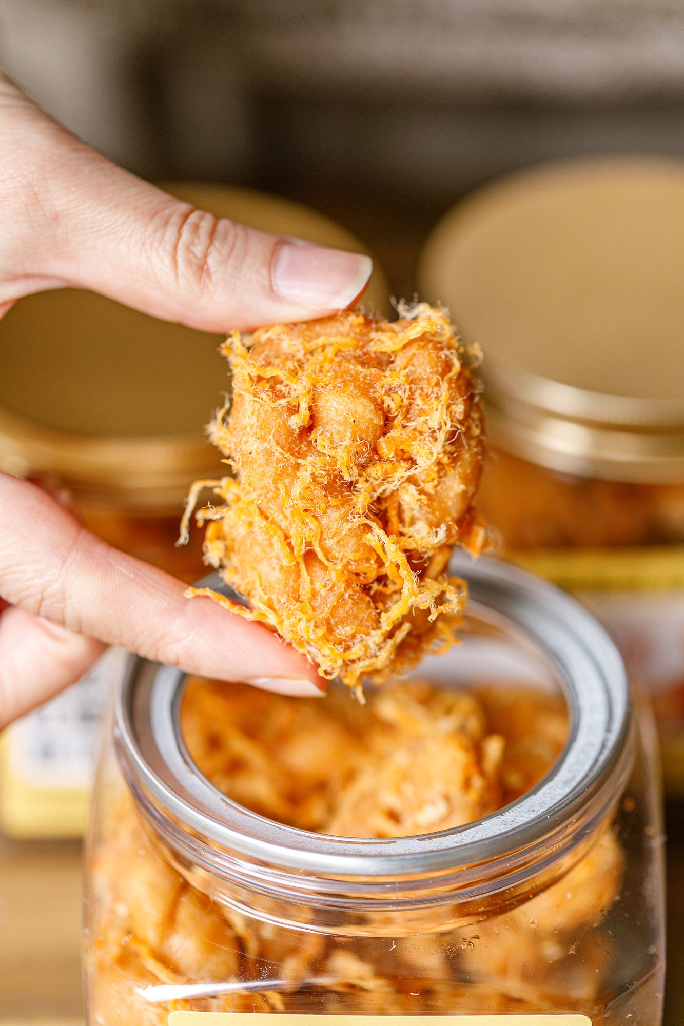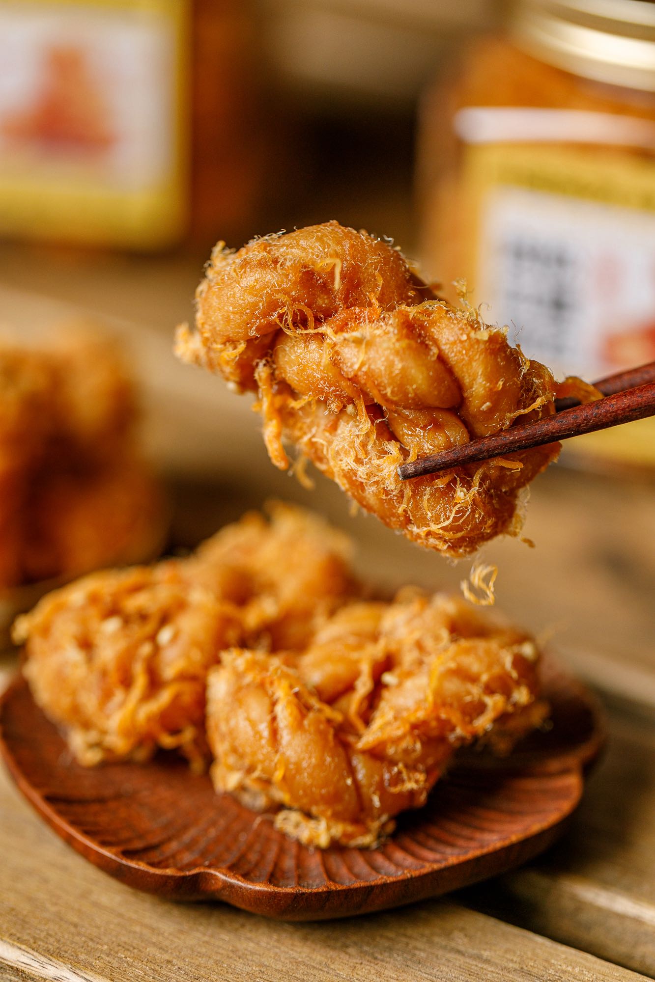 让足量的肉松在麻花拧结时便被牢牢锁入每一层面丝之中。