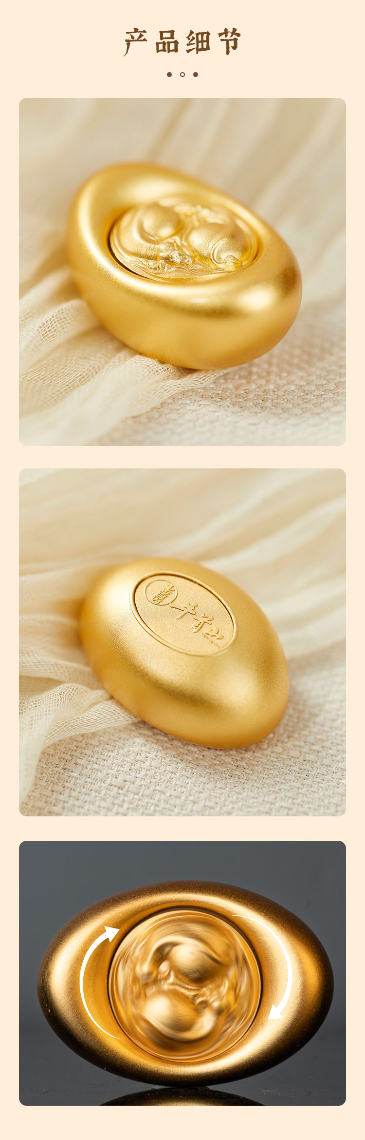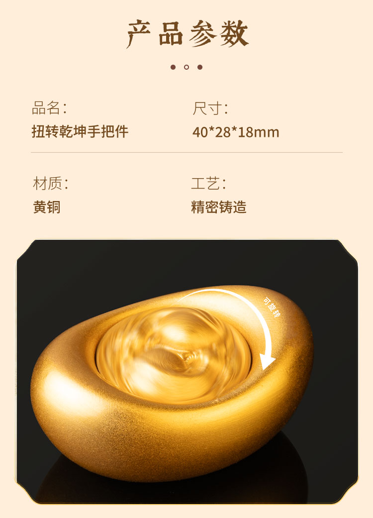 牛首山文创扭转乾坤手把件黄铜金色元宝招财摆件送领导长辈礼盒