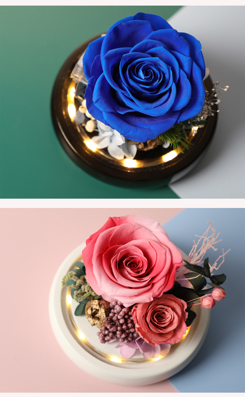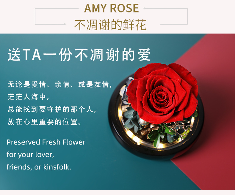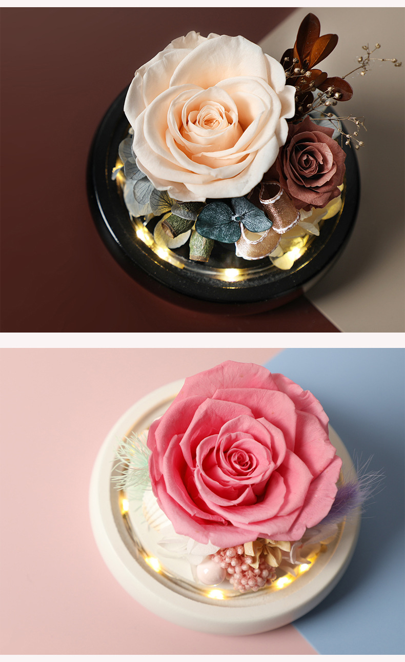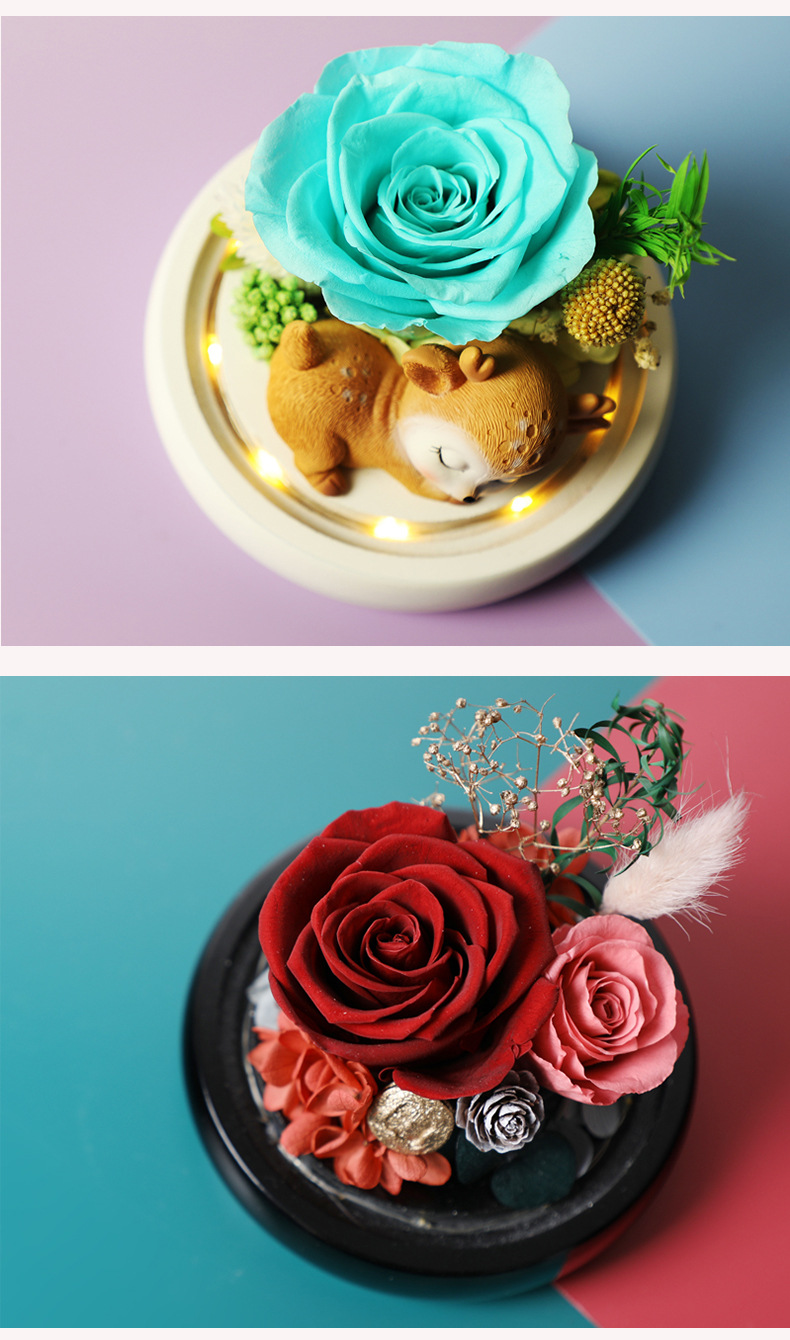 顺丰包邮 情人节礼物 爱心款永生花礼盒玻璃罩七夕情人节礼物闺蜜女友玫瑰花干花diy