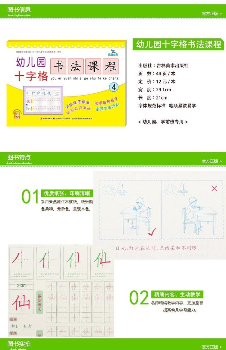幼儿园十字格书法课程4 幼儿汉字笔顺描红整合教材 幼升小幼小衔接入学准备 幼儿园书法课程铅 一年级汉字描红本