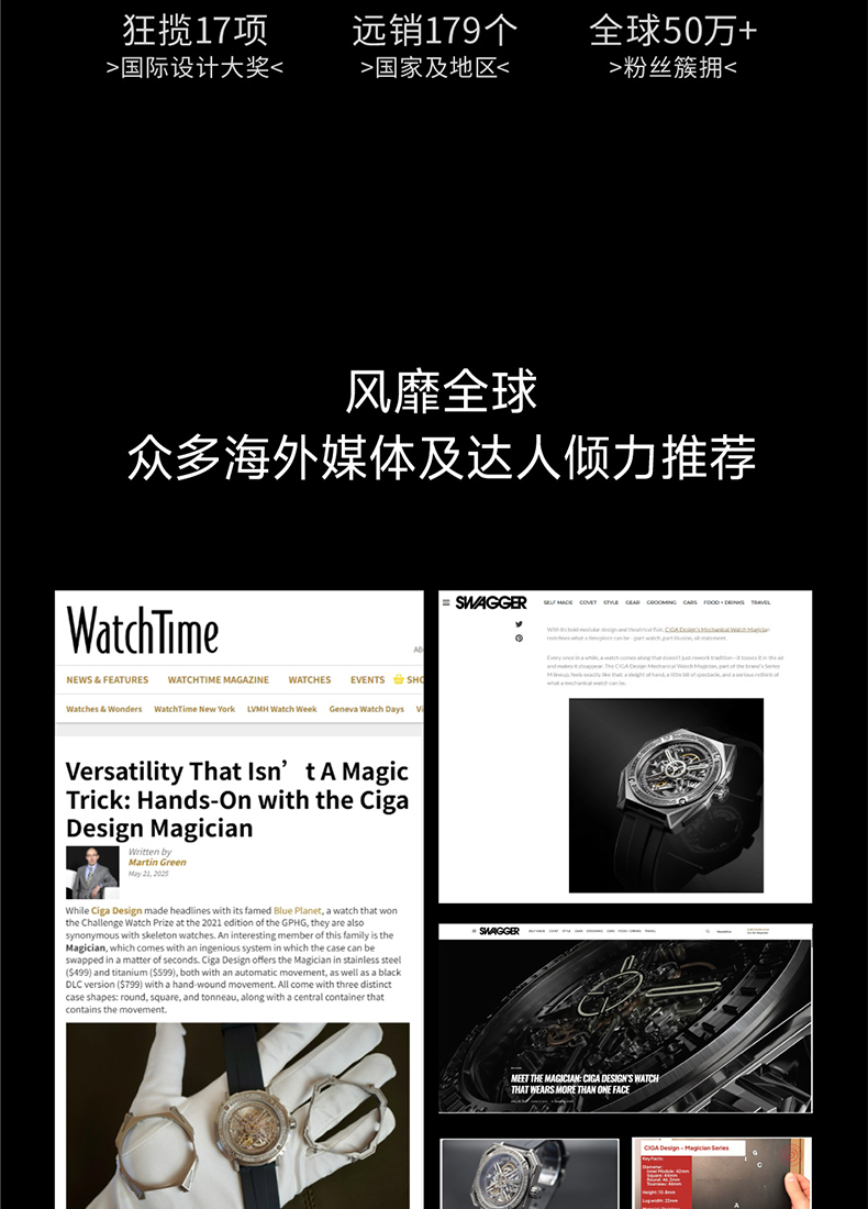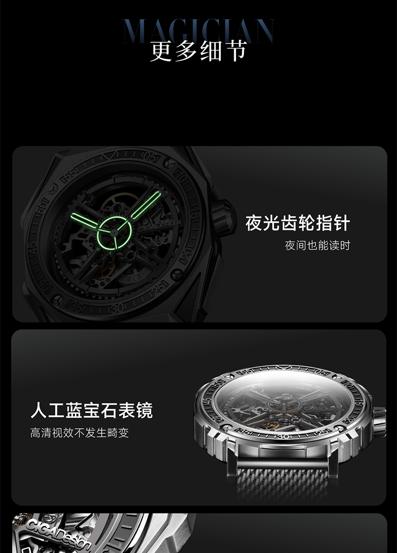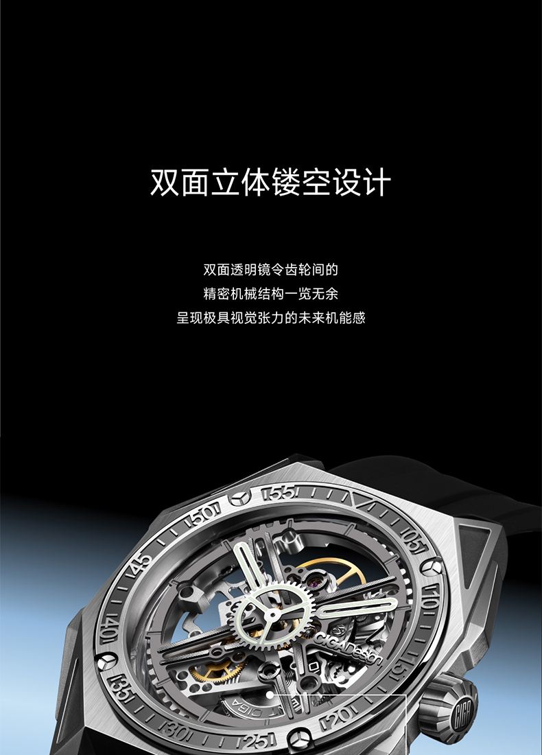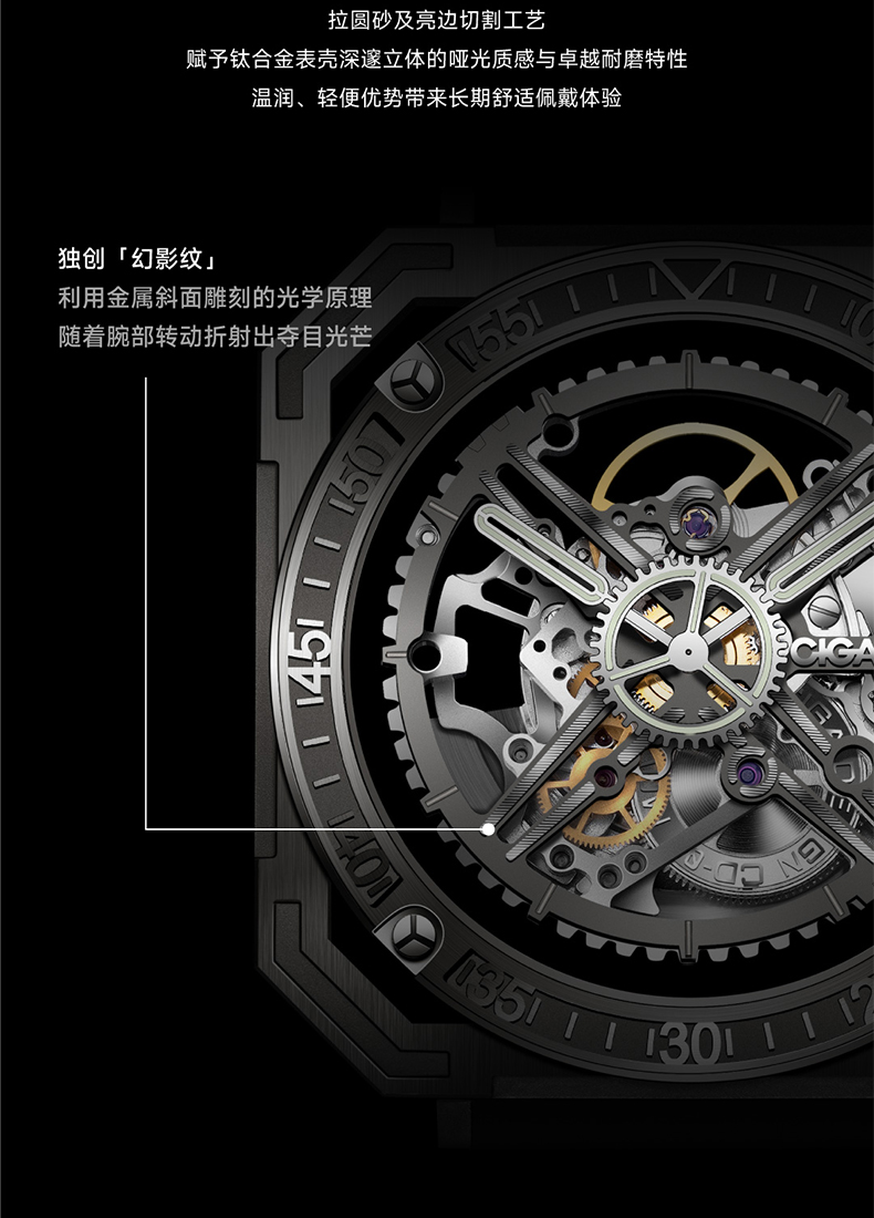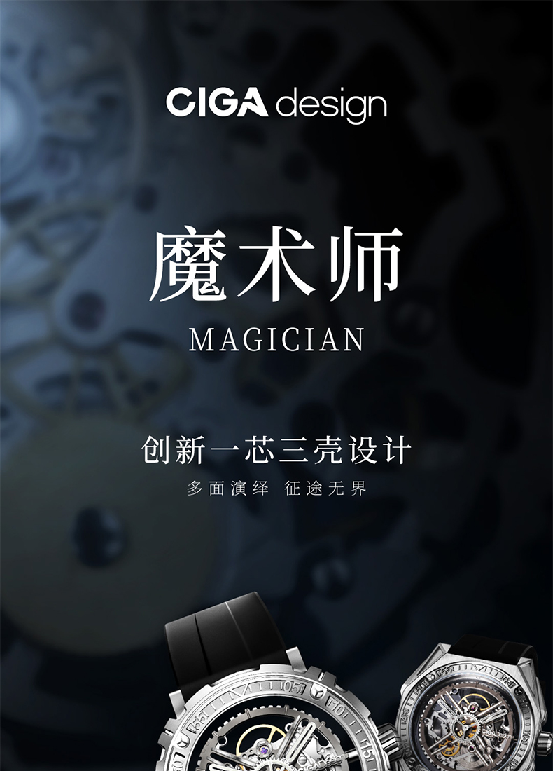 CIGA design玺佳机械表M系列魔术师镂空男士手表1表3壳钛合金手表