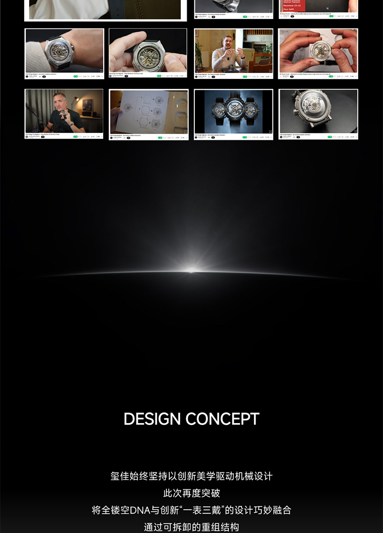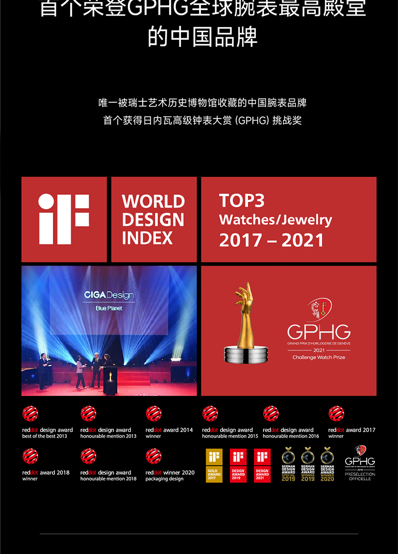 - 钟表界设计先锋,2021年荣获第19届瑞士日内瓦钟表大赏GPHG的中国品牌。秉持“设计成就非凡”理念,坚守原创,突破传统。