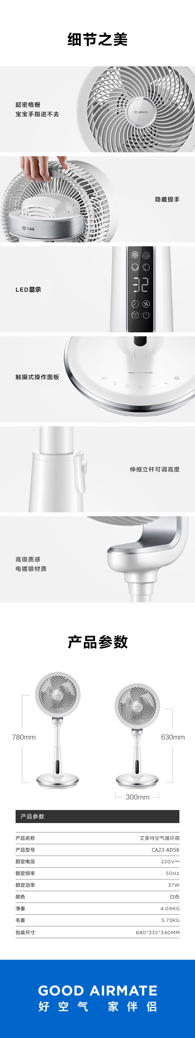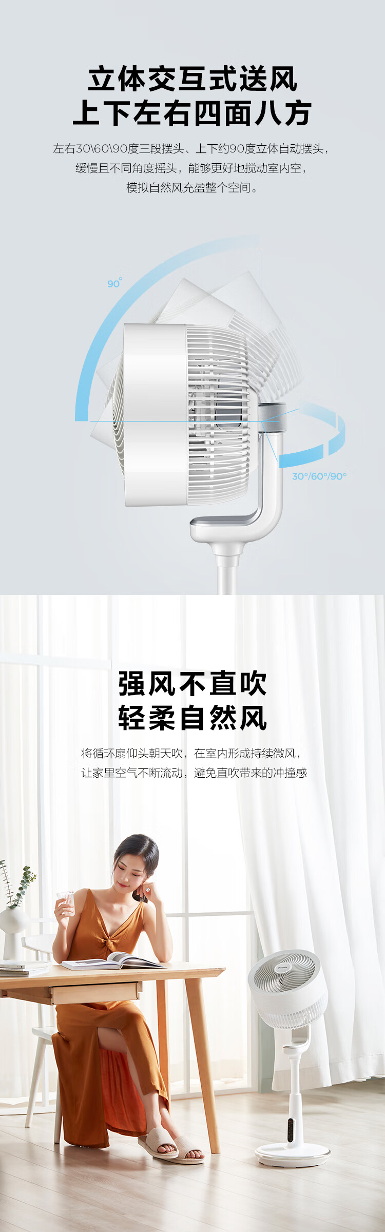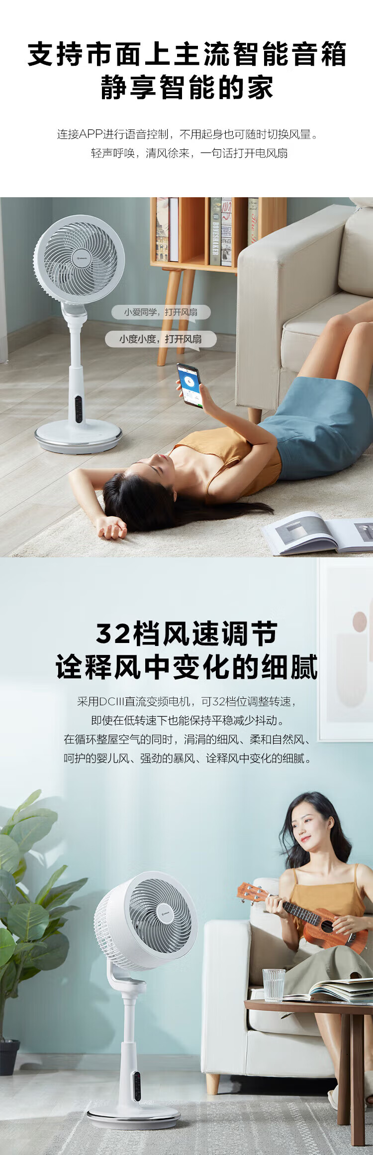 艾美特(AIRMATE)“白天鹅智能款”空气循环扇APP智能操控32档直流变频家用落地扇3D自动摆头四季适用电风扇 AD58