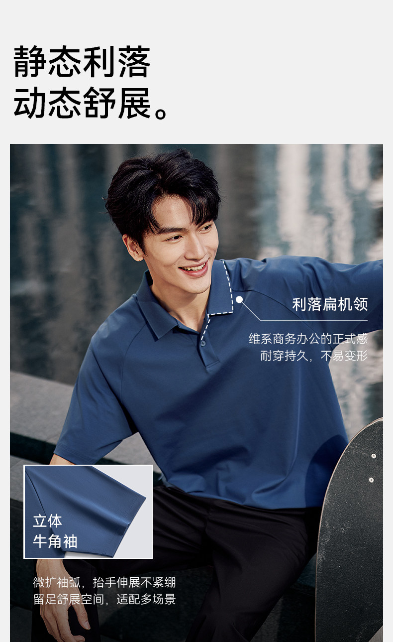 【春夏新品】十如仕扁机领吸湿凉感速干牛角袖短袖POLO衫P20-02