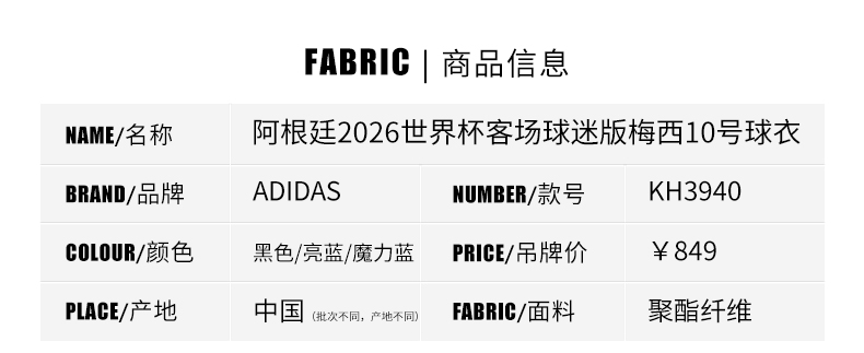 SFS阿迪达斯2026阿根廷客场梅西印号球衣短袖球迷版足球服 KH3940