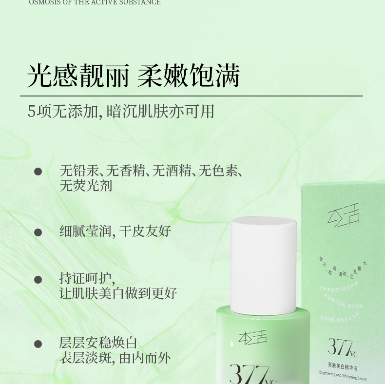 (新品限时优惠)广州药妆正品本活亮肤美白精华液(绿色渐变款)美白细腻淡斑精美透亮