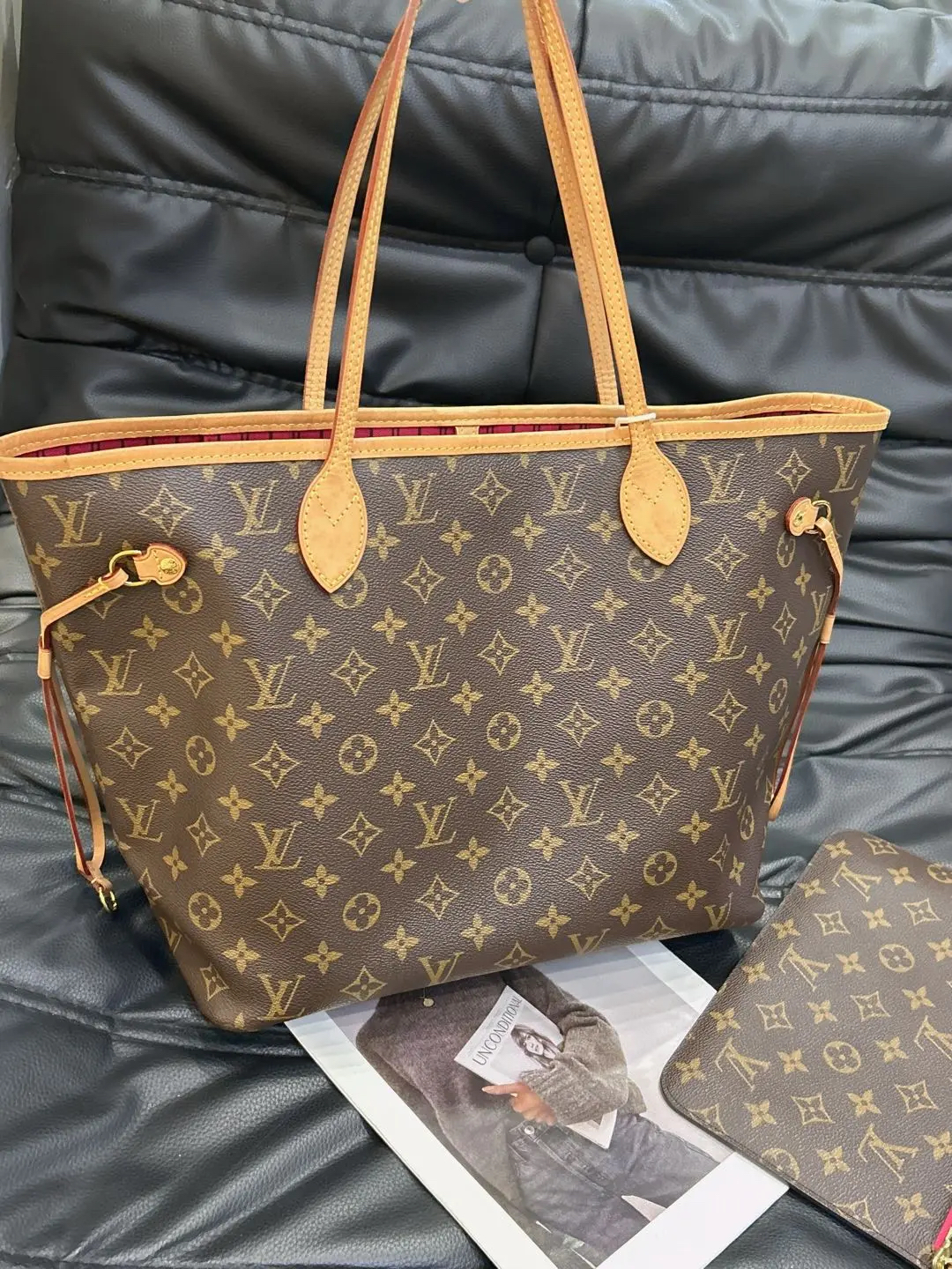 【商品详情】正品二手 LV nf 中号 老花 玫红内衬 单肩包🥞97新 32*29 配件:子袋。植糅革正常使用感。装得下全世界