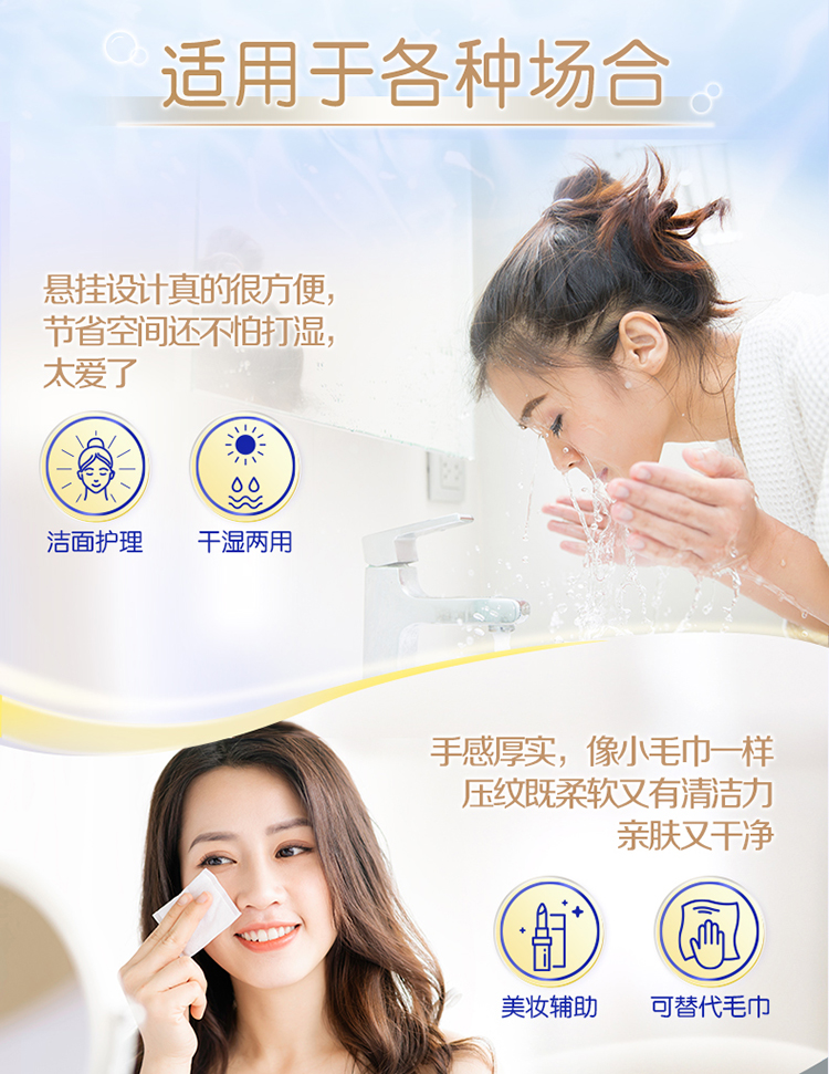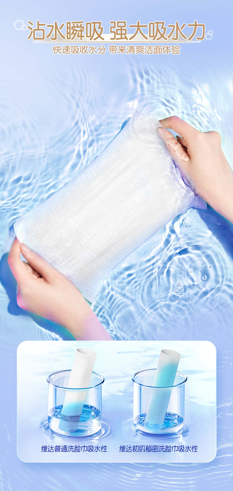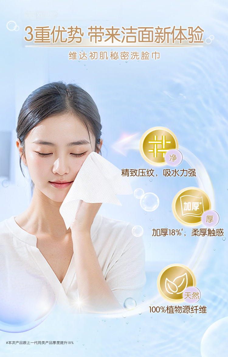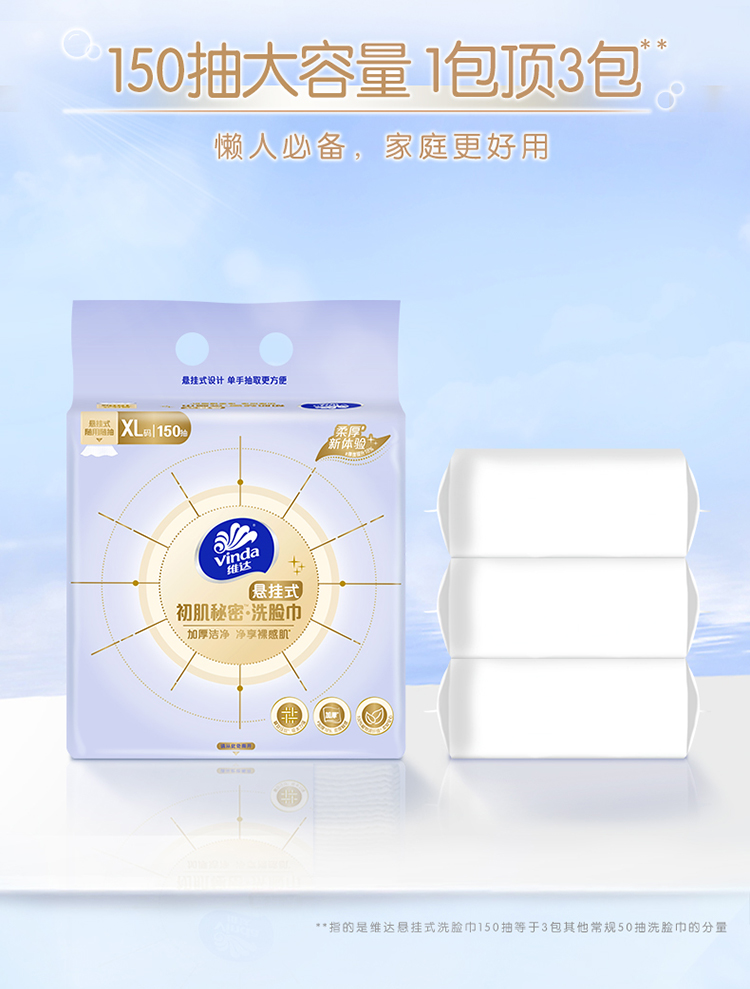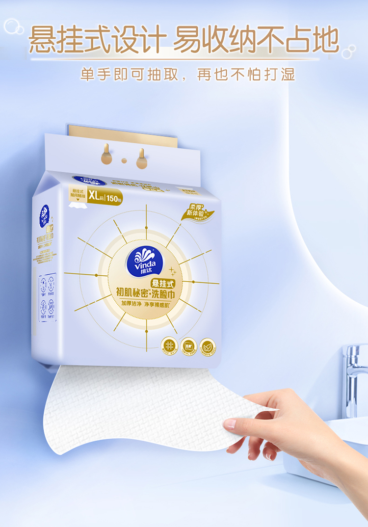 【官方包邮】维达悬挂式洗脸巾XL码150抽/提亲肤洁面