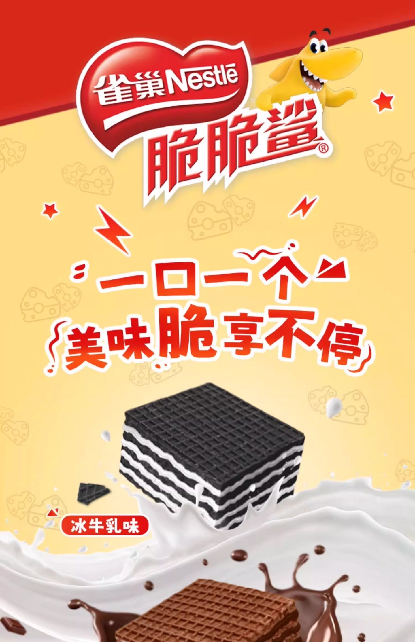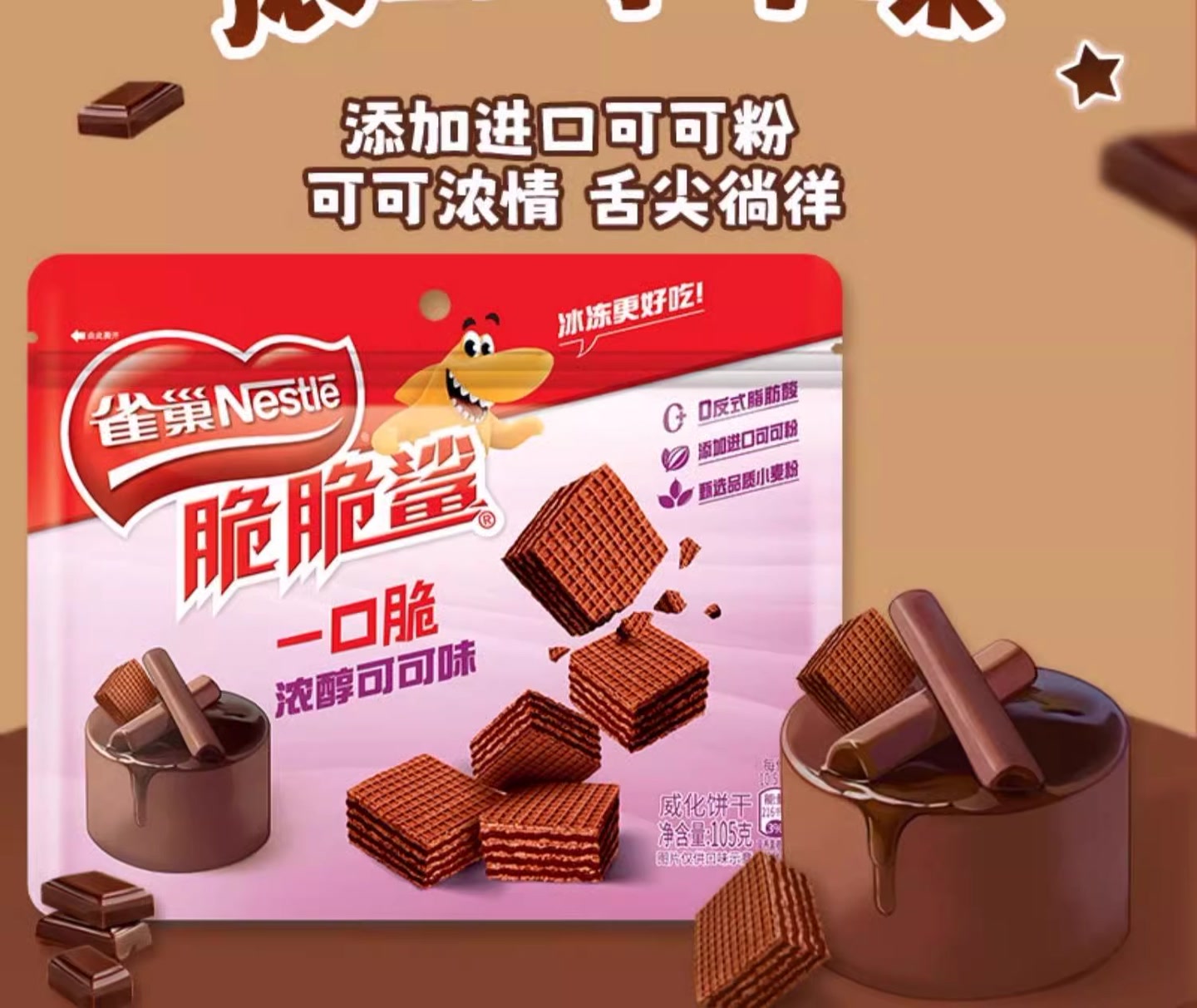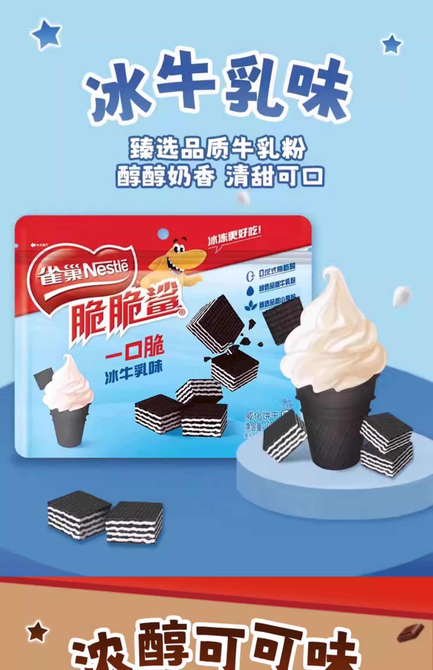 脆脆鲨威化饼干小粒装一口脆45g夹心巧克力芝士冰牛乳味3袋装