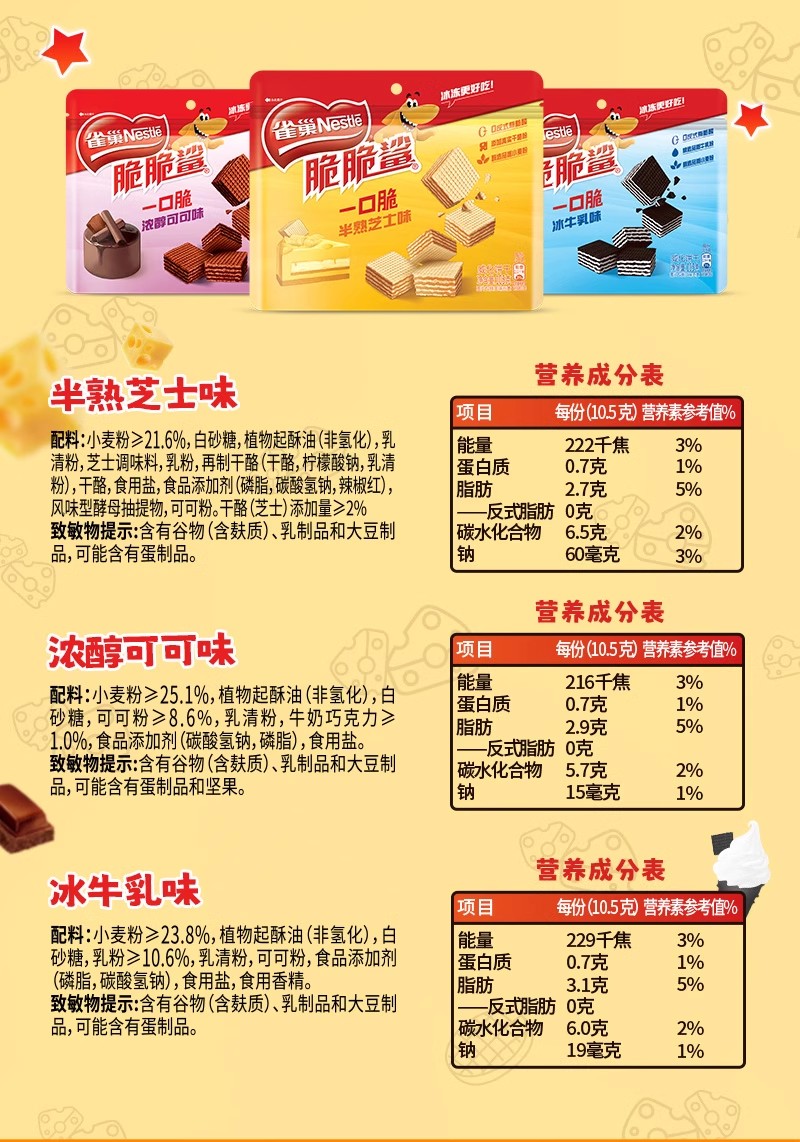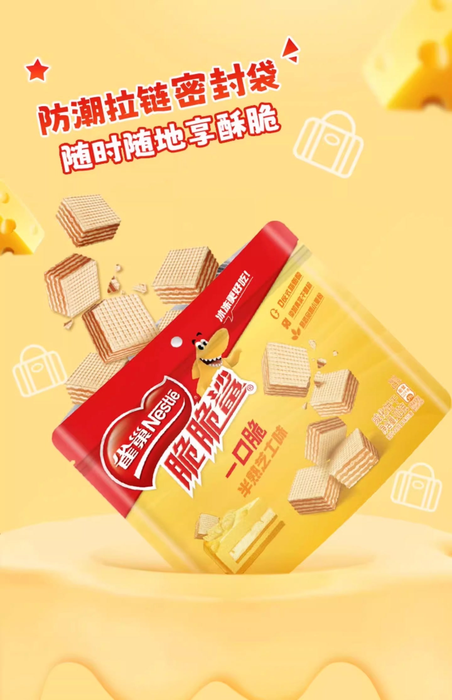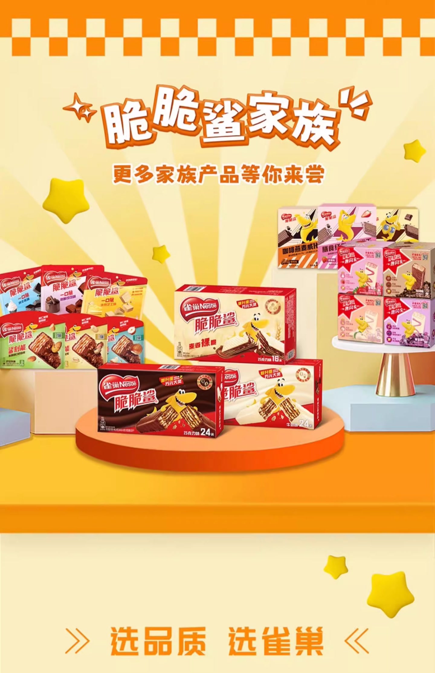 脆脆鲨威化饼干小粒装一口脆45g夹心巧克力芝士冰牛乳味3袋装