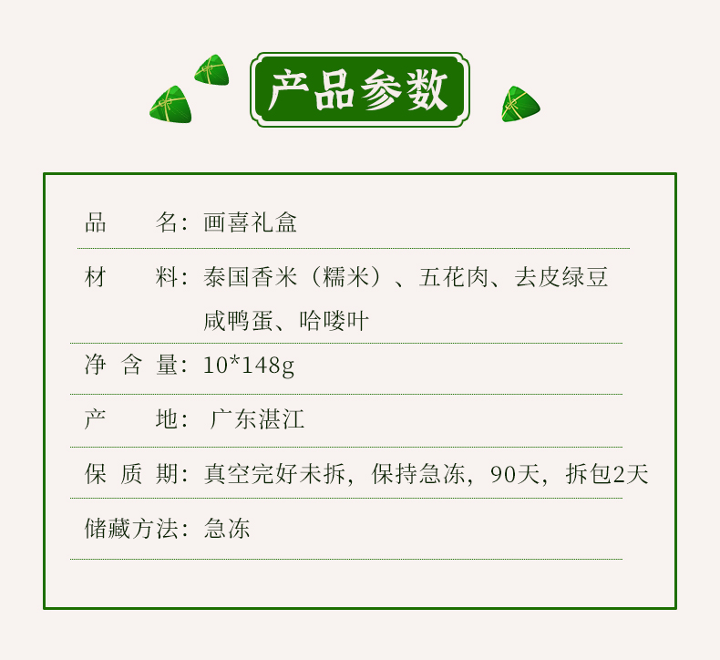 樟树湾酒店画喜鲜肉蛋黄粽礼盒装148g*10个装2024端午节香辣味粽子咸蛋黄大肉粽湛江味鲜粽子散装团购