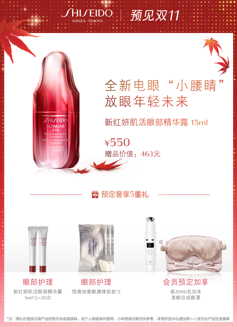 【双11抢先加购】资生堂新红妍肌活眼部精华露15ml 淡化细纹 修护JPY带授权招加盟代理