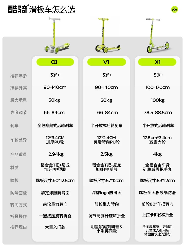 酷骑Q1儿童滑板车3到6岁大童12岁以上男女折叠踏板滑滑溜溜滑轮车