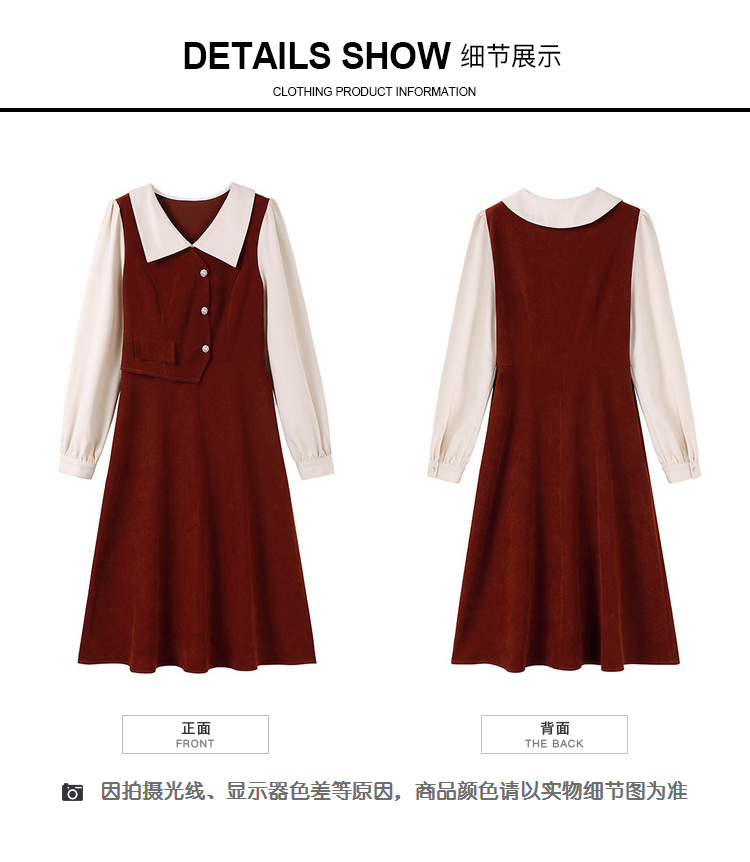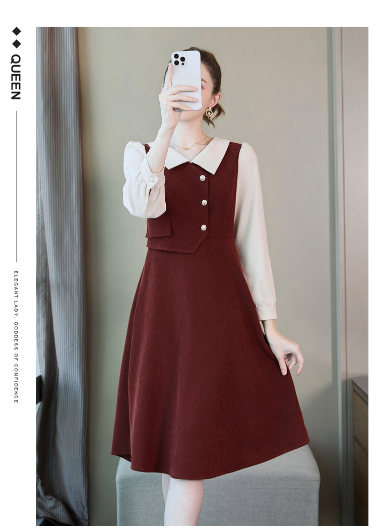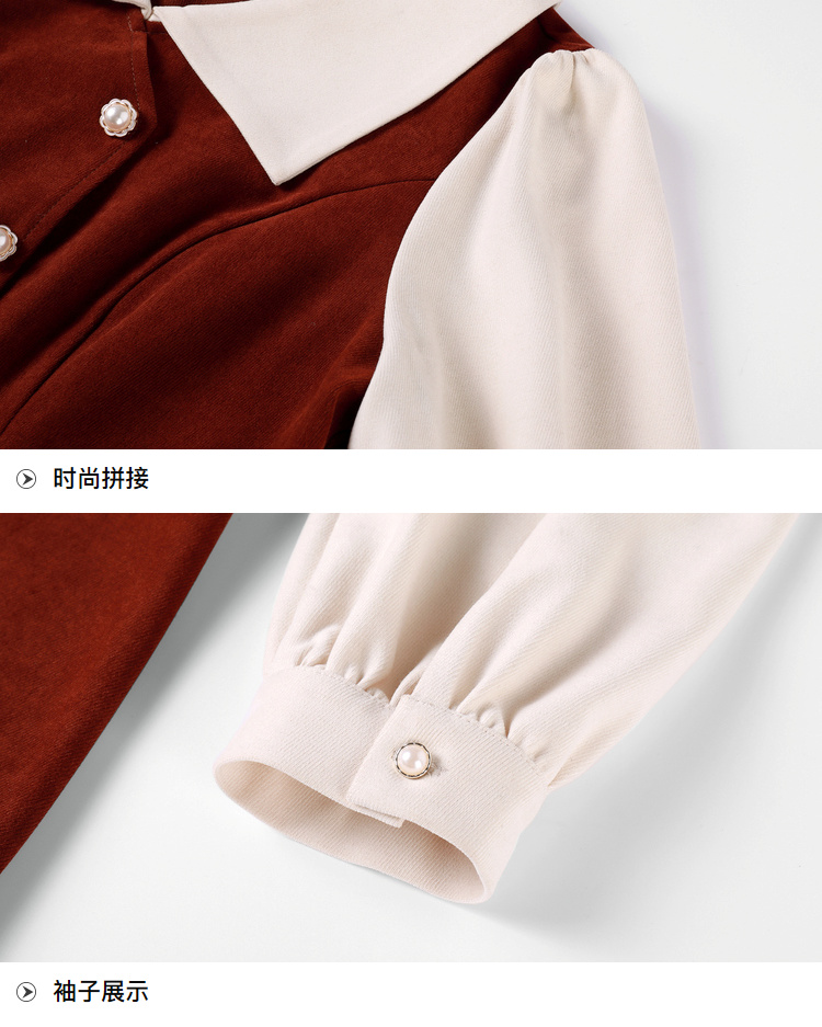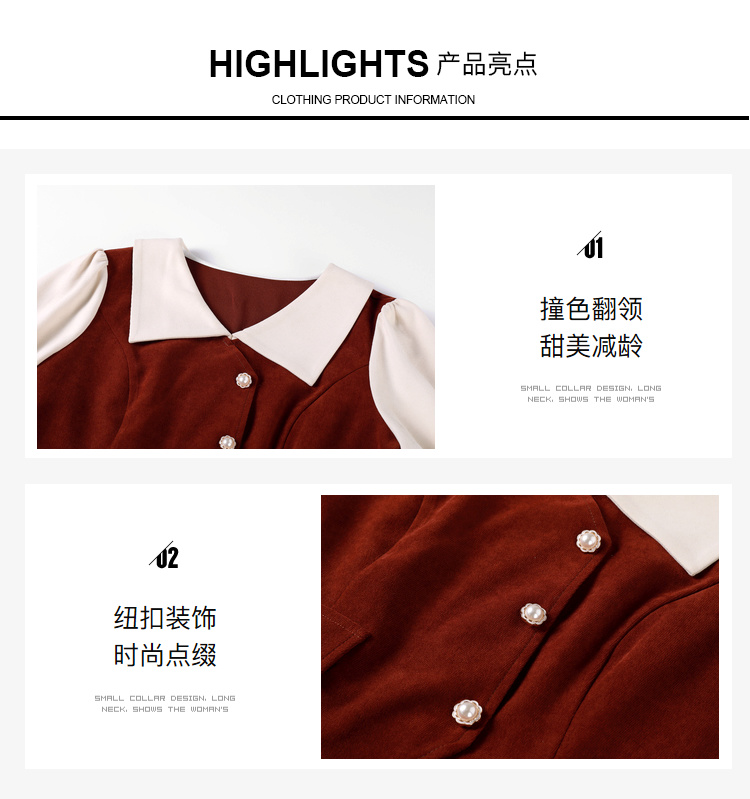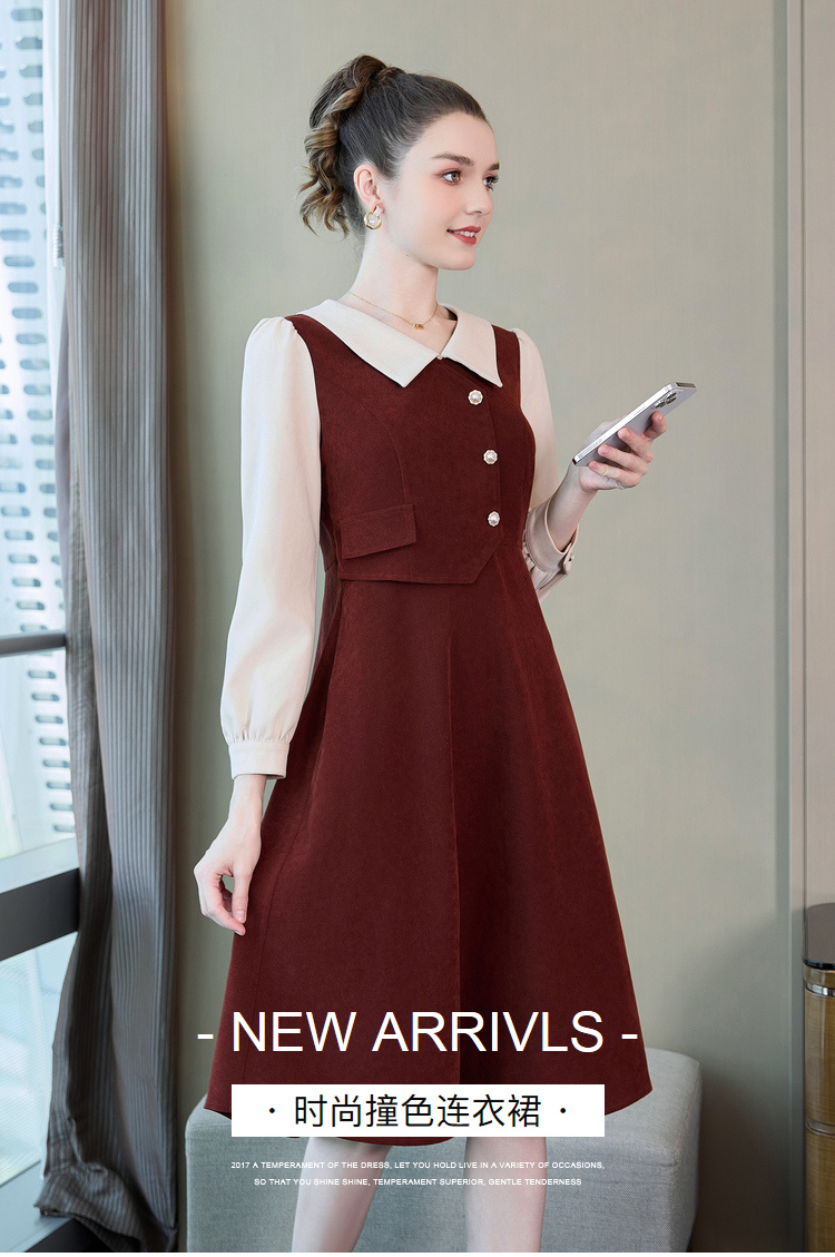 奢姿2024年秋季新冬大码女装翻领撞色裙子胖mm复古钉珠时尚连衣裙9934891135