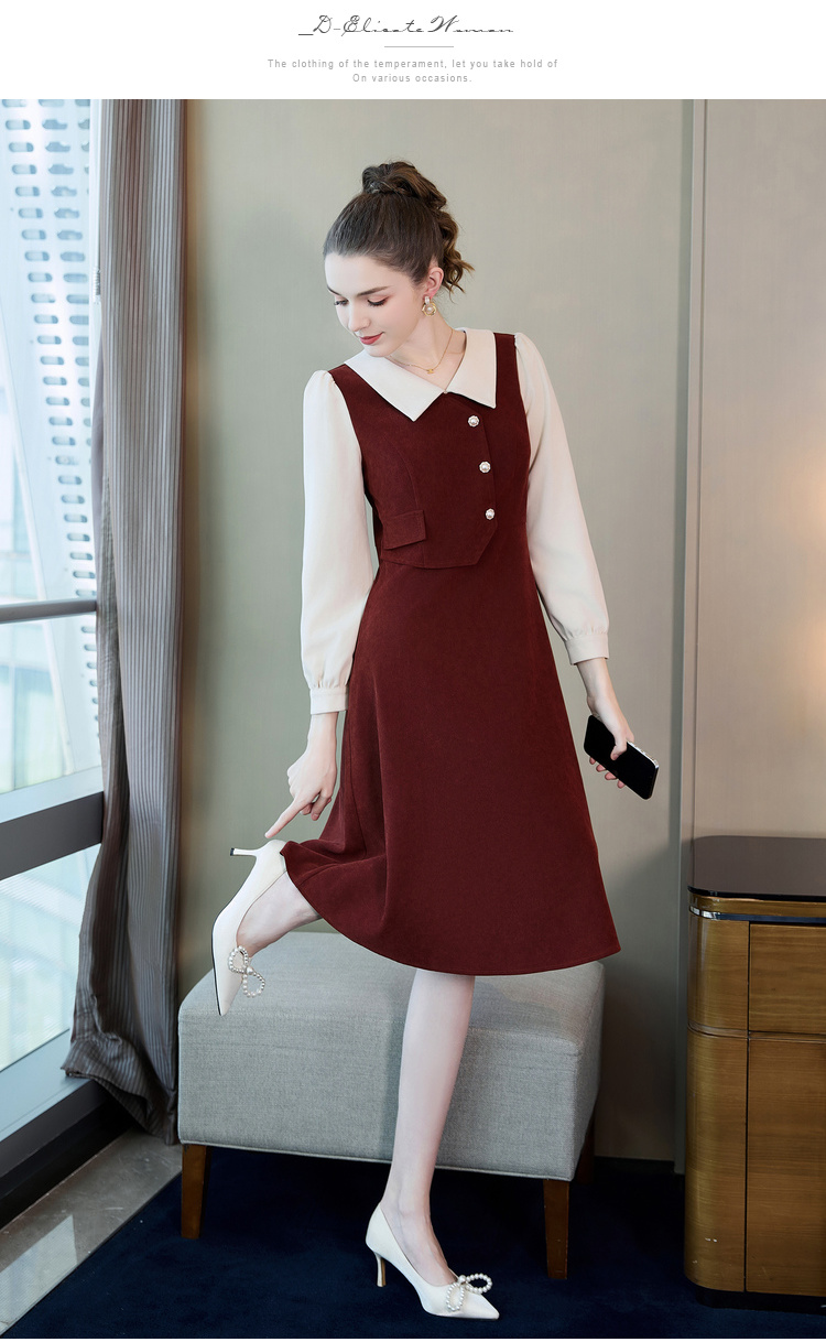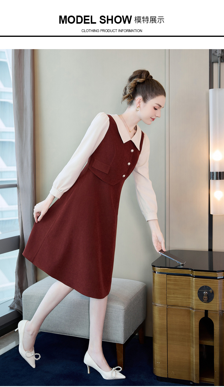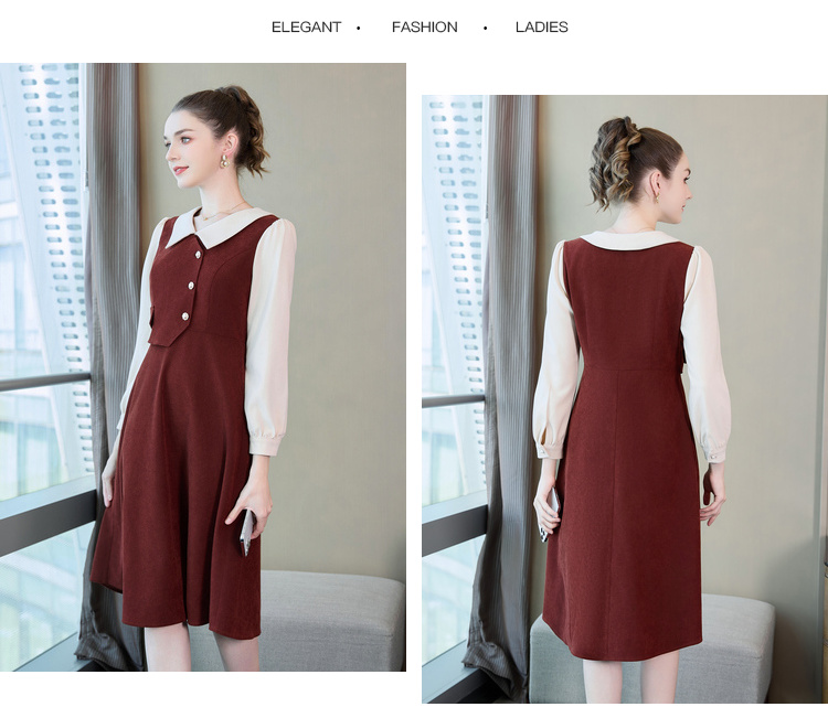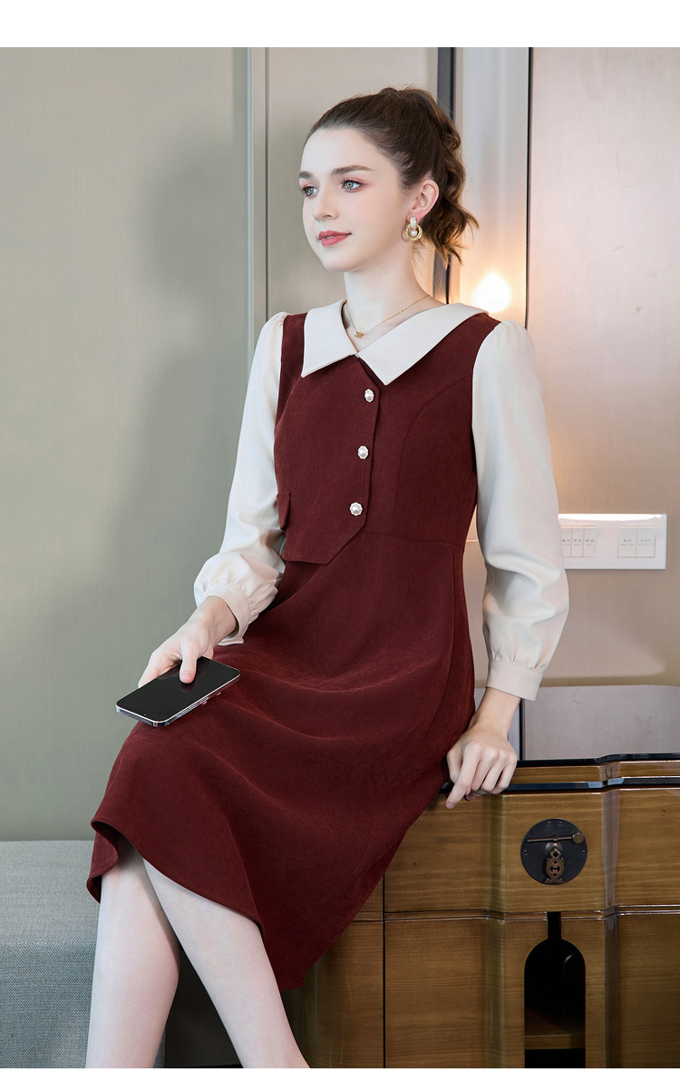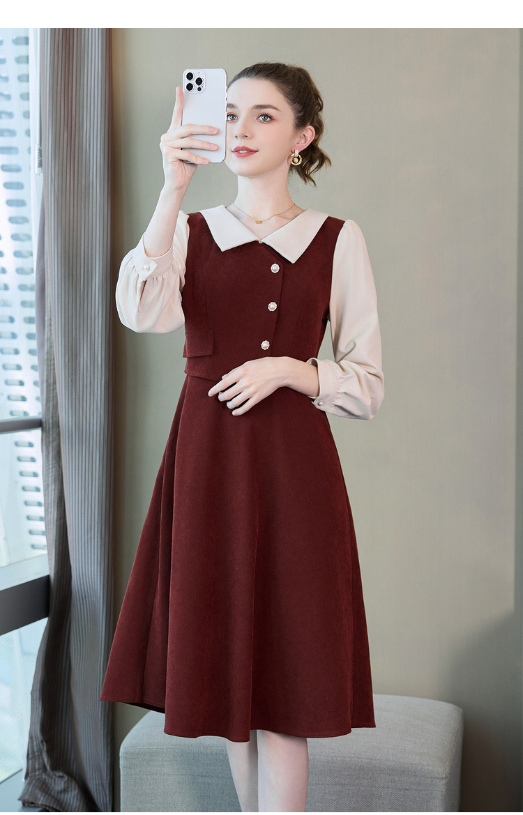 奢姿2024年秋季新冬大码女装翻领撞色裙子胖mm复古钉珠时尚连衣裙9934891135