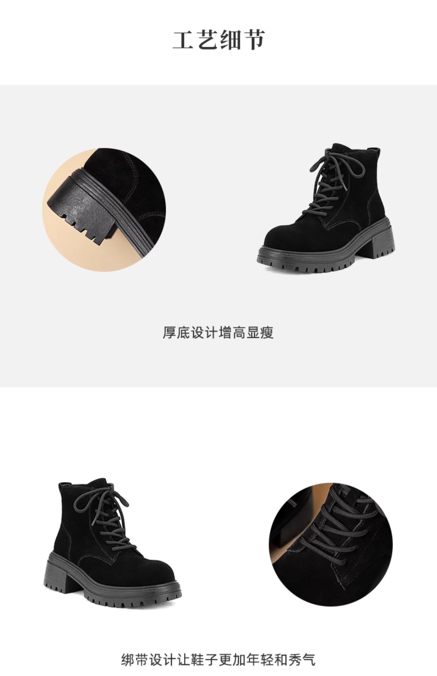 西村名物2024年秋冬新款英伦风*短靴厚底时尚百搭马丁靴女T24DS47841