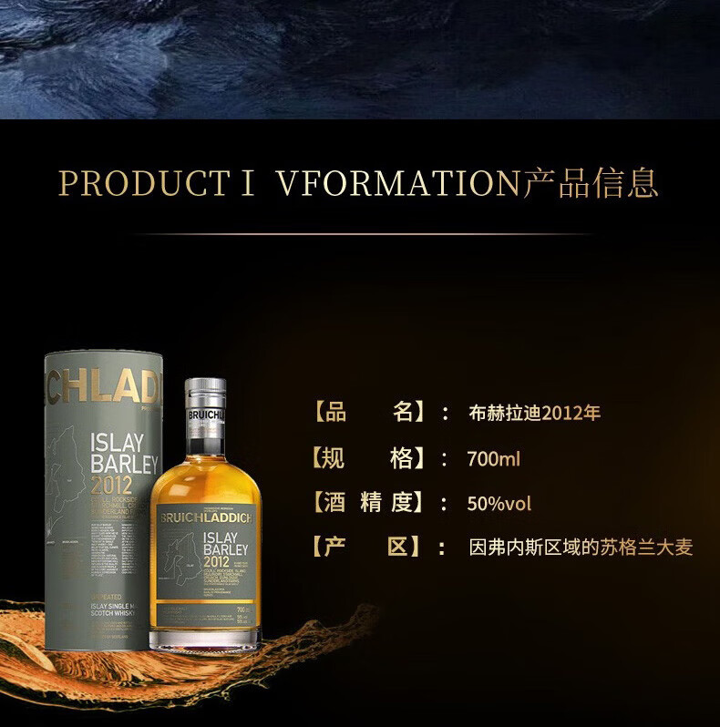 【有税版】布赫拉迪波夏艾雷岛大麦2012年单一麦芽苏格兰威士忌 700ml 烟熏味特质