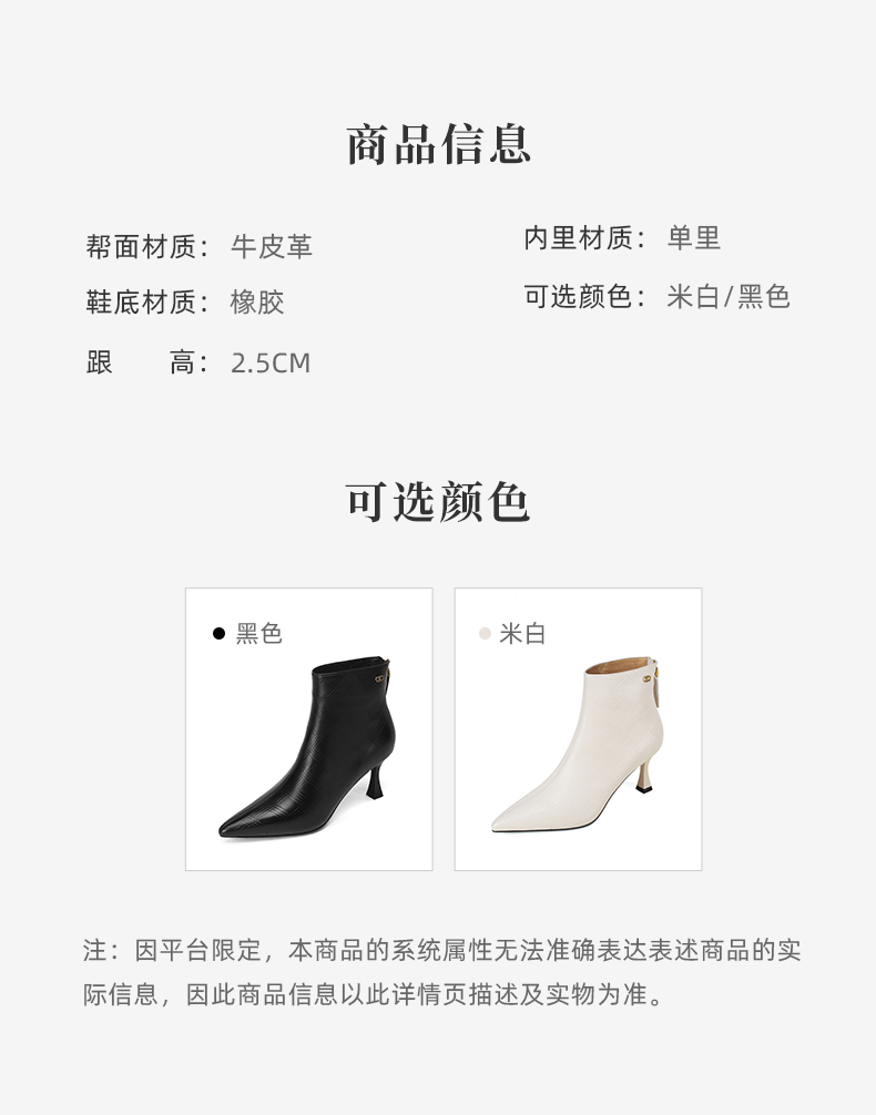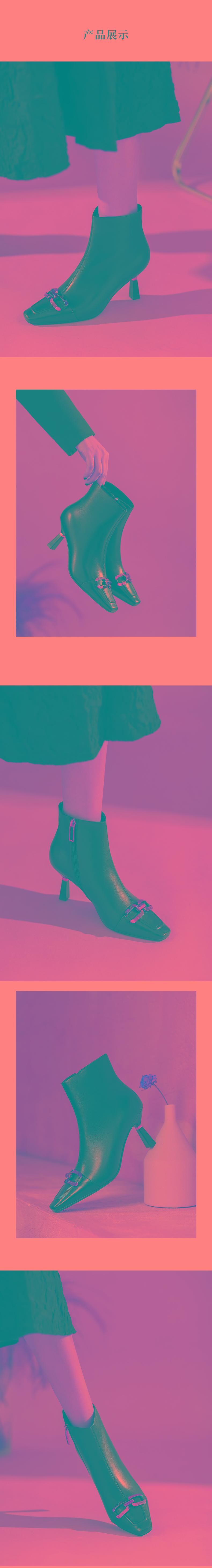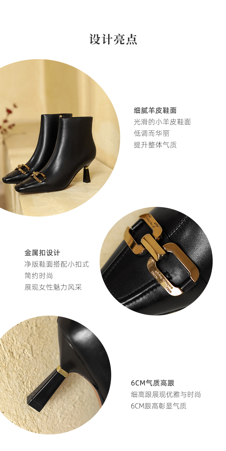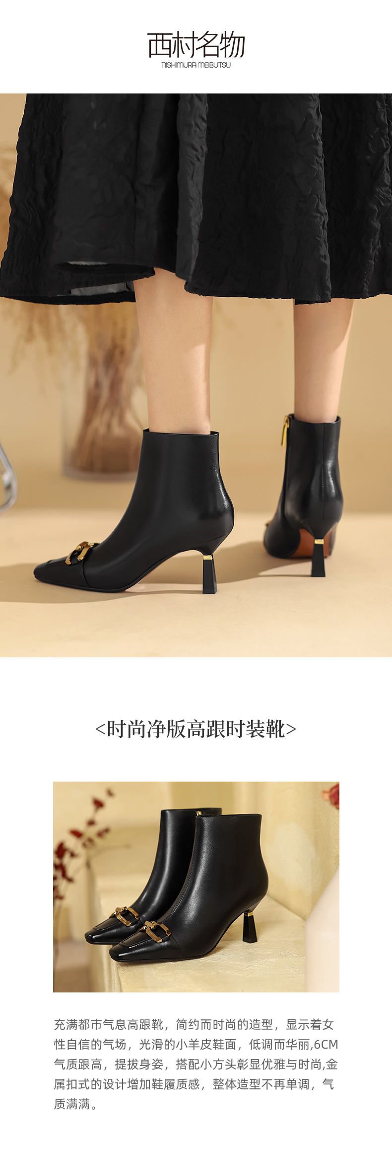 西村名物2021冬季新款方头短靴*雅及踝靴侧拉链细高跟靴T21DS44981