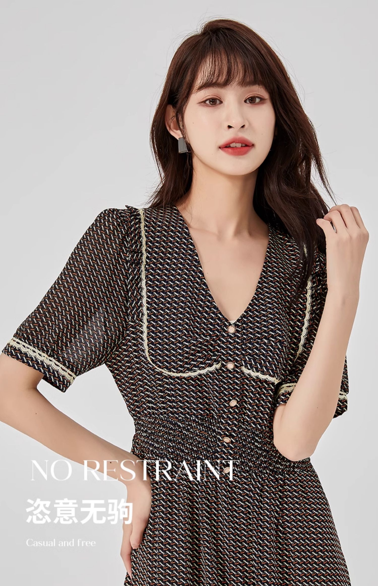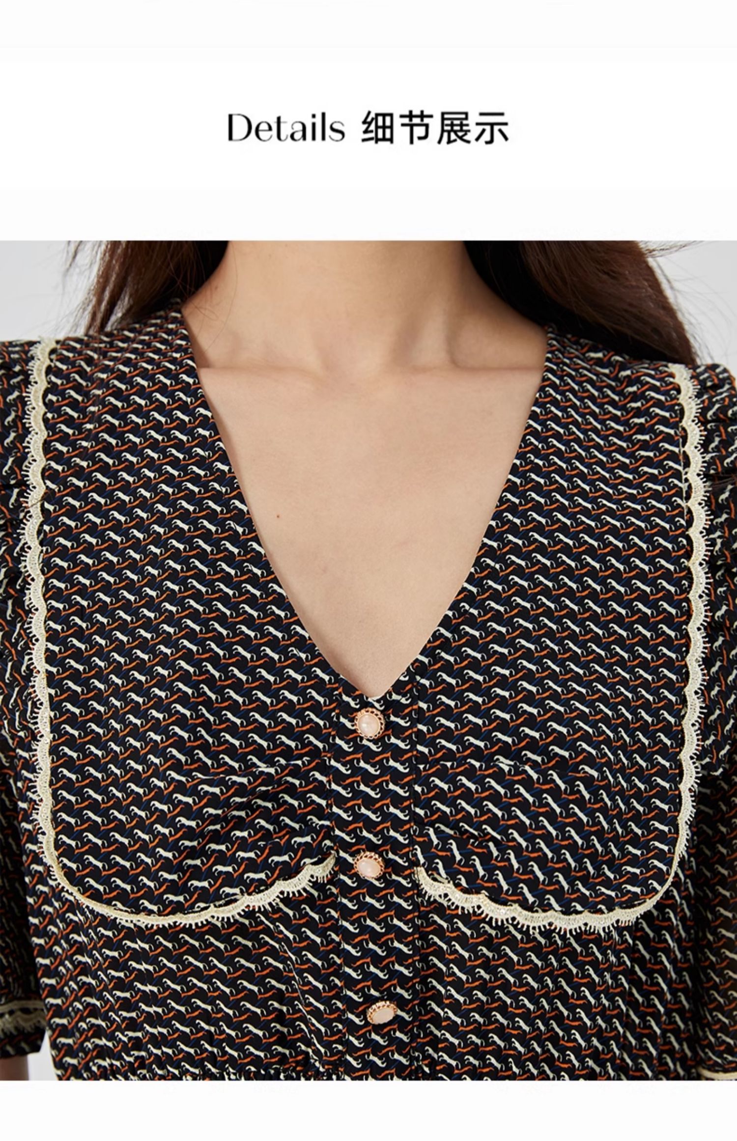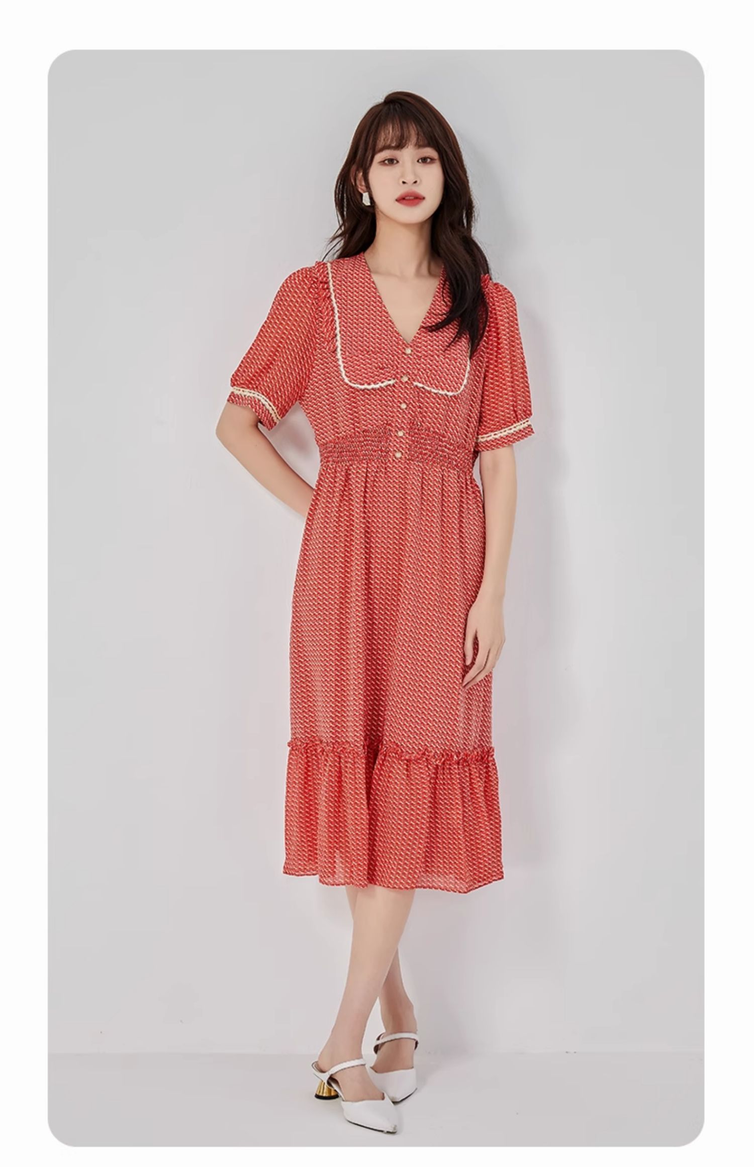 oldcolour2023夏季新款法式复古浪漫娃娃领波点连衣裙GO21101772