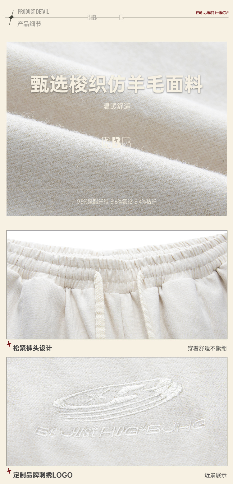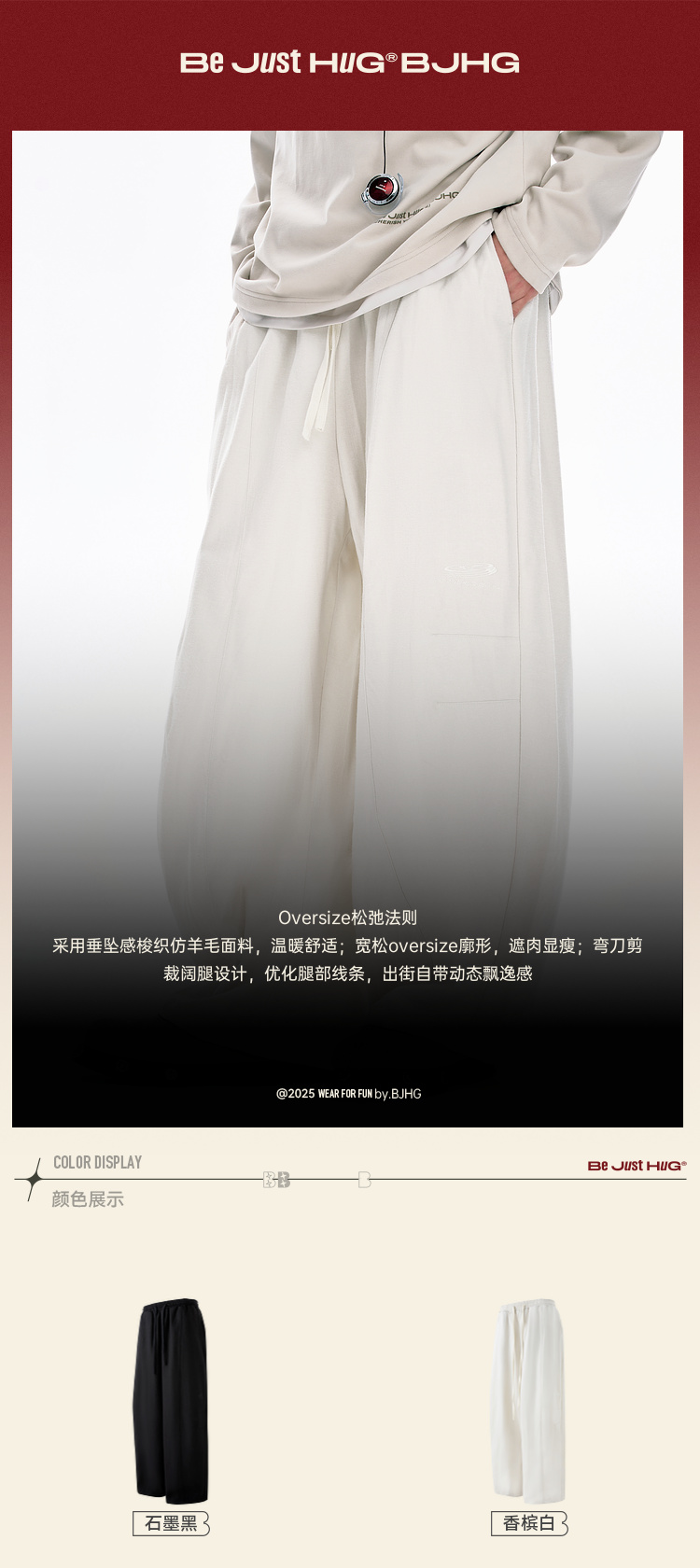 BJHG不计后果仿羊毛弯刀休闲裤子男款秋季2025新款直筒宽松运动裤