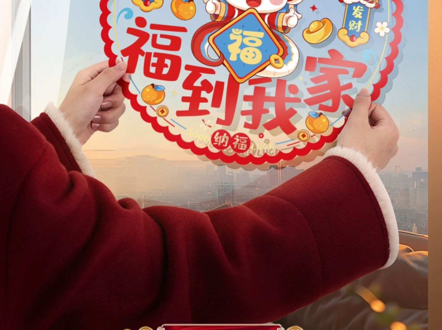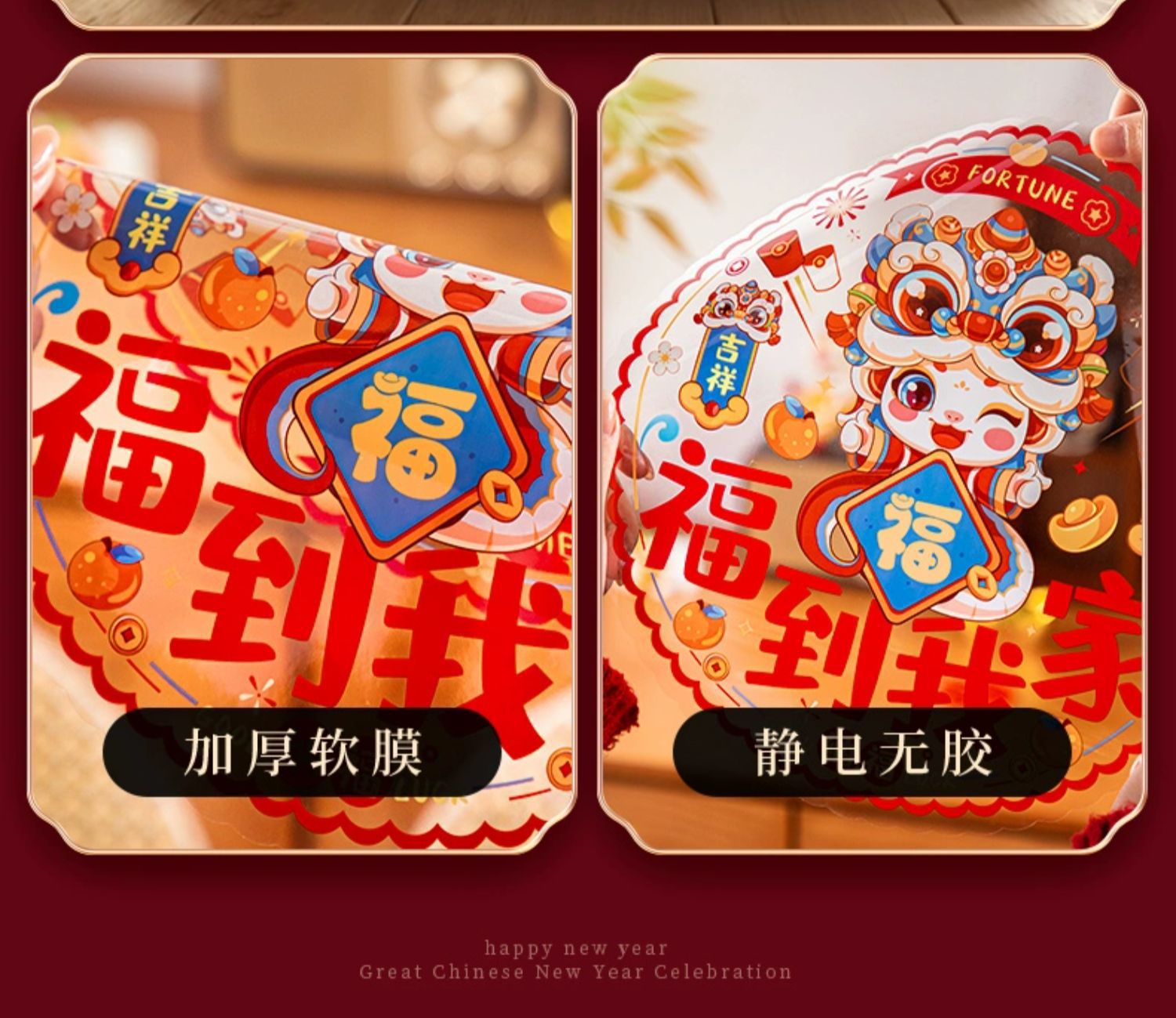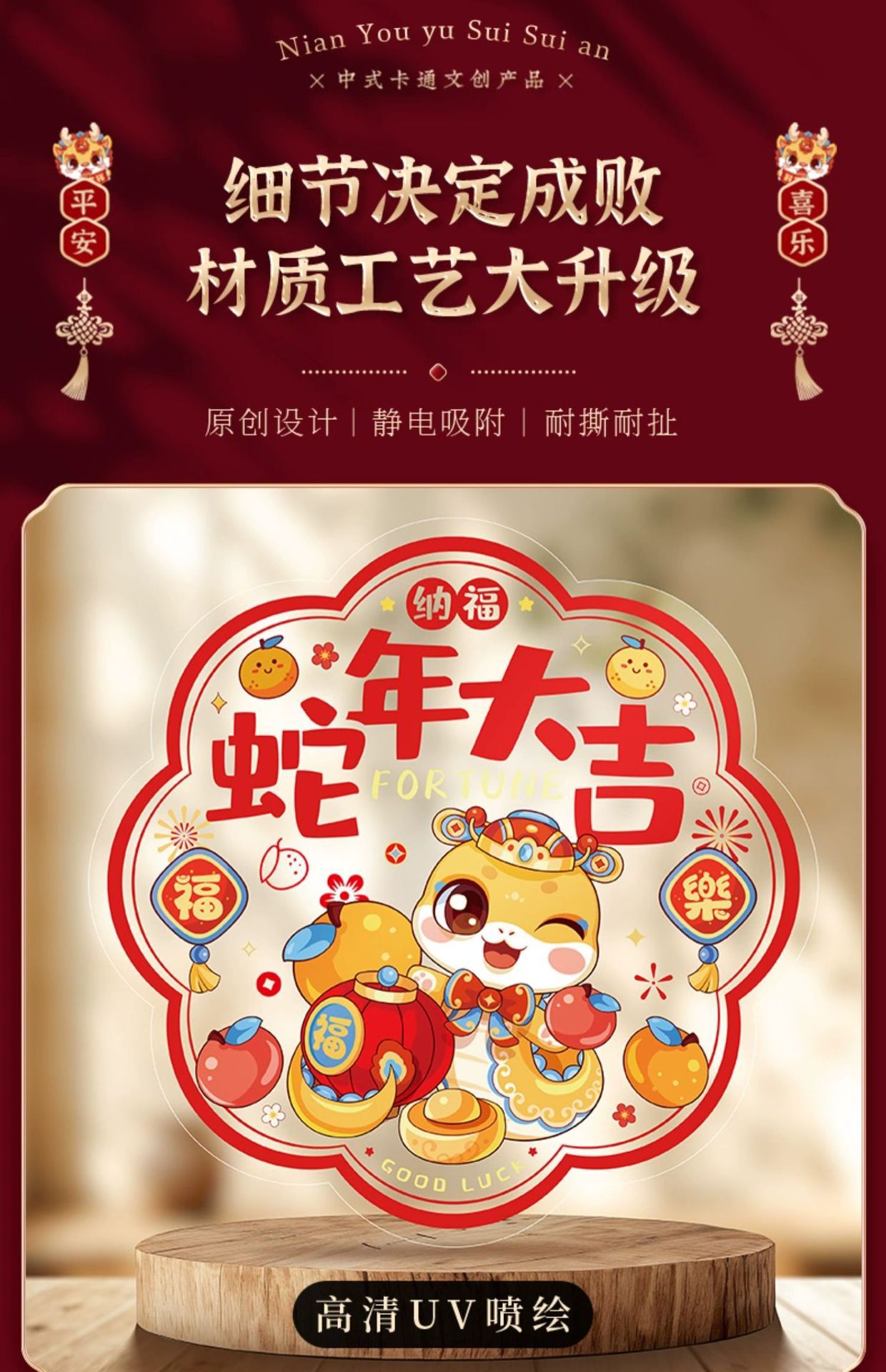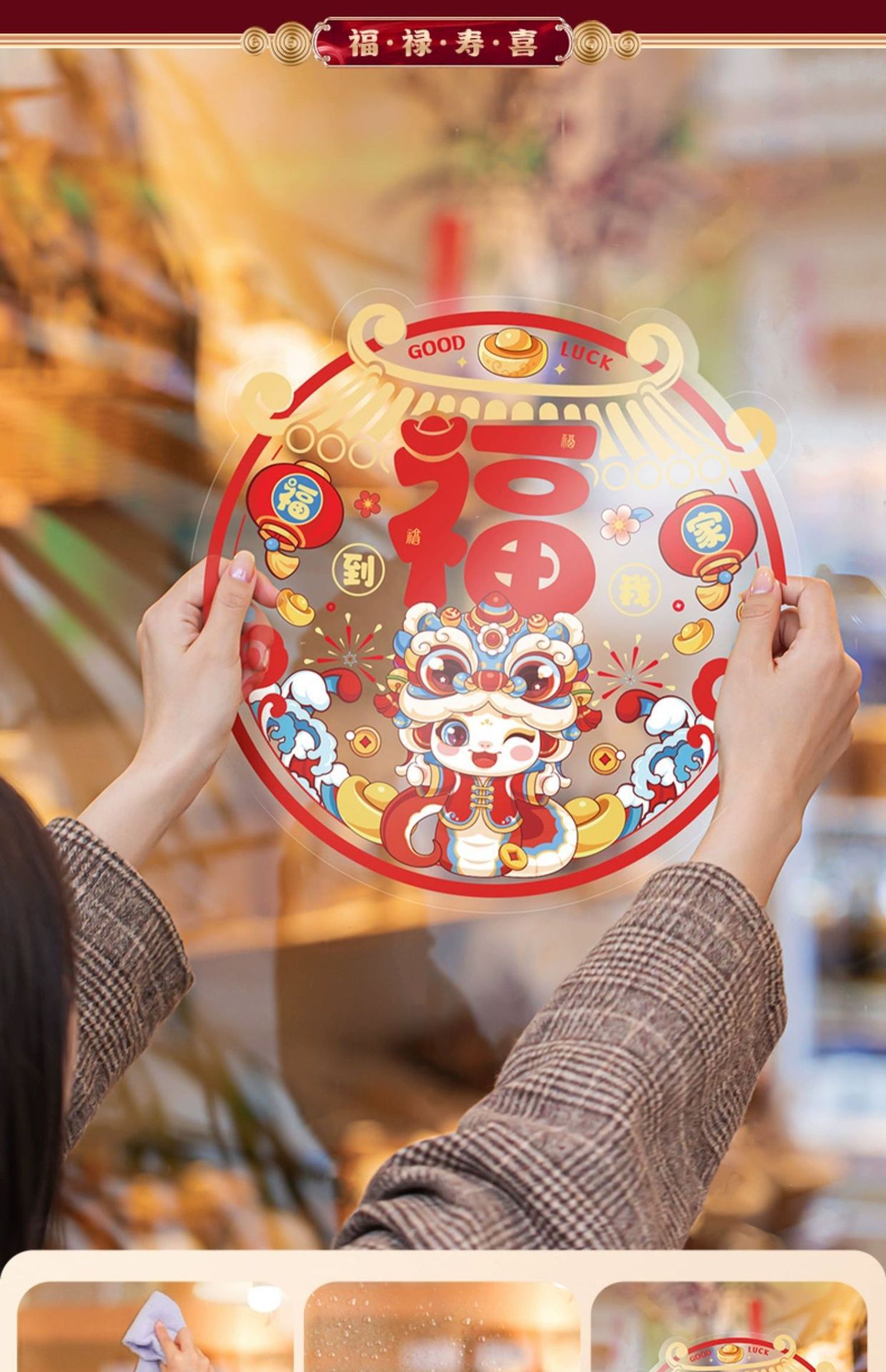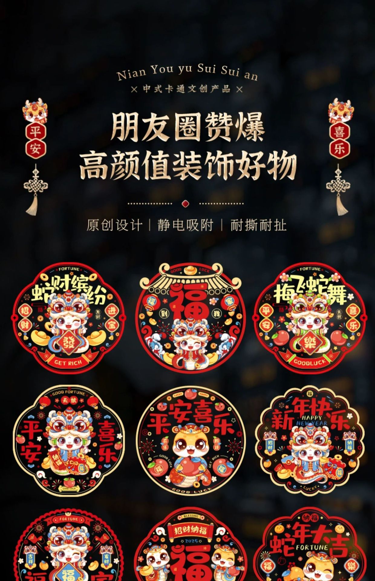 【拍1发12!2025蛇年厚款双面静电窗花】春节静电贴福字玻璃窗贴 不伤玻璃 可重复使用 新年剪纸生肖 春联大礼包