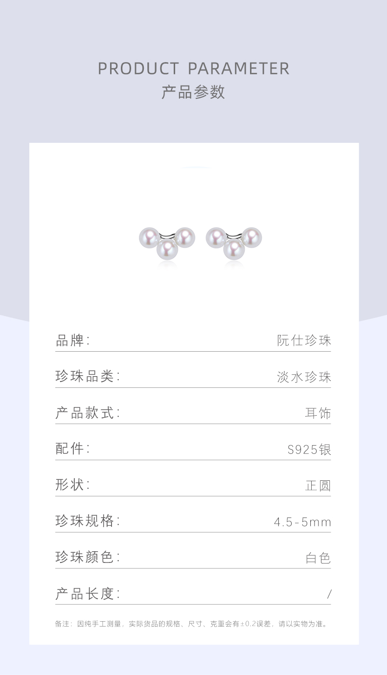 阮仕微笑系列S925银淡水珍珠耳饰4-4.5MM 正圆 无暇 极强光