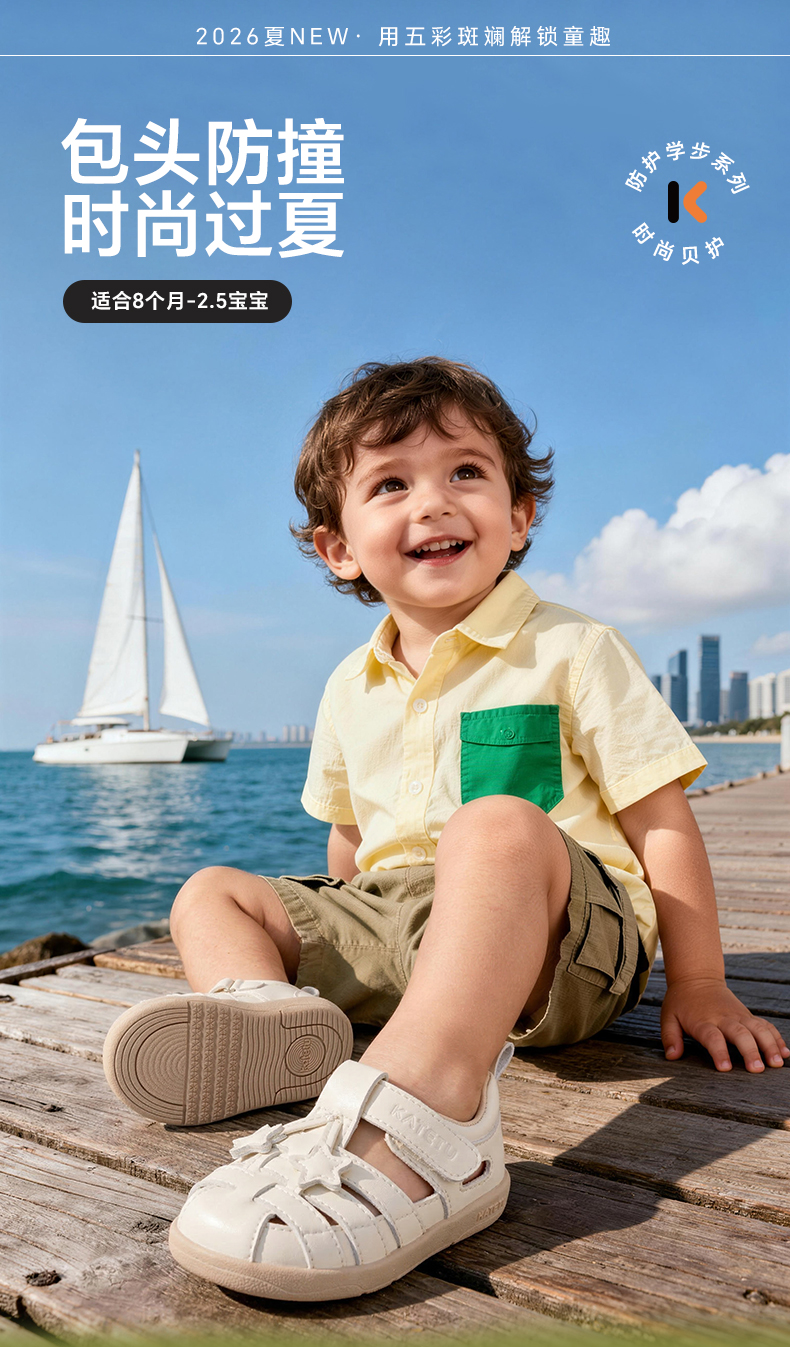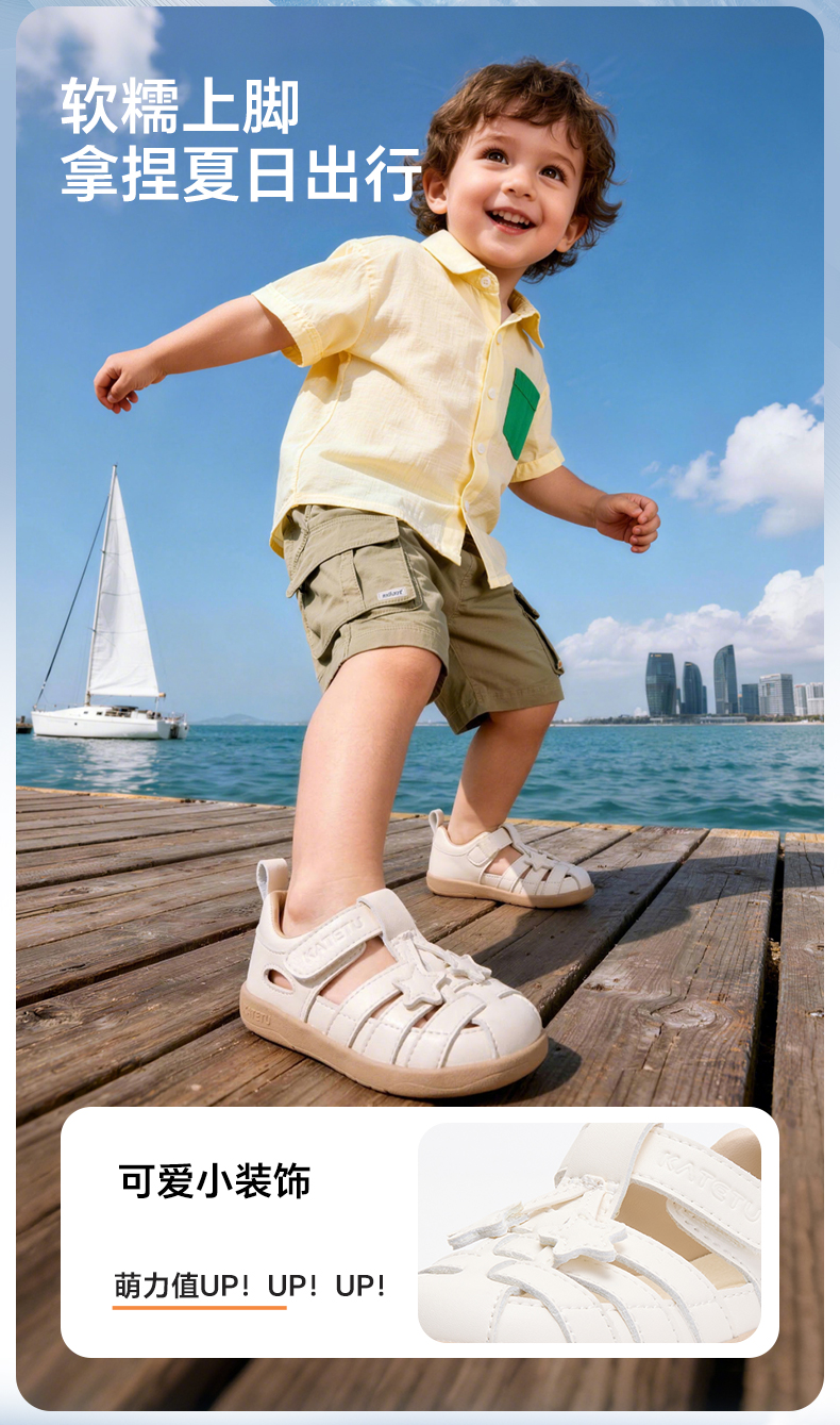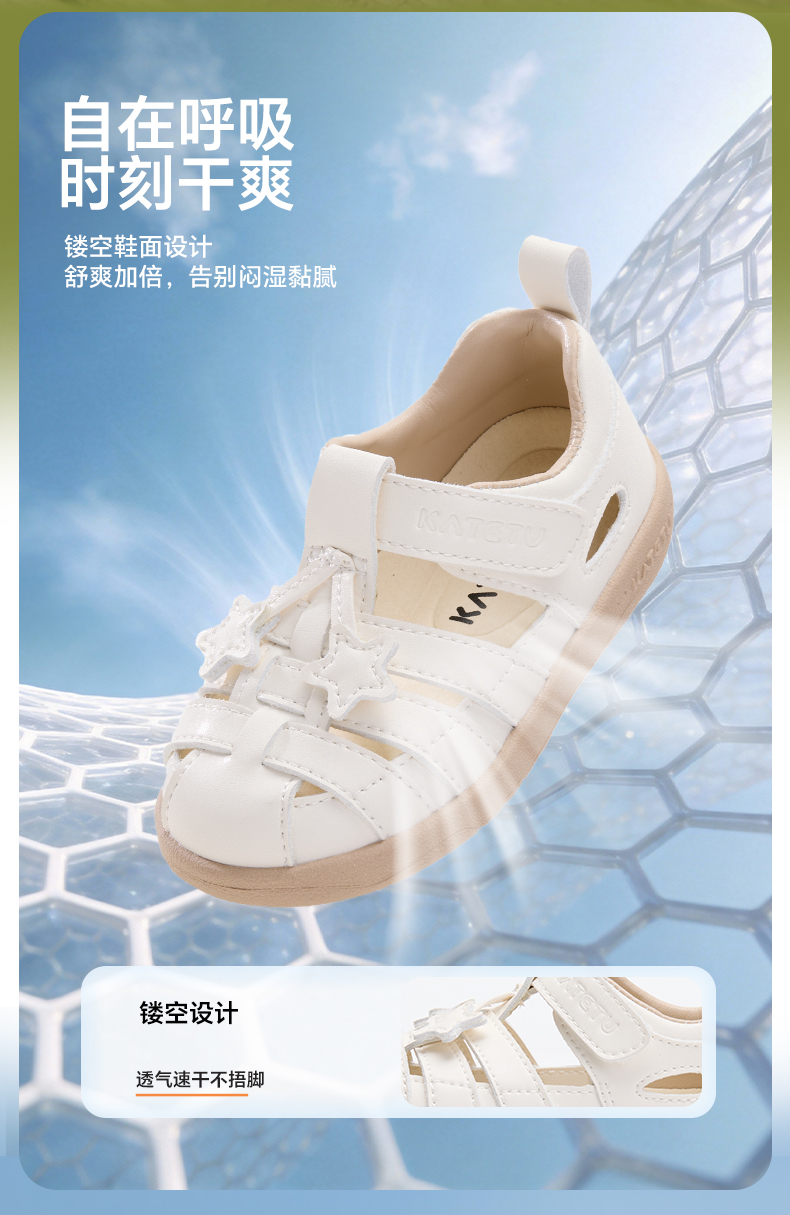 卡特兔儿童凉鞋男童2026年夏季新品小白鞋防滑耐磨包头女童凉鞋
