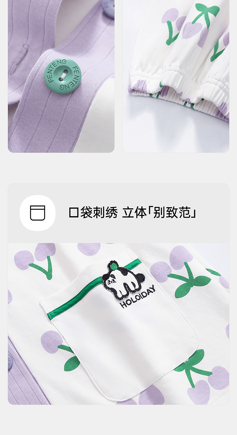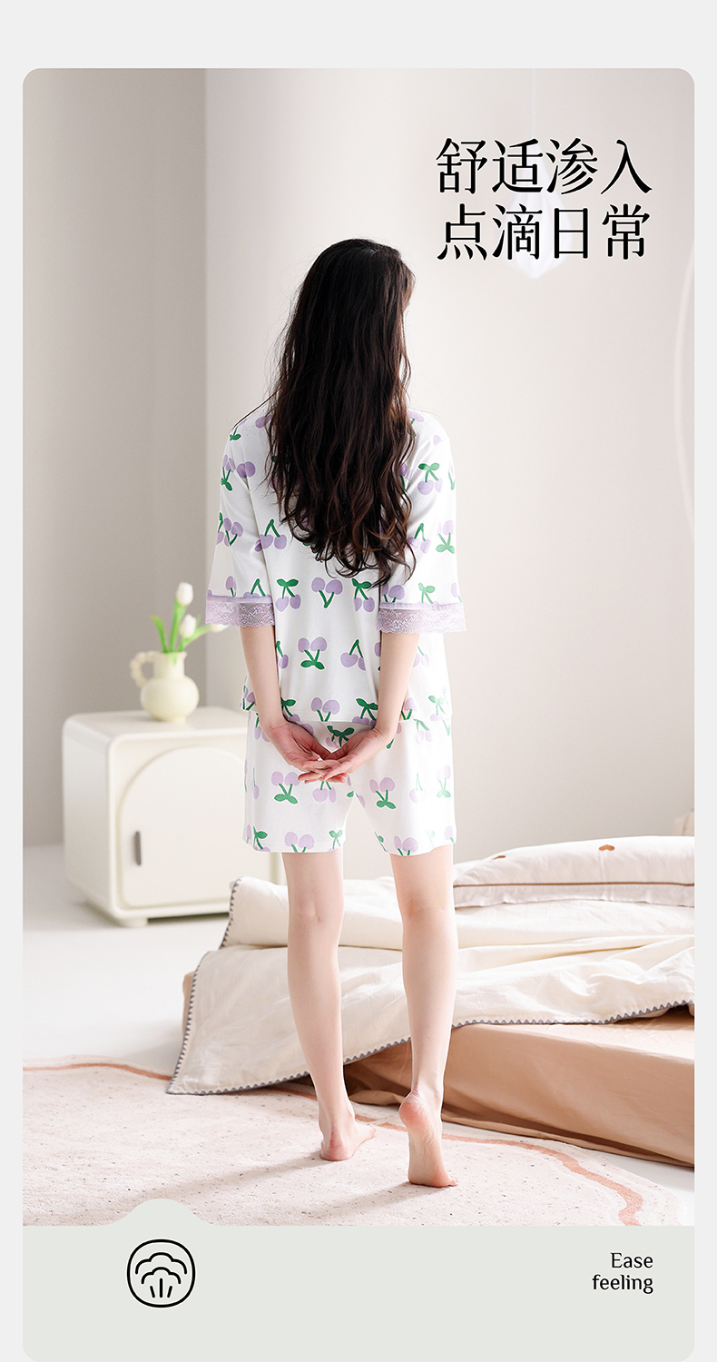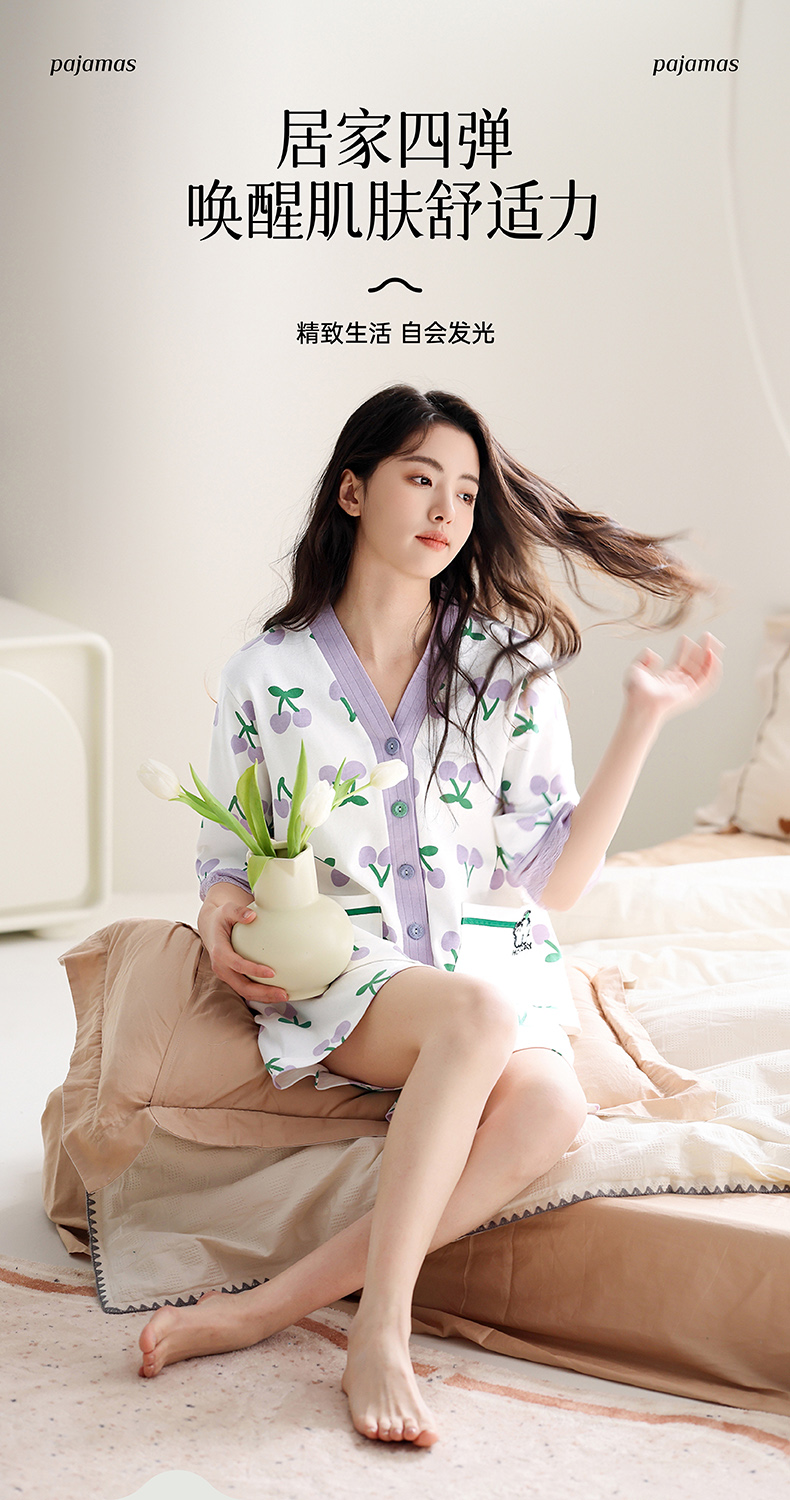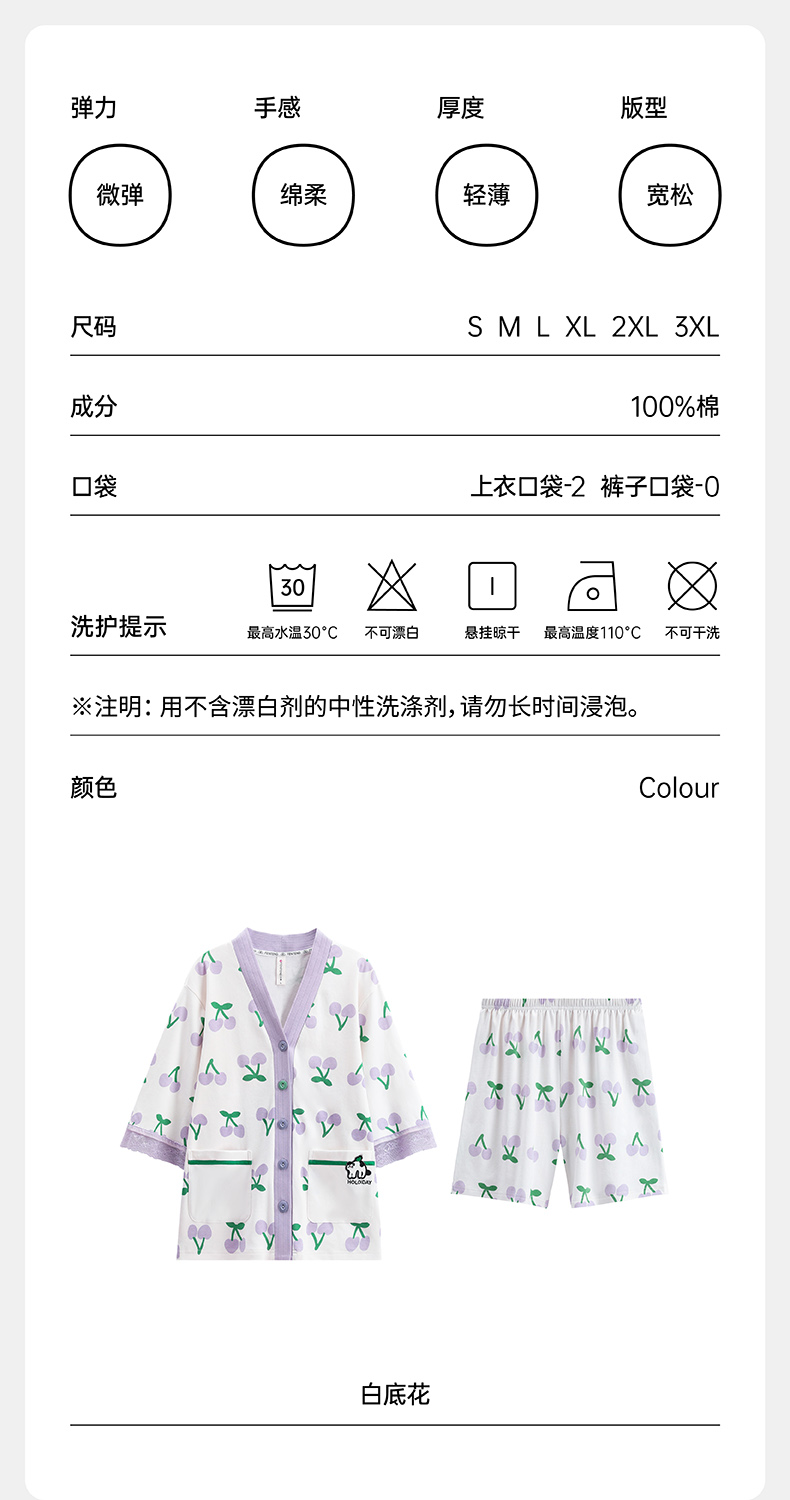 芬腾夏季100%纯棉薄款V领开衫短袖短裤套装 A-4537