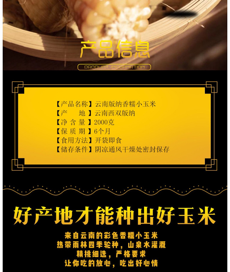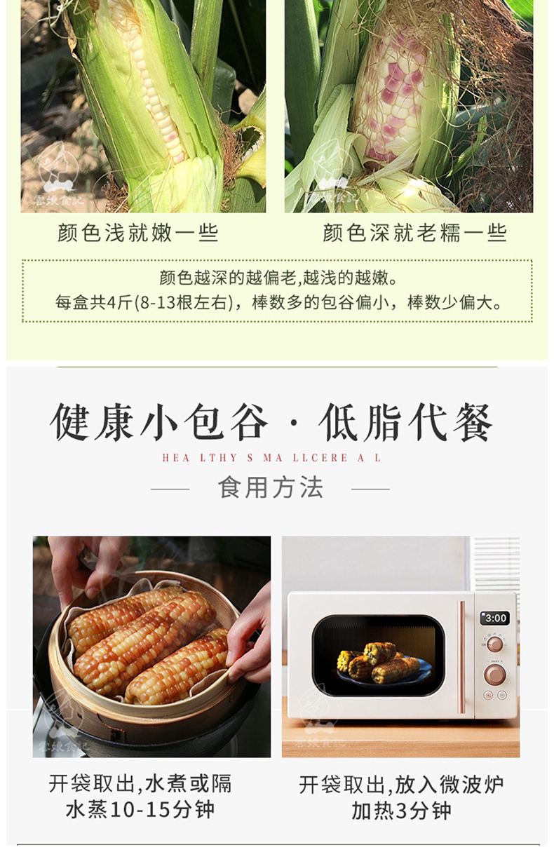 【品名/规格】 【逐南味】版纳香糯小玉米 (4斤礼盒装)( 11-13根左右,重量为准,个数,大小不作为售后标准)