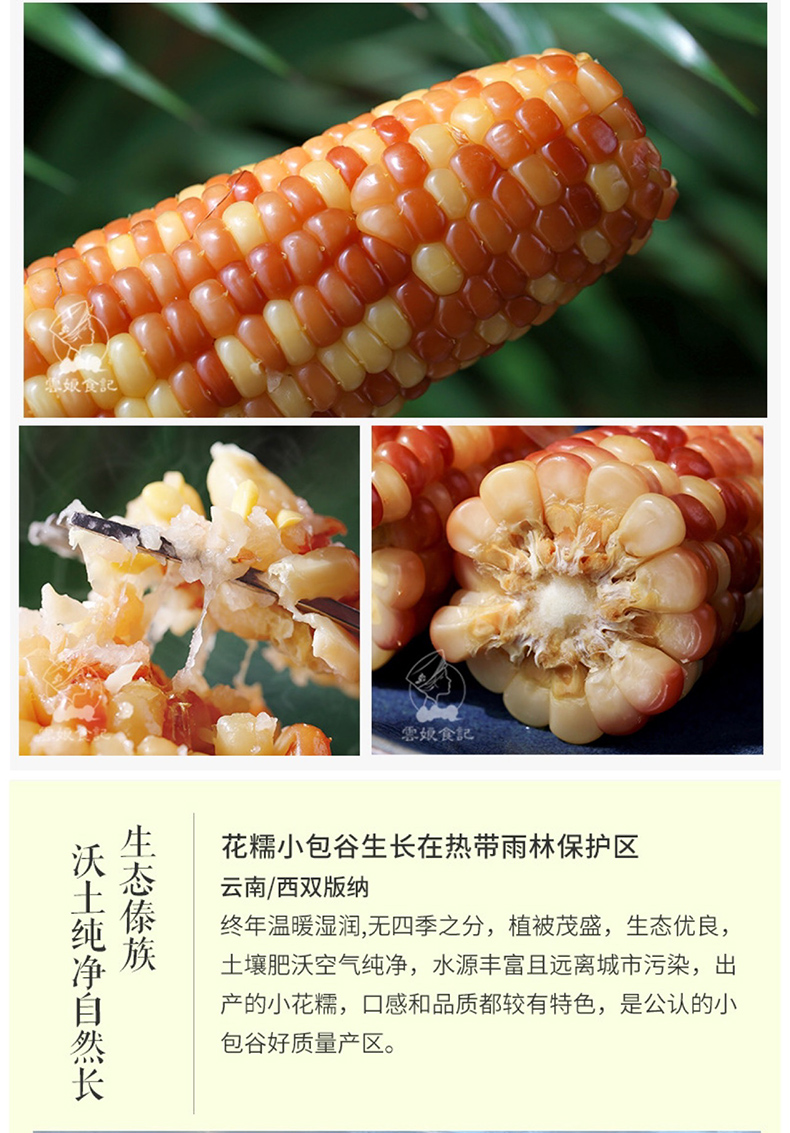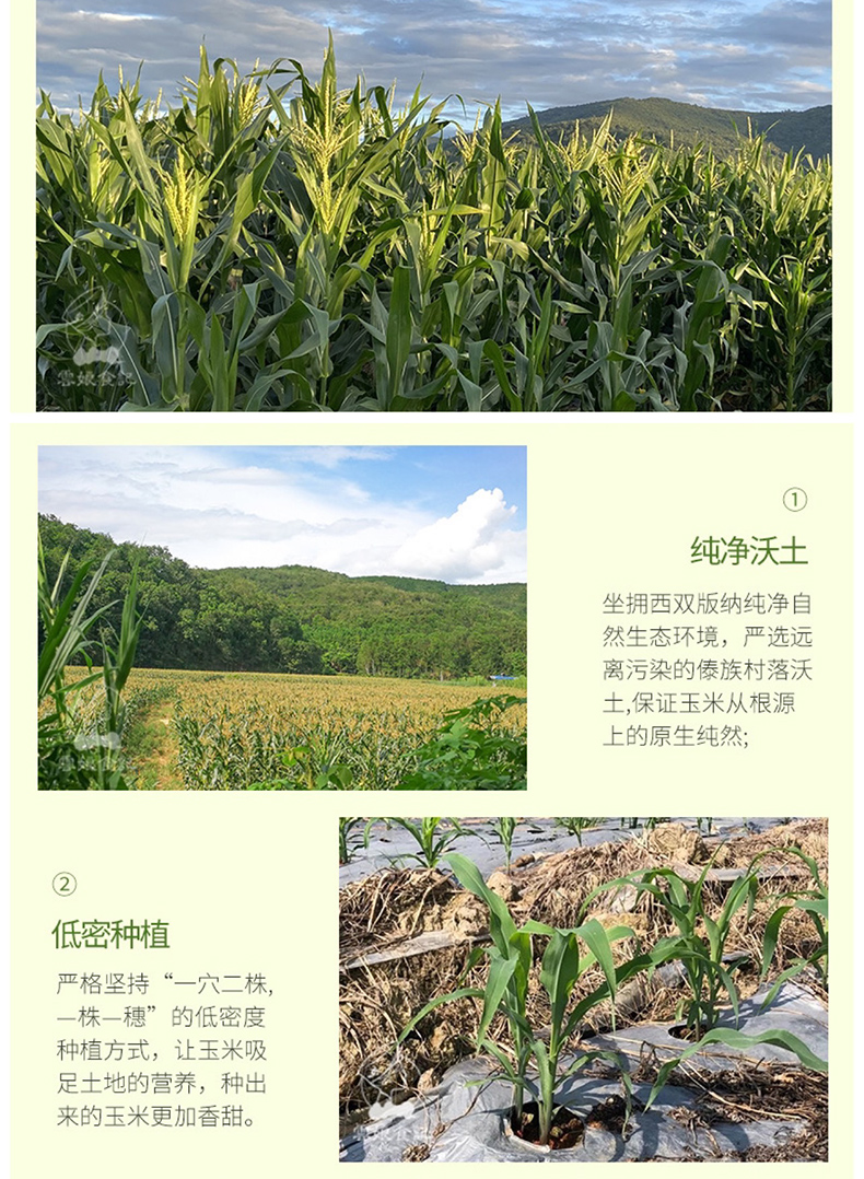 云南西双版纳,独特的热带雨林气候,提供了小玉米四季生长的适合环境。天天新鲜,一口吃出彩云之南的香甜。