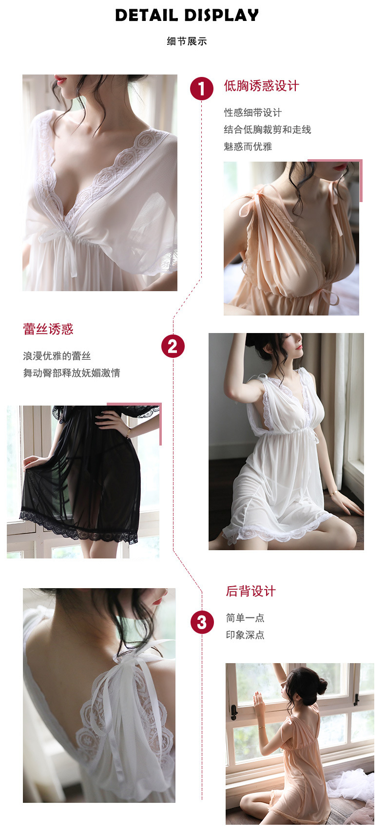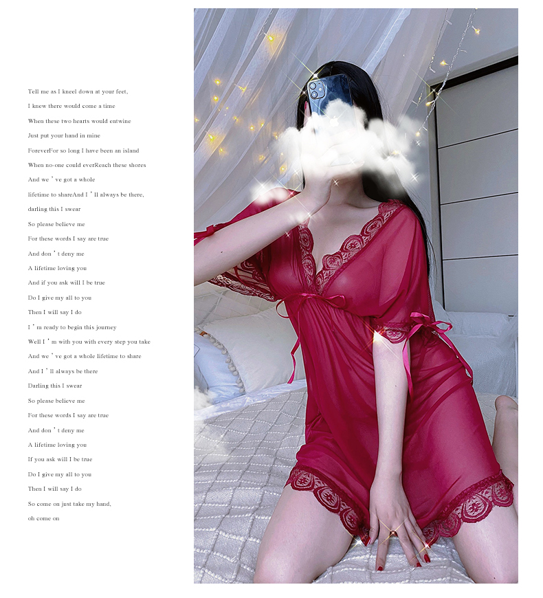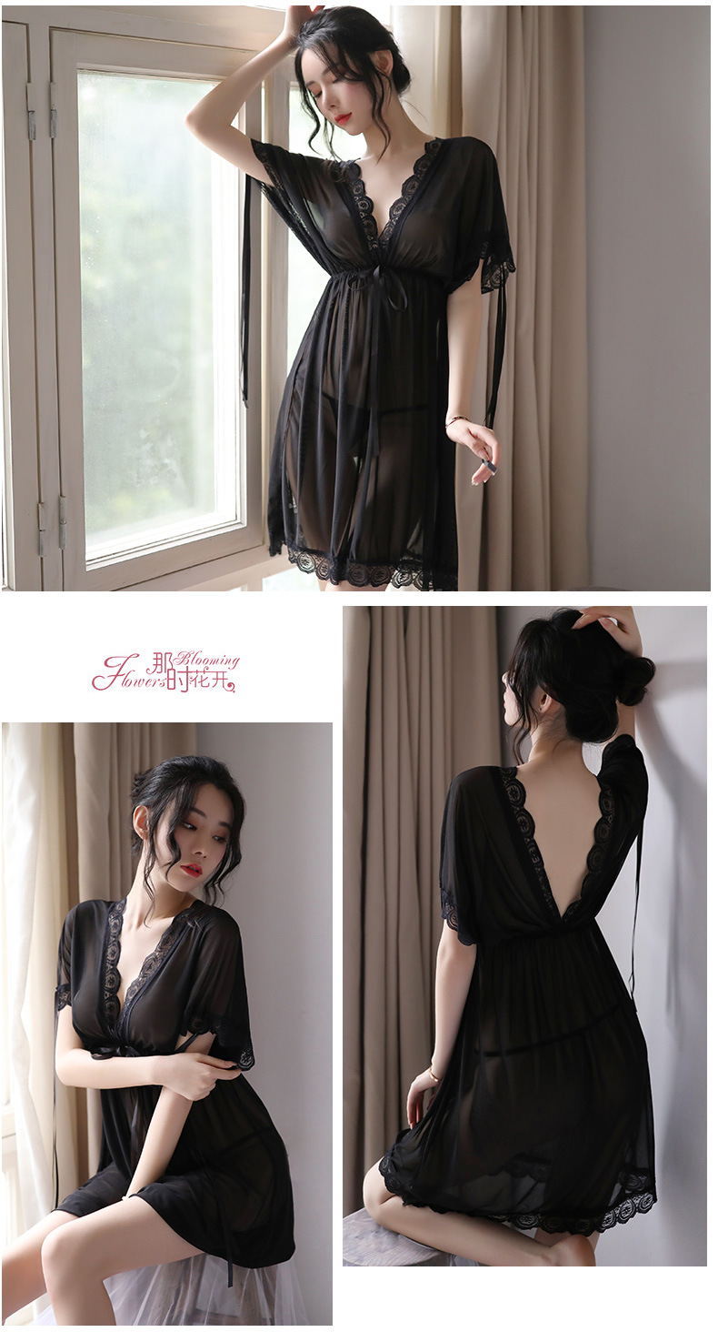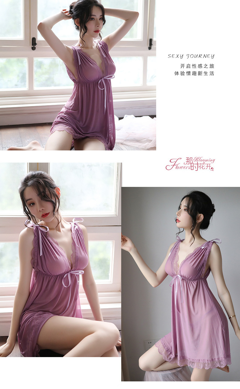 蕾丝v领睡裙 诱惑内衣 性感优雅 走心不落俗 睡衣丁字裤套装