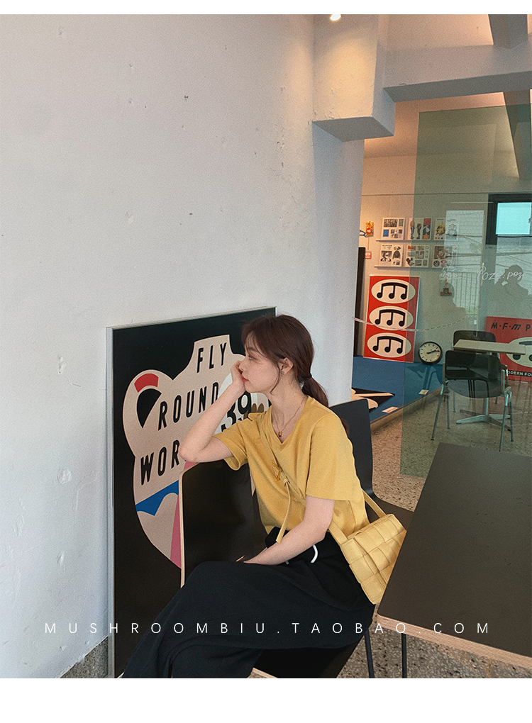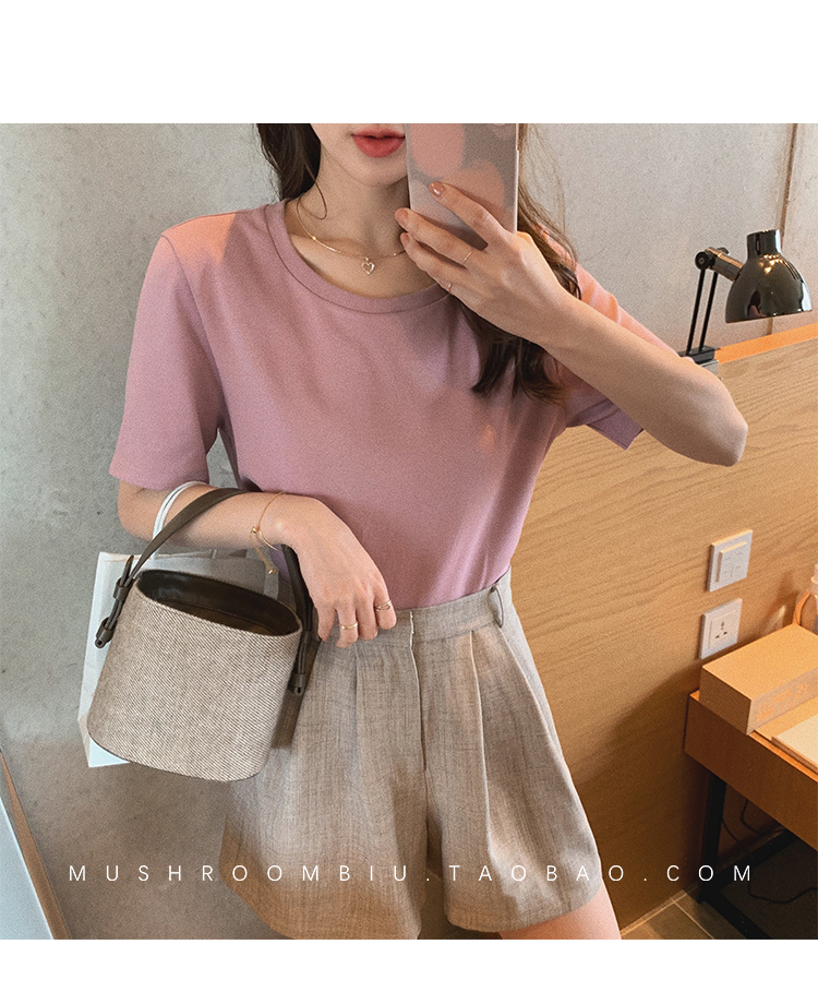 【金蘑菇菇 !秘鲁棉防蚊t】断码 特惠不退不换!!纯色宽松打底衫圆领短袖女