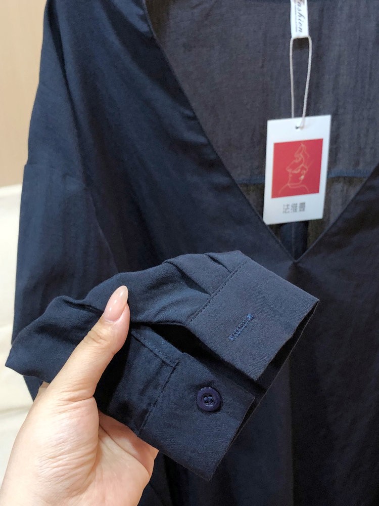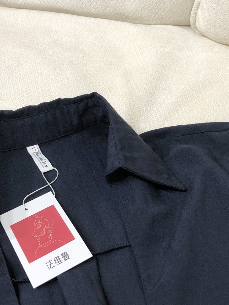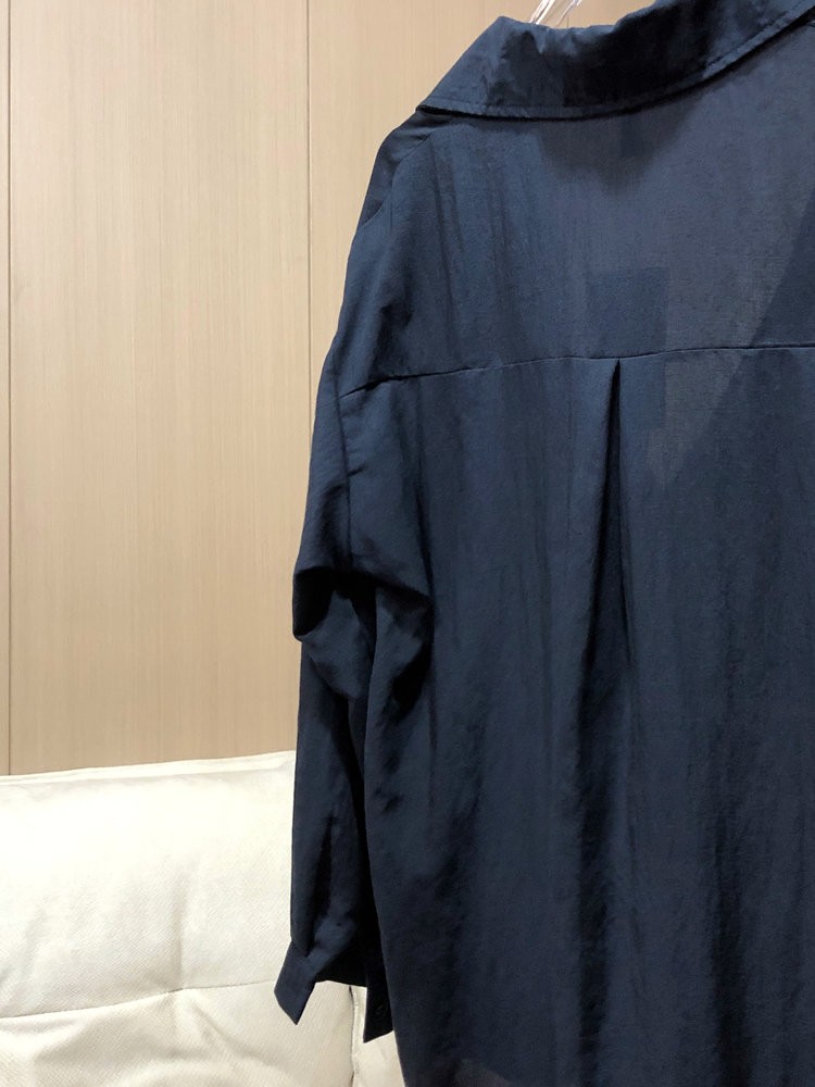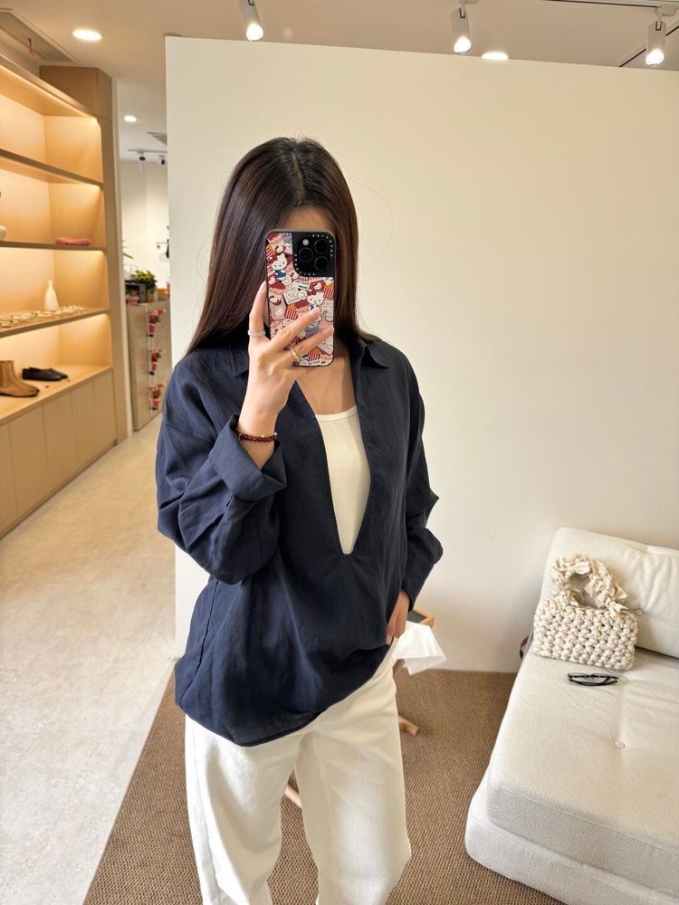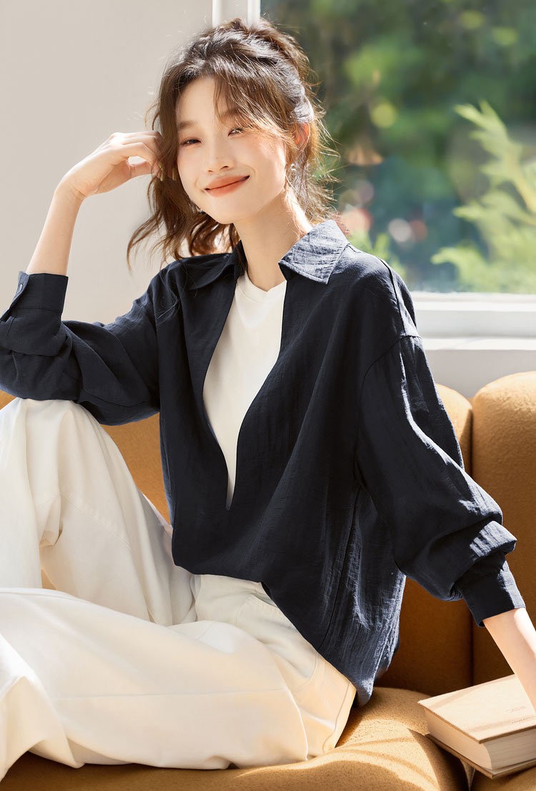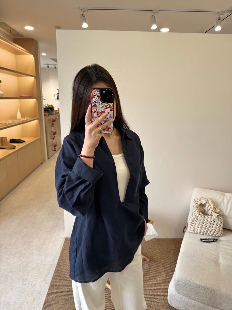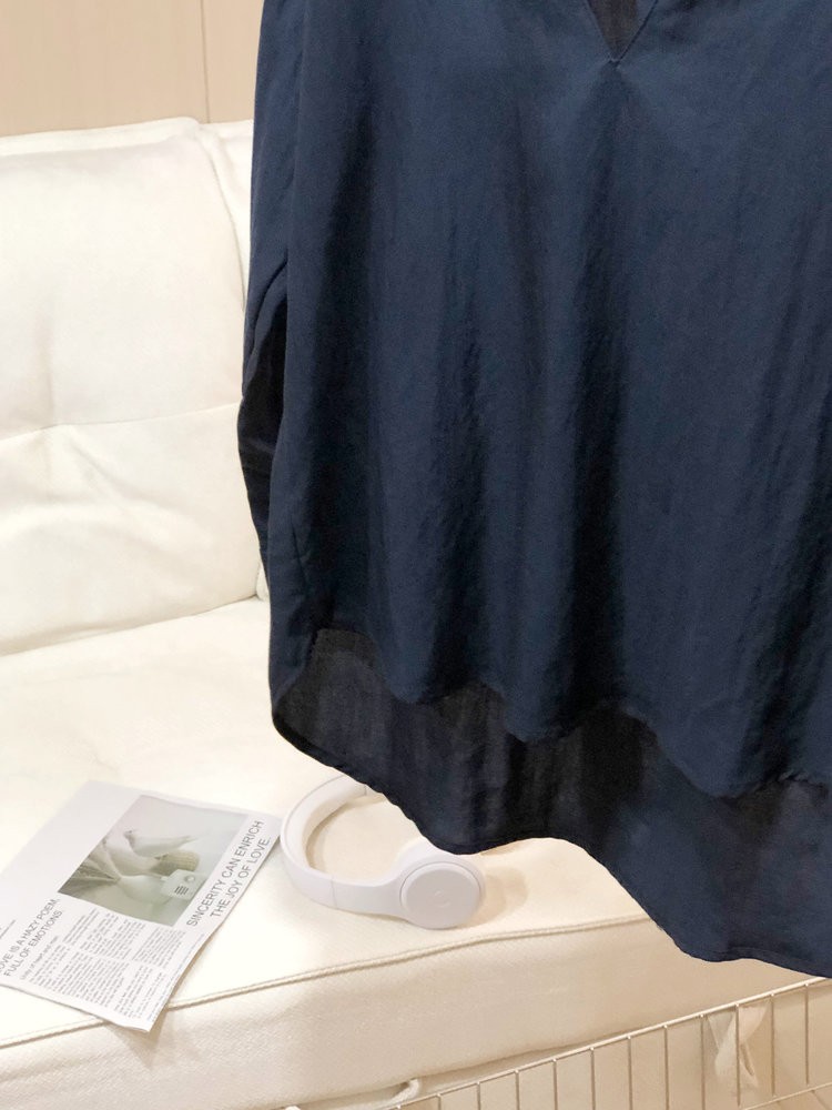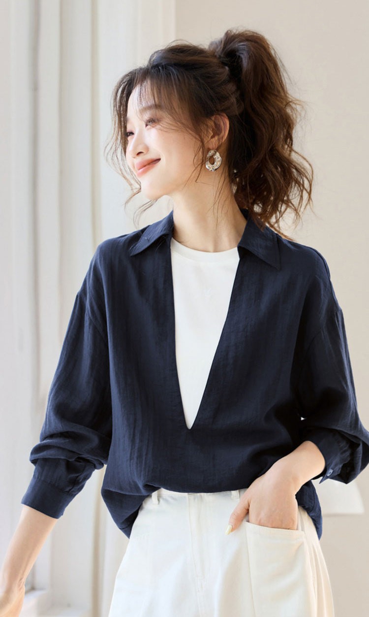 法维曼 藏蓝色翻领深V领衬衫 轻盈垂坠 春夏清爽不闷 宽松落肩 藏肉显瘦 修饰脖颈 叠穿更显层次